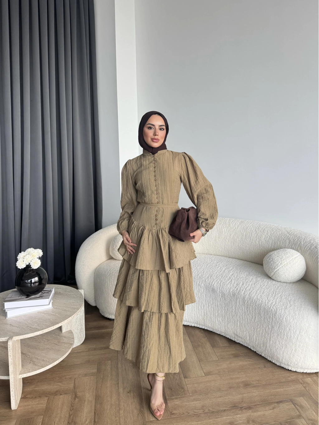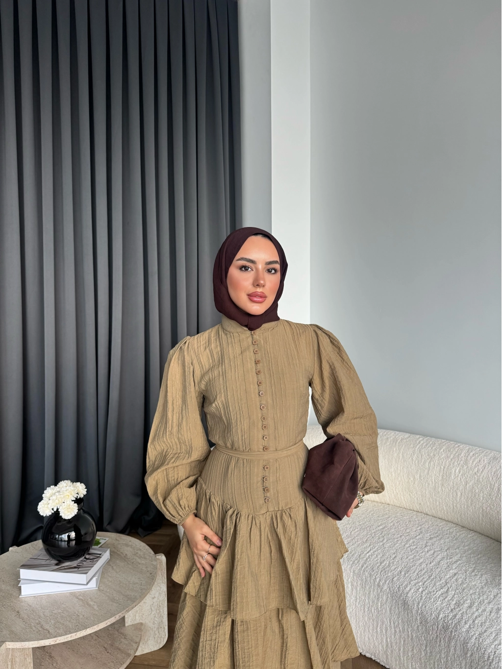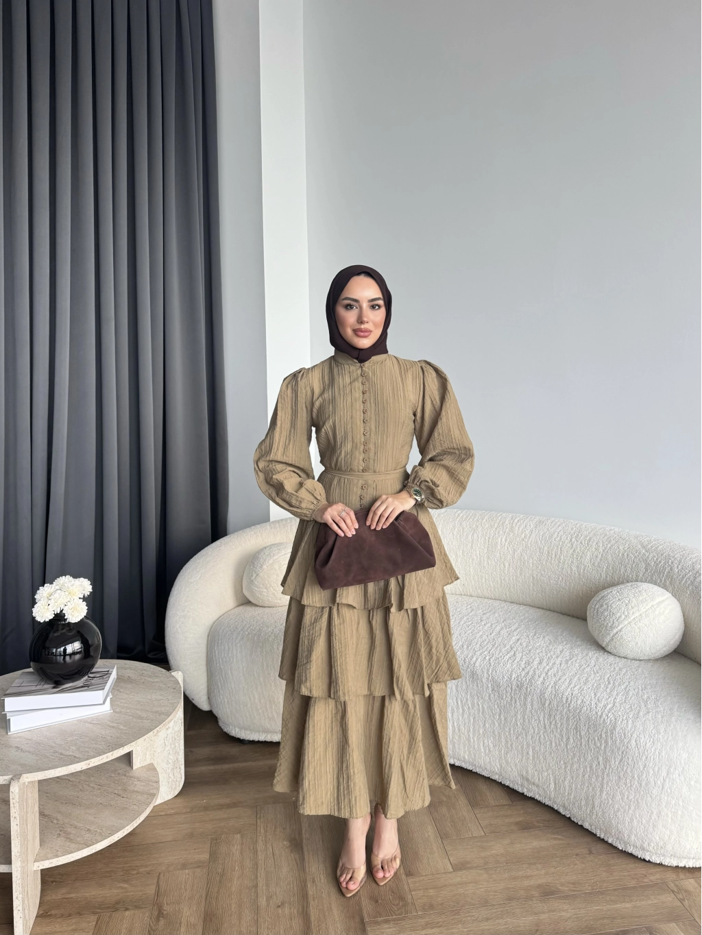 Hen - Luzy Şifon Elbise - Kahve