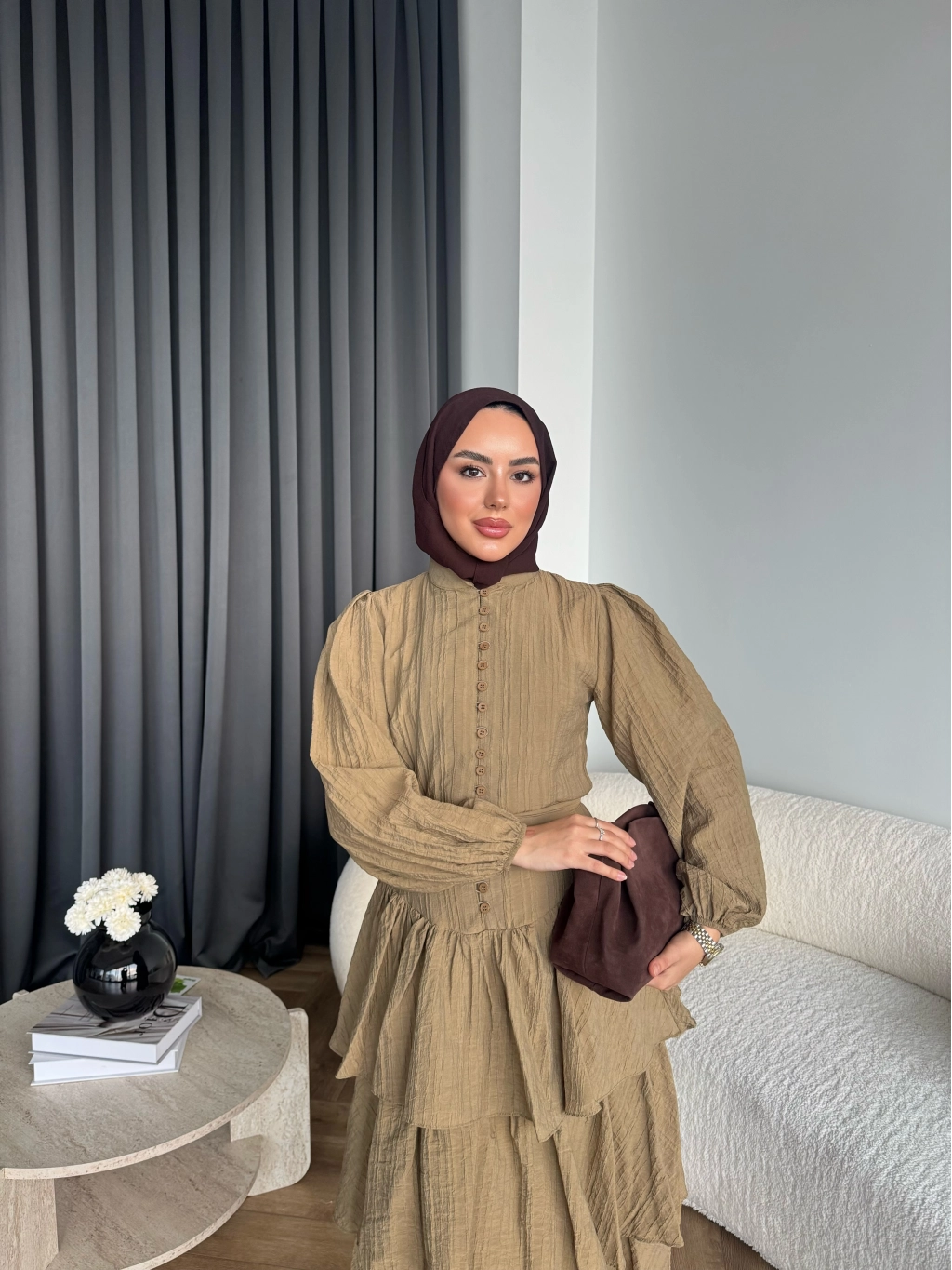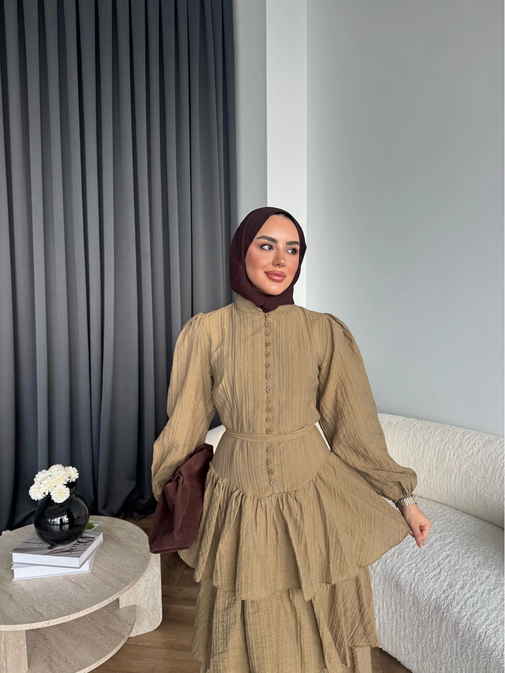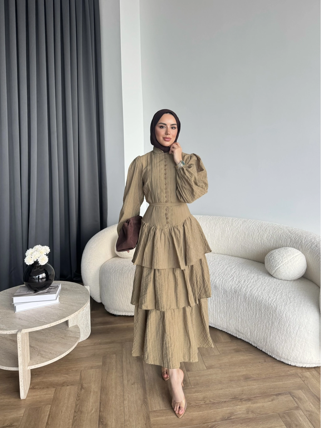 Hen - Luzy Şifon Elbise - Kahve