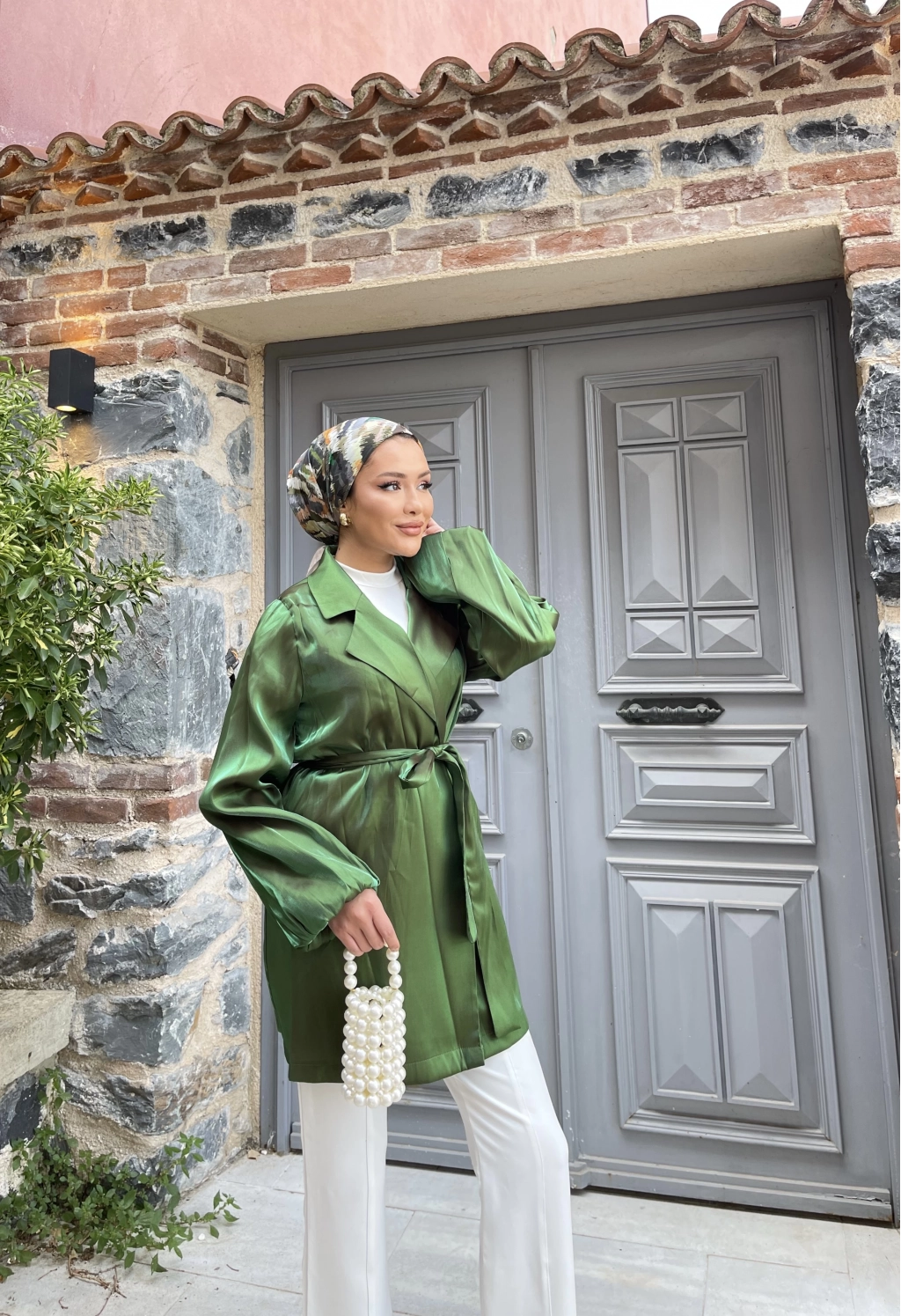 Mb- Berly Atkı Detay Triko Takım - Yeşil