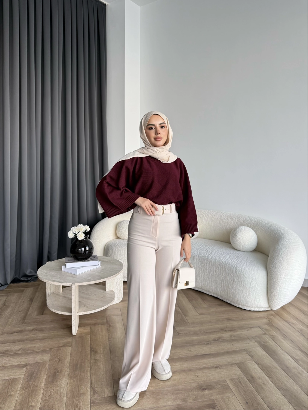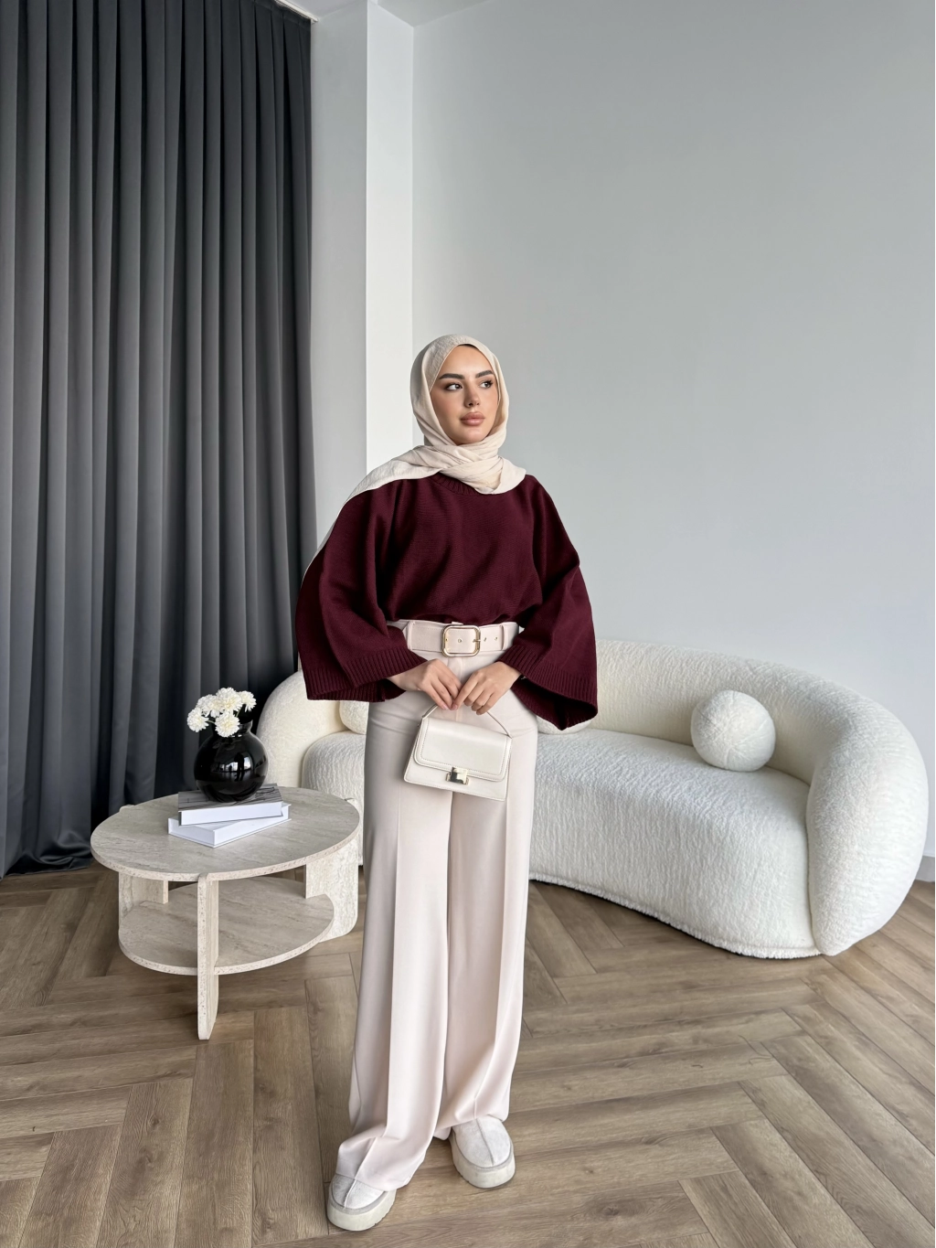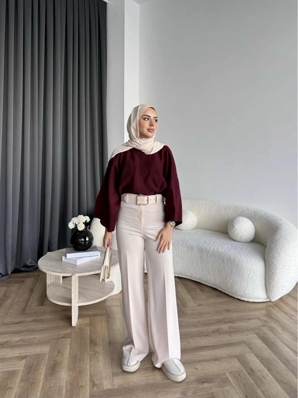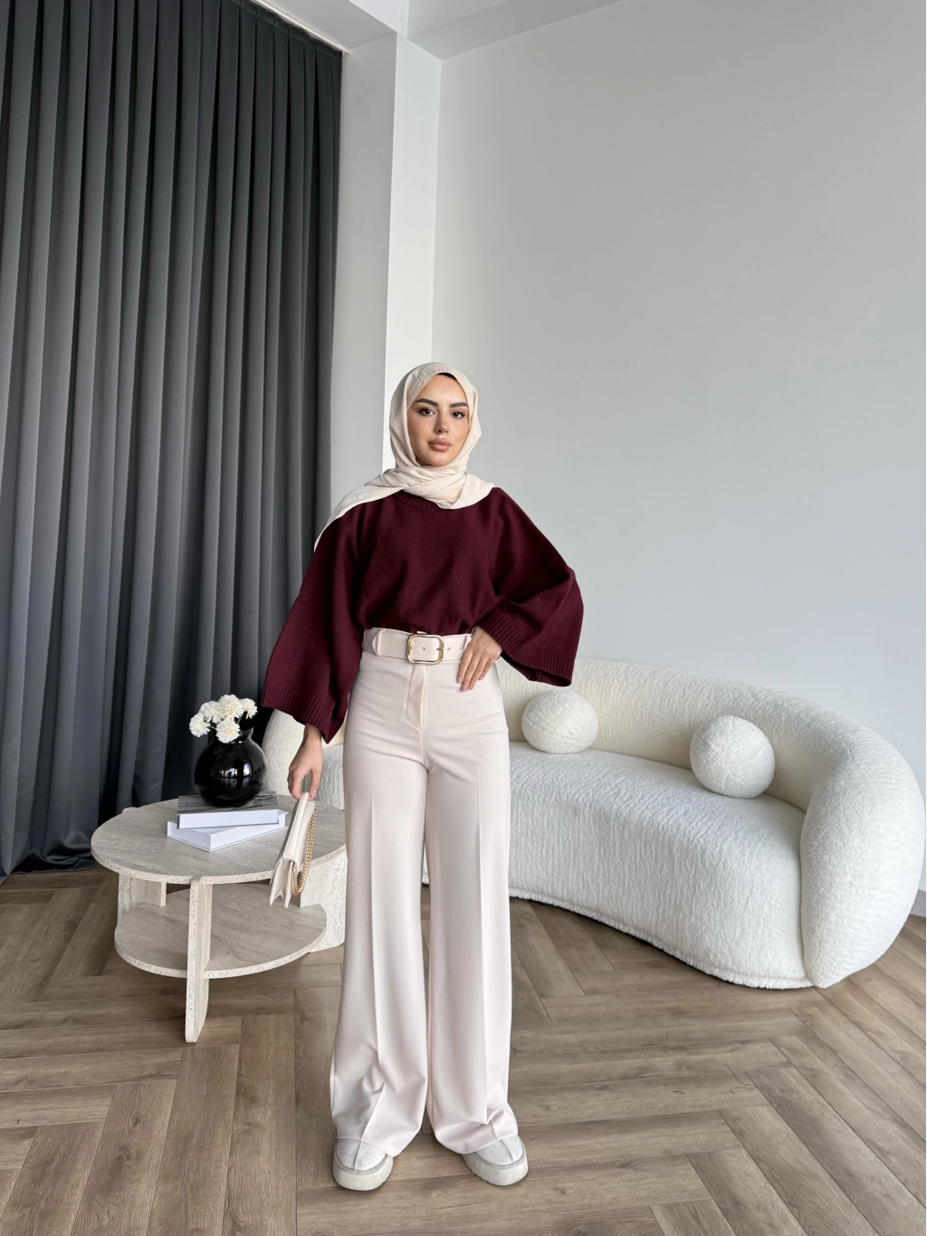 Mrs - Kemerli Bol Paça Pantolon - Bej