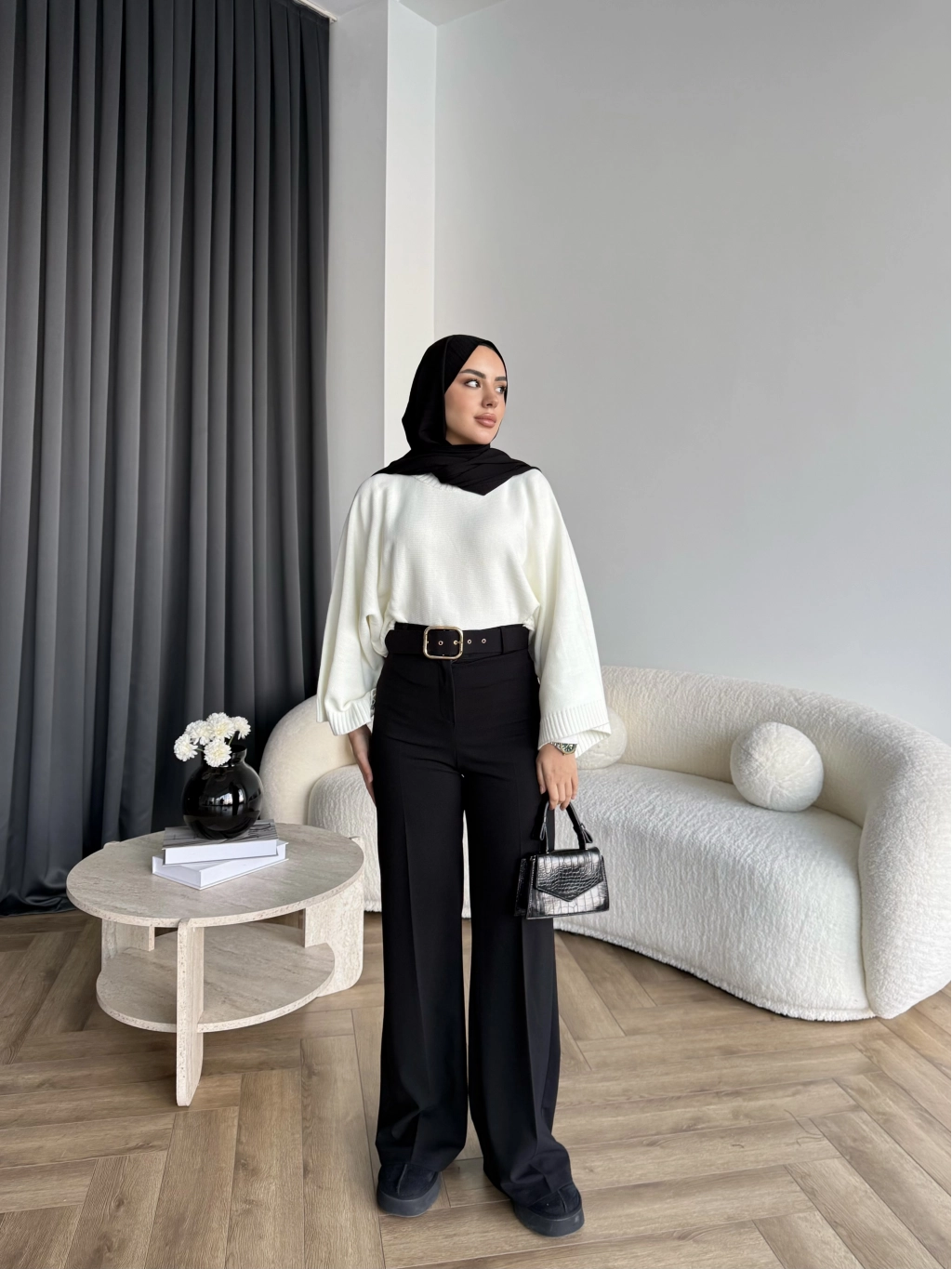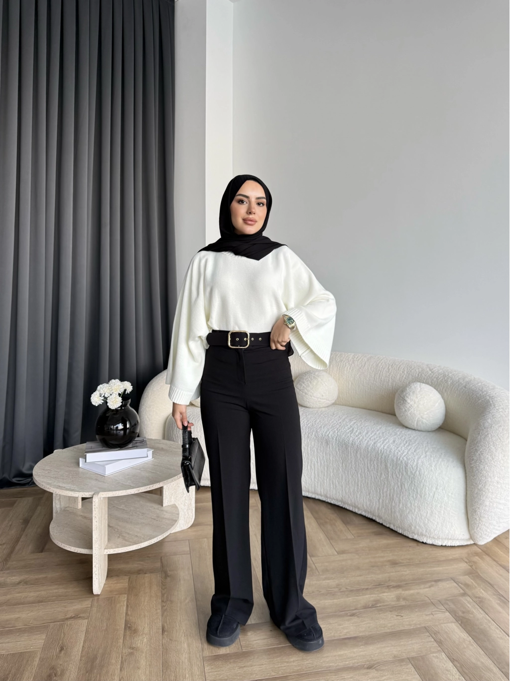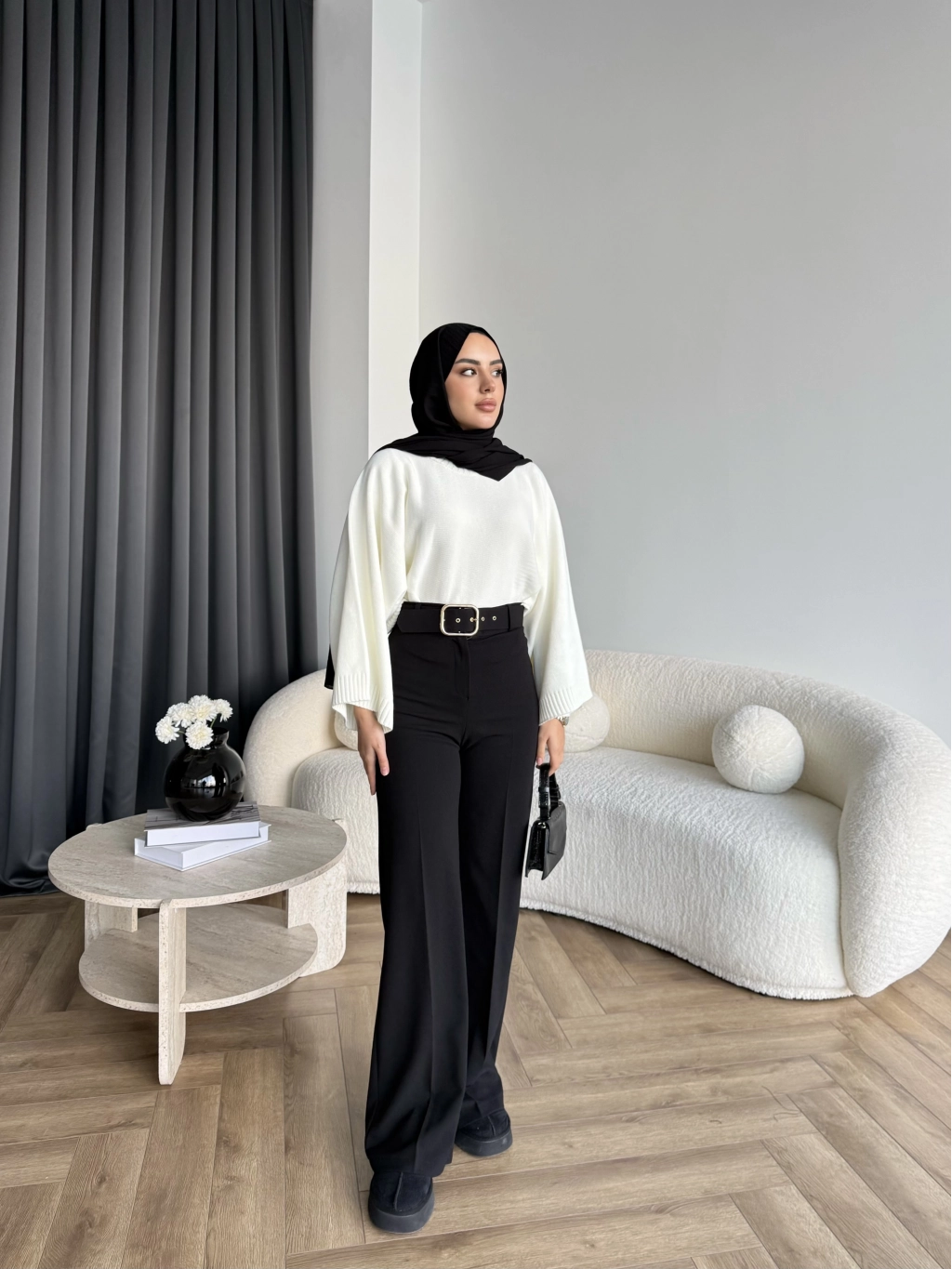 Mrs - Kemerli Bol Paça Pantolon - Siyah