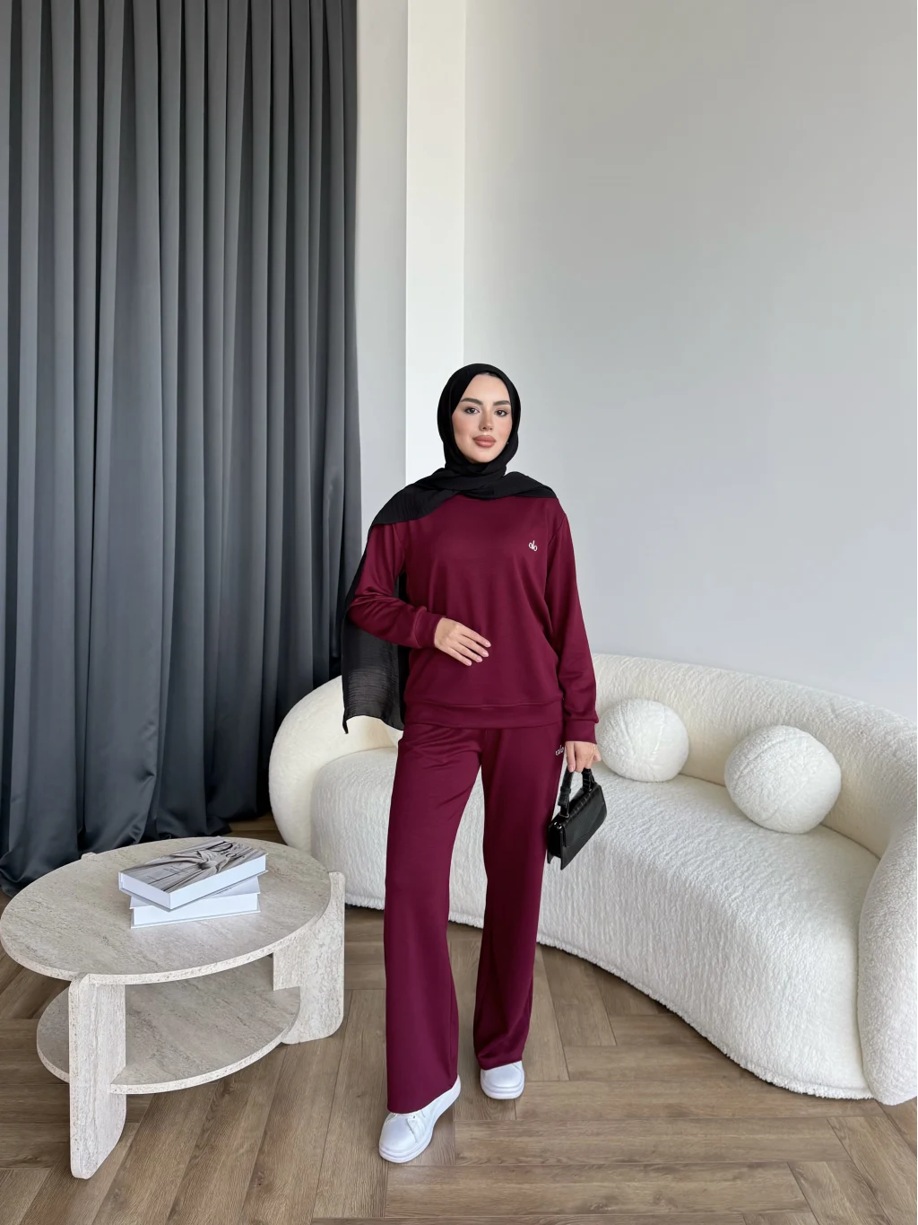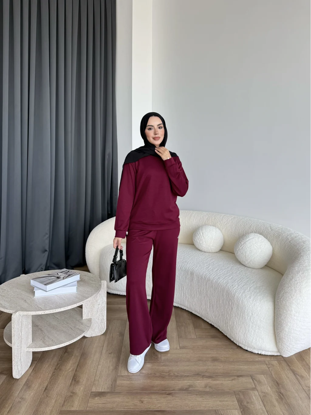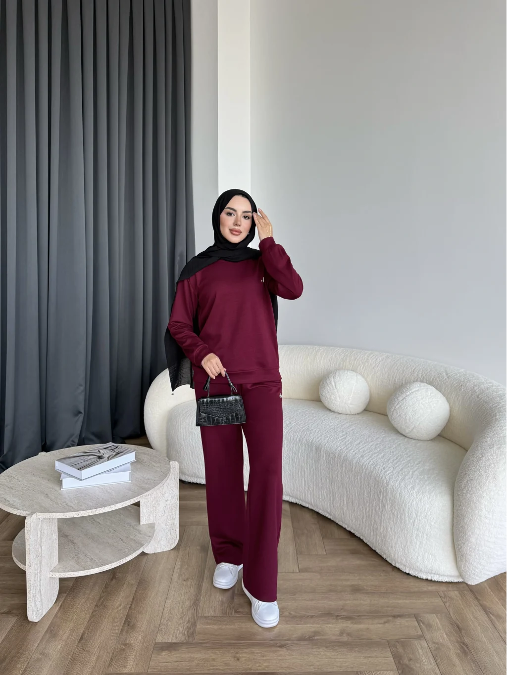 Yanı Kesik Paça Scuba Pantolon - Bordo