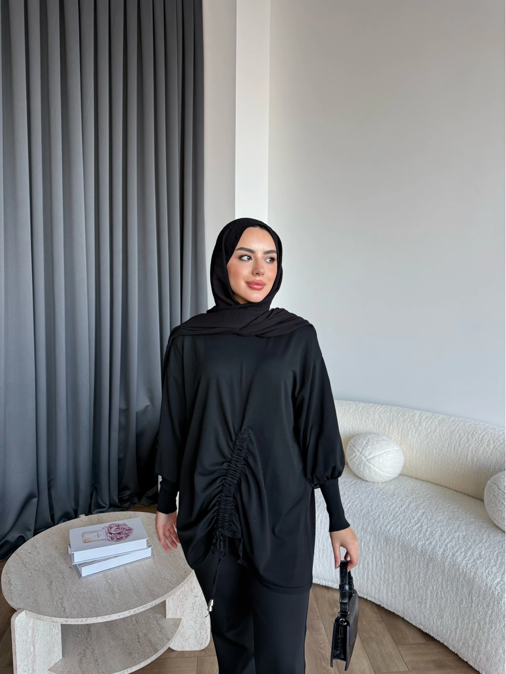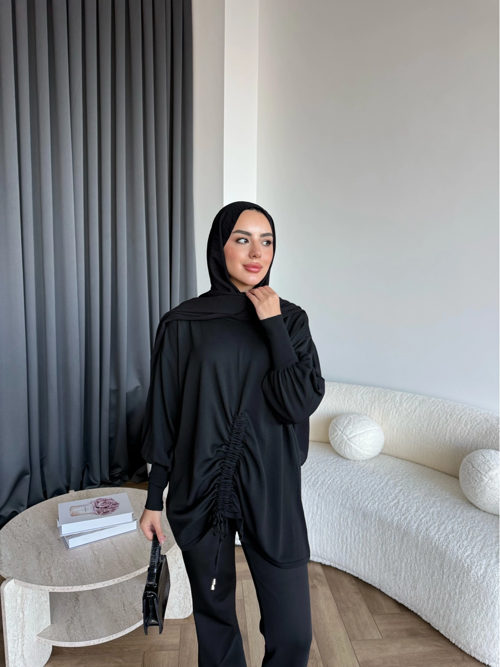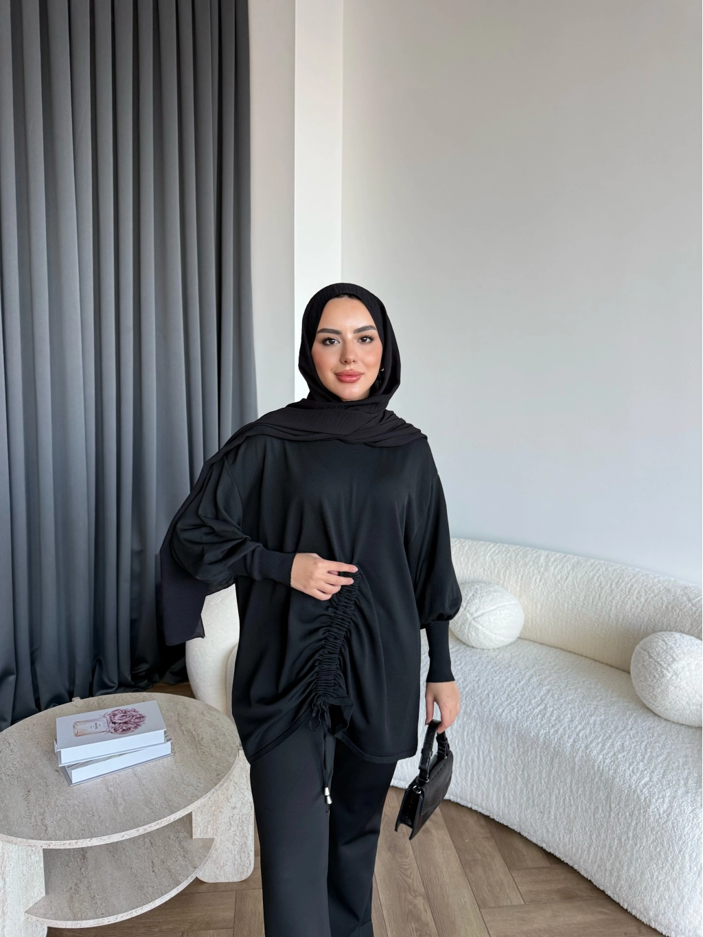 Mury Büzgü Detaylı Triko Kazak - Siyah