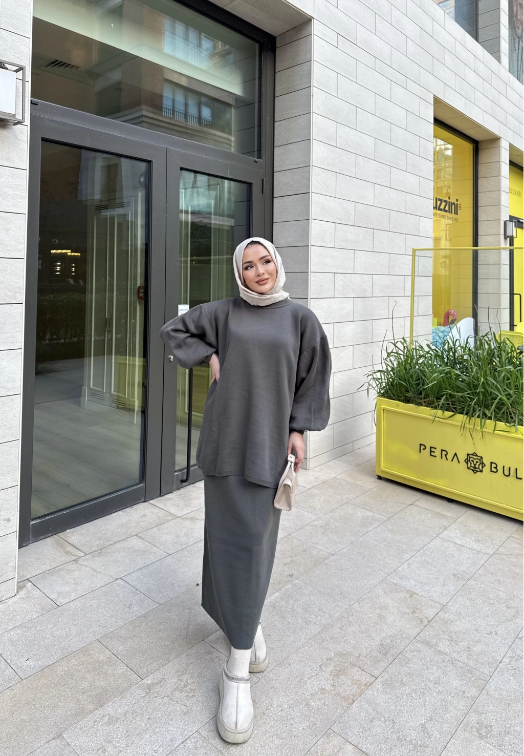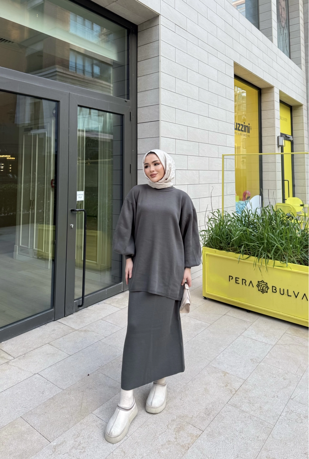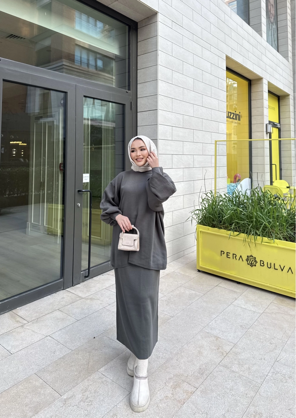 Mb- Berly Atkı Detay Triko Takım - Gri