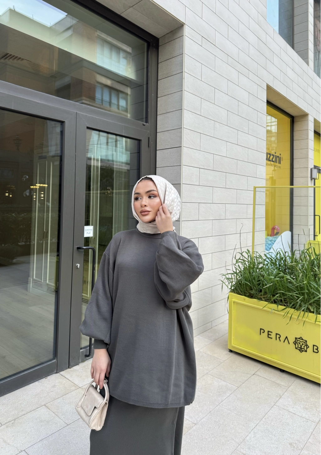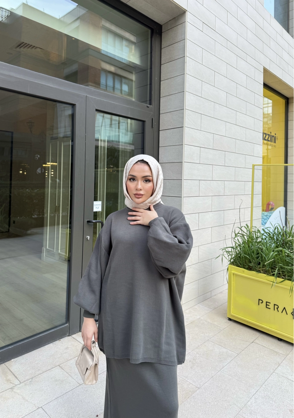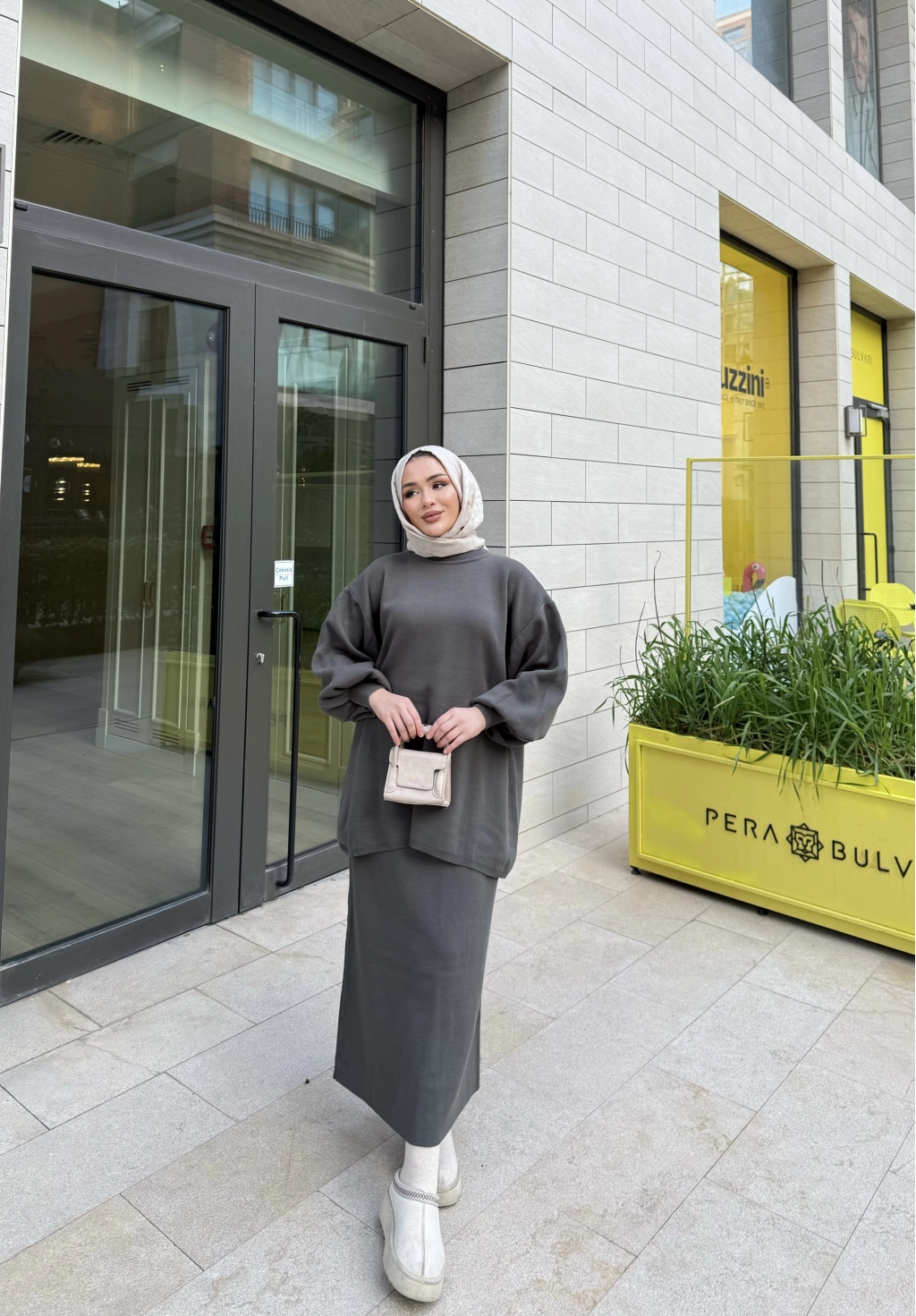 Mb- Berly Atkı Detay Triko Takım - Gri