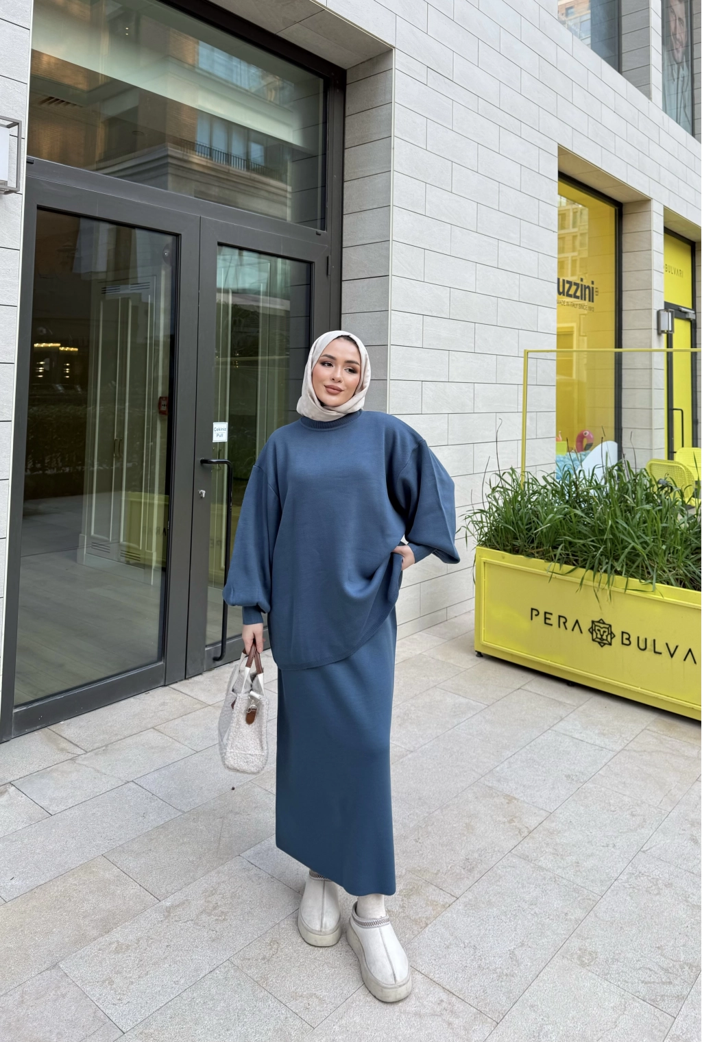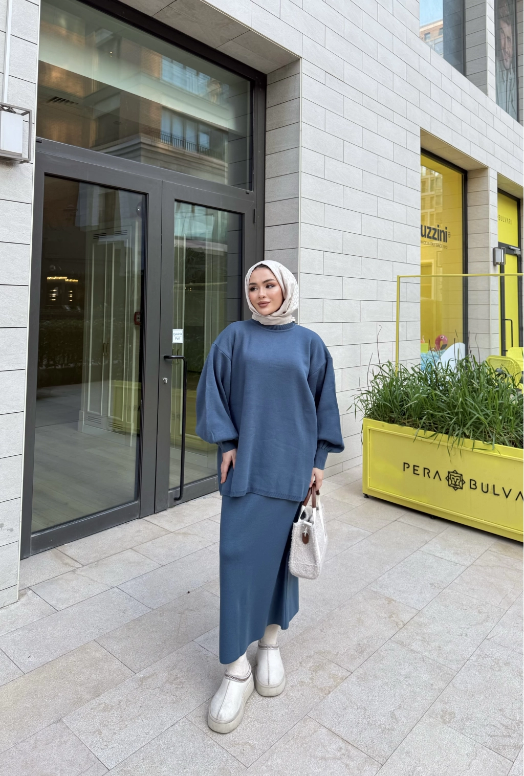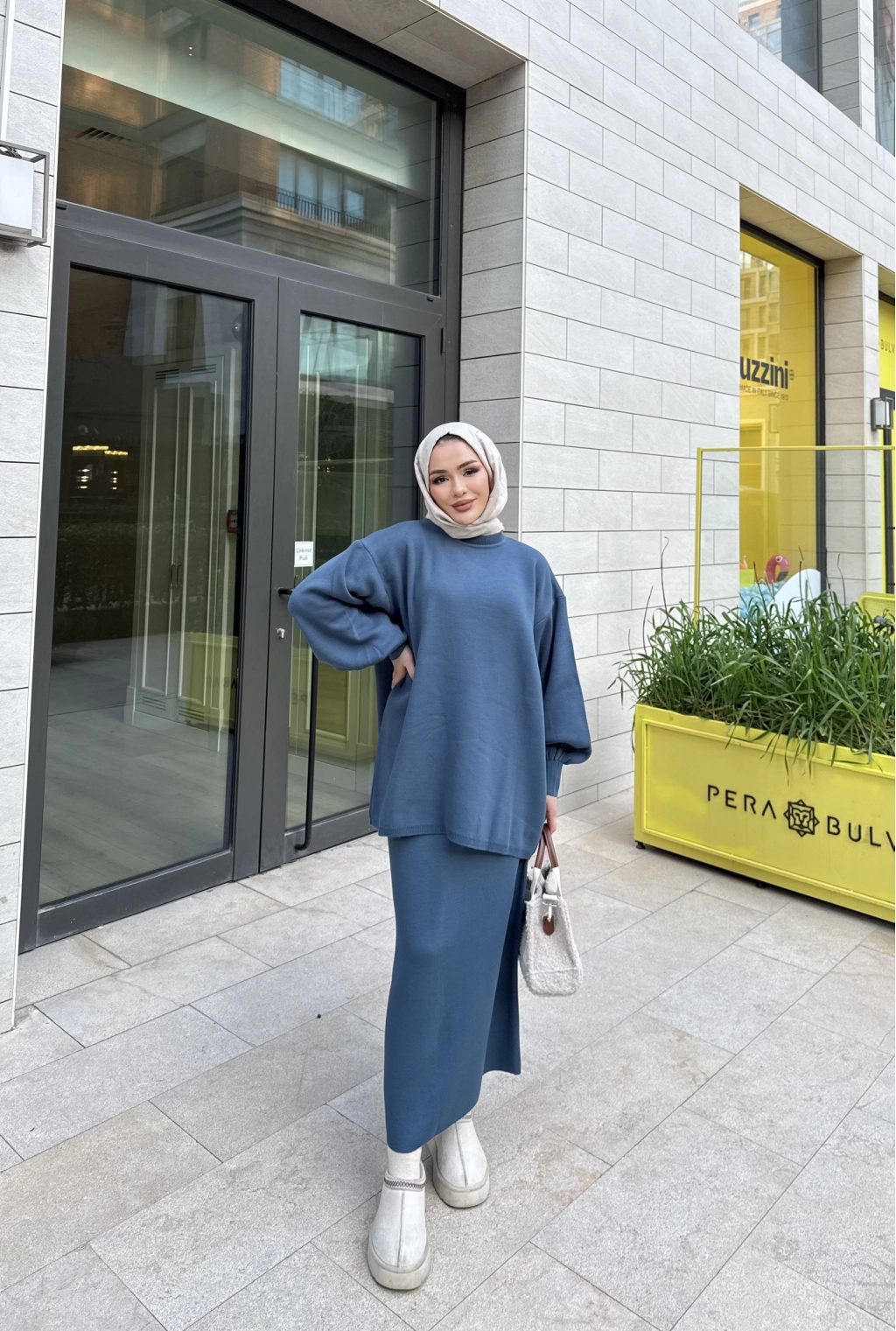 Nes Balon Kol Etekli Triko Takım - Indıgo