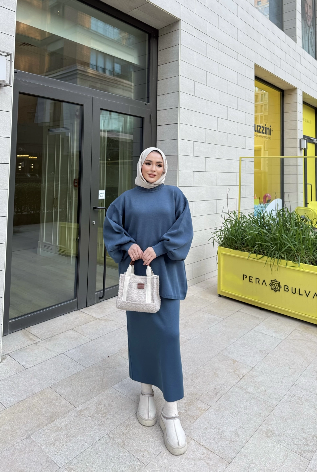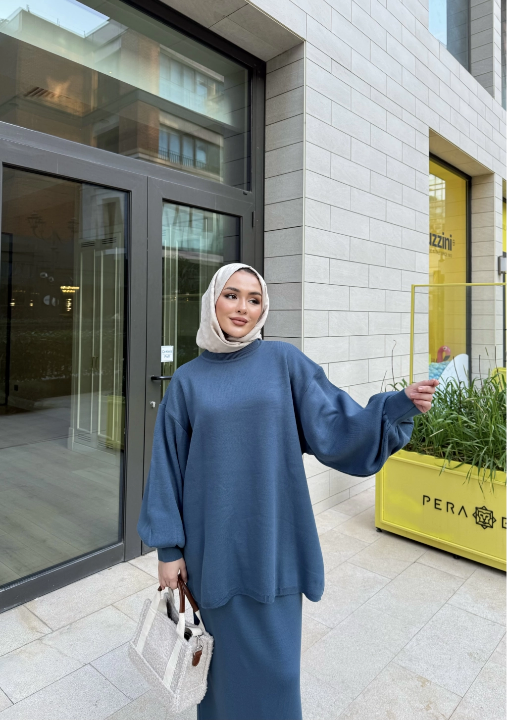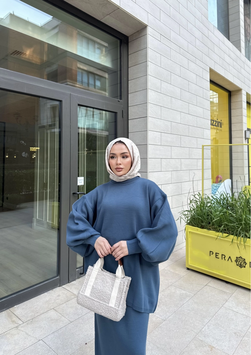 Nes Balon Kol Etekli Triko Takım - Indıgo