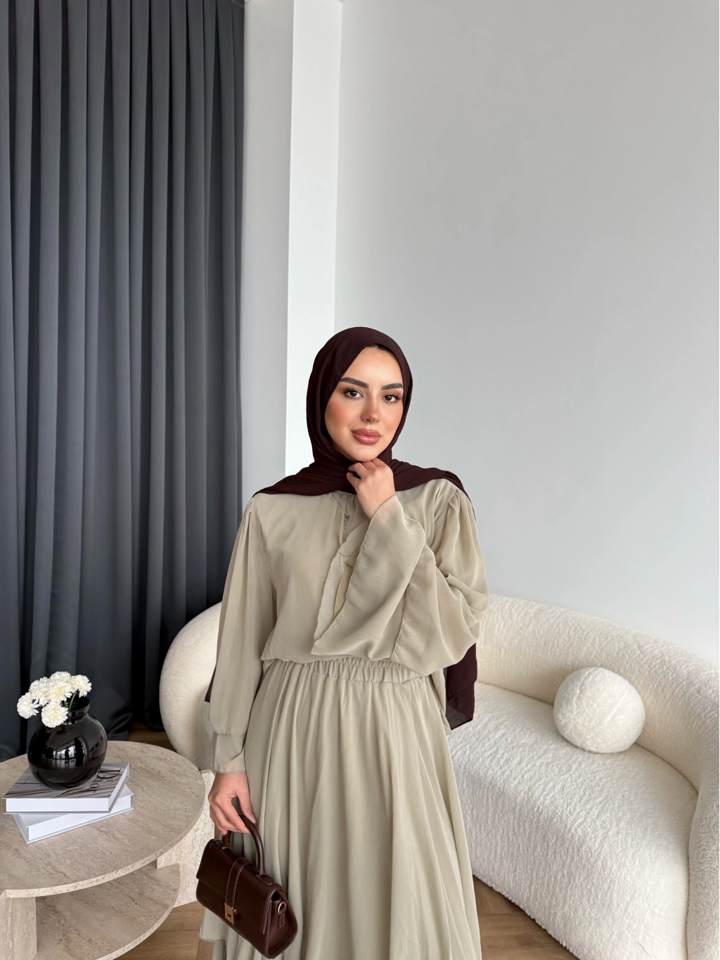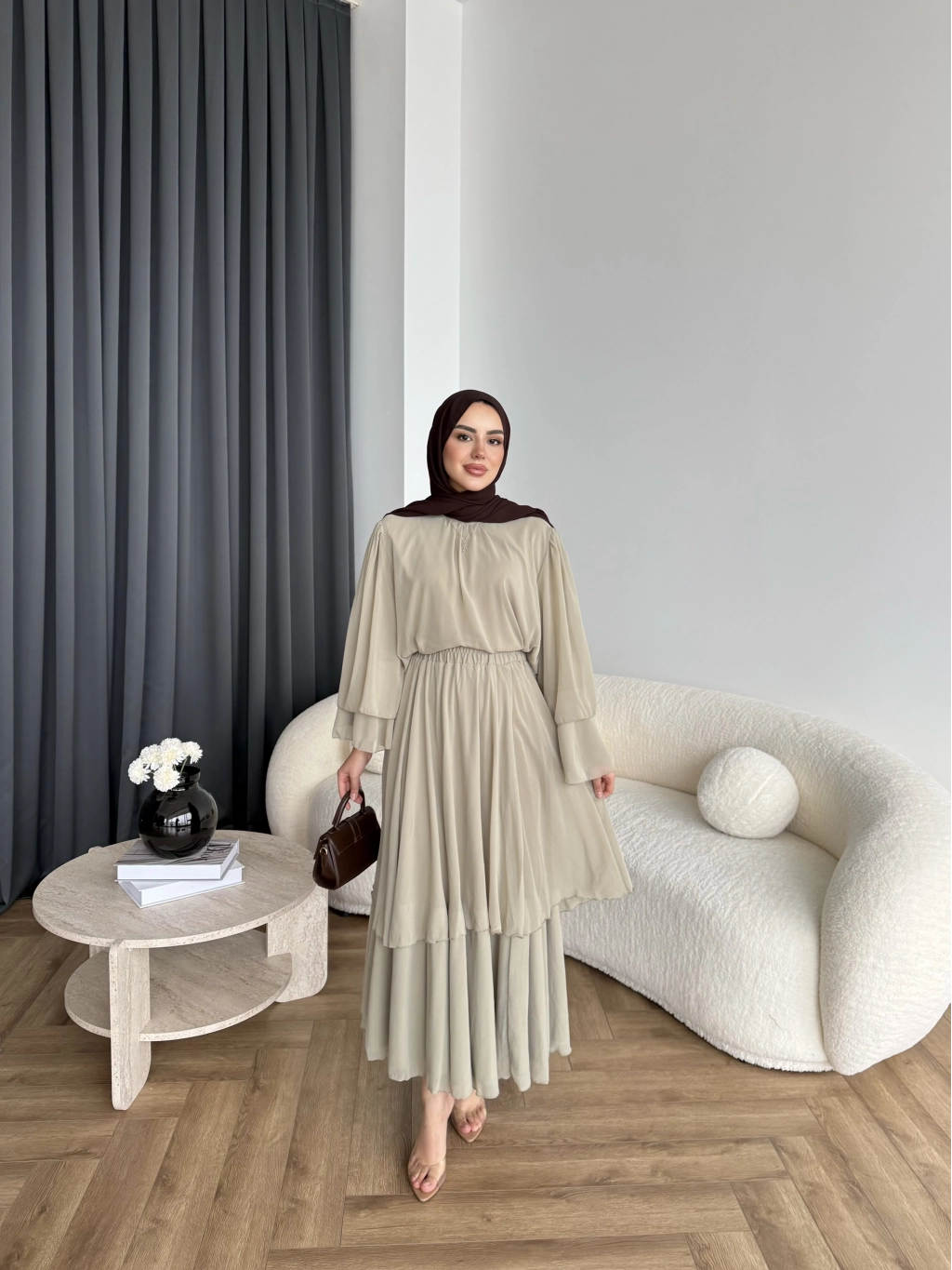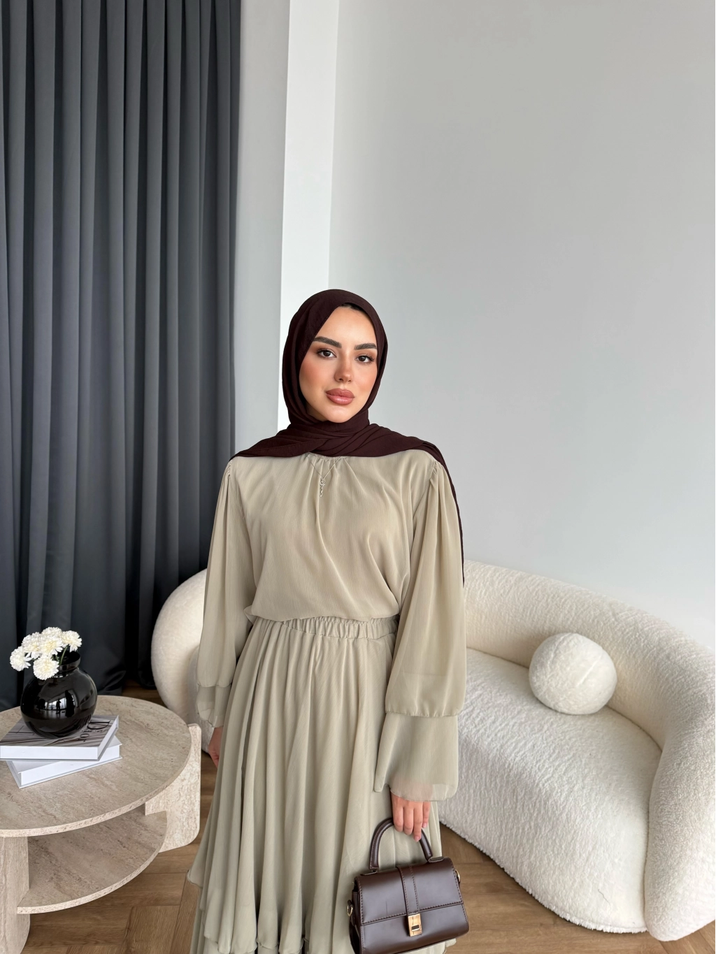 Hen - Luzy Şifon Elbise - Kahve