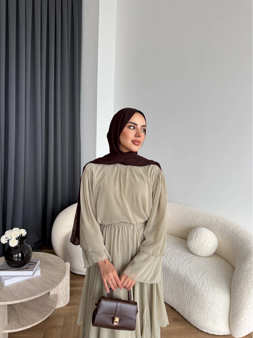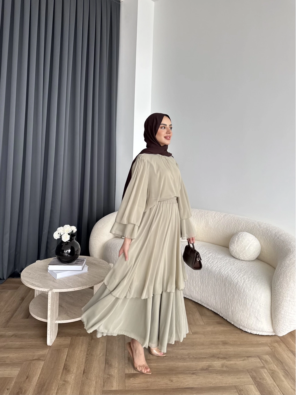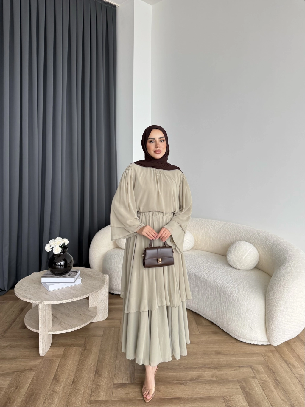 Hen - Luzy Şifon Elbise - Kahve