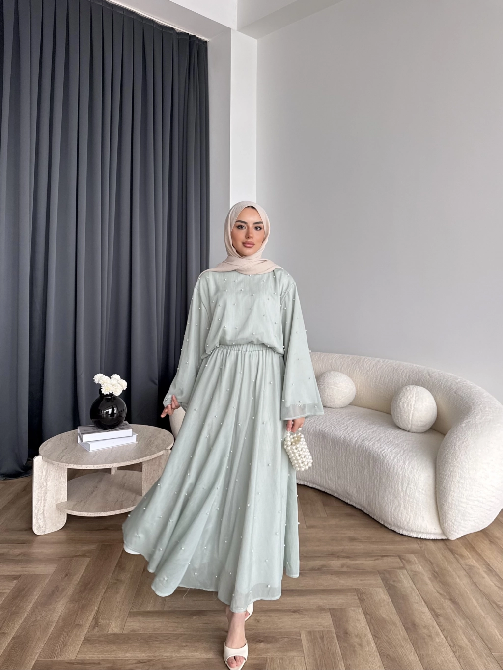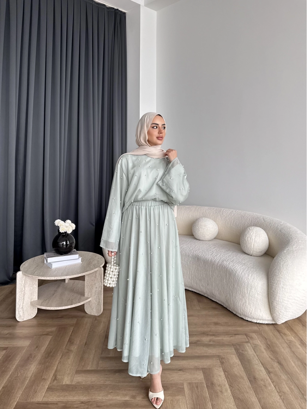 Ng - İncili Etekli Takım - Mint Yeşil