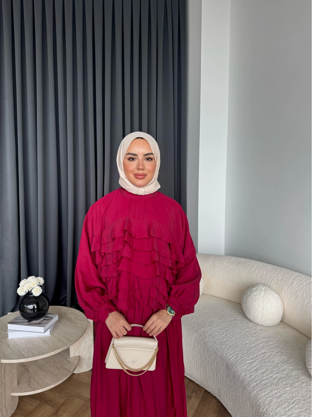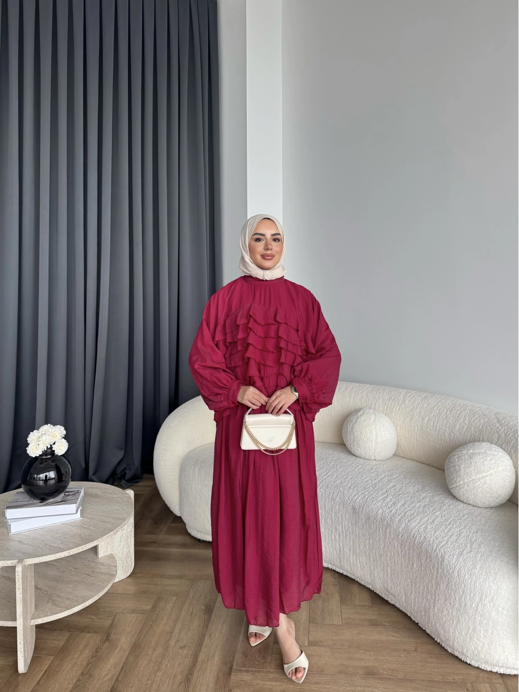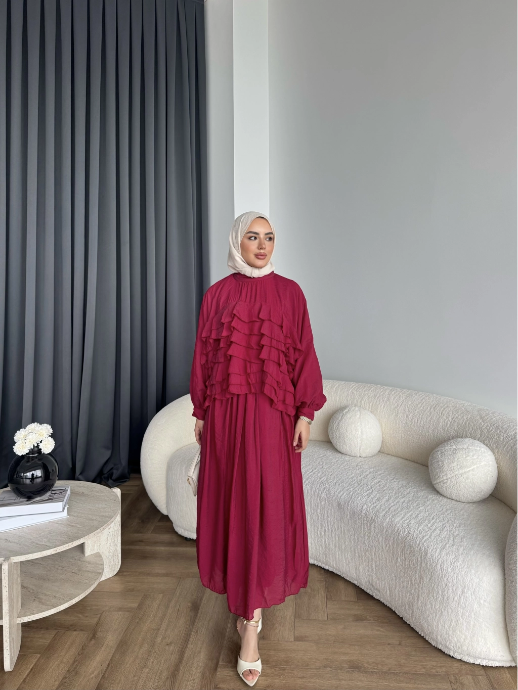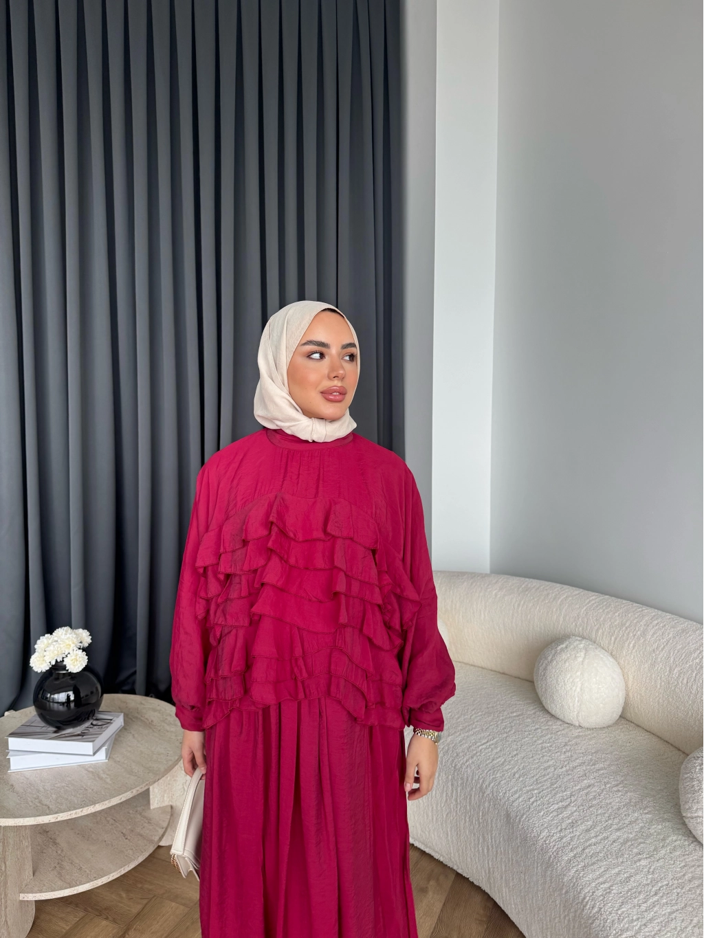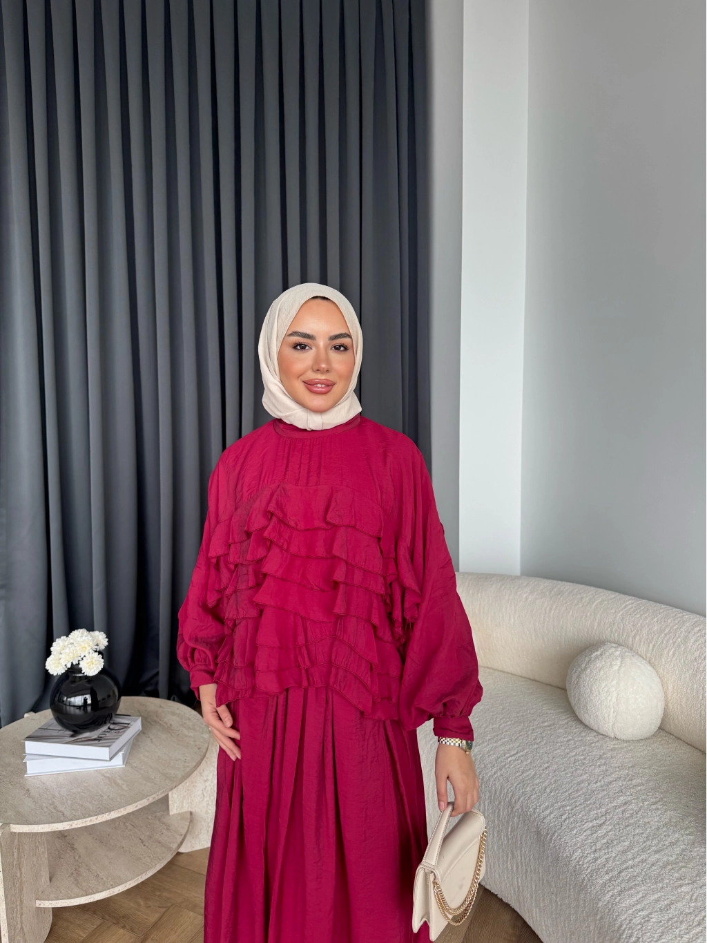 Ng - Kave Fırfırlı Etekli Takım - Bordo