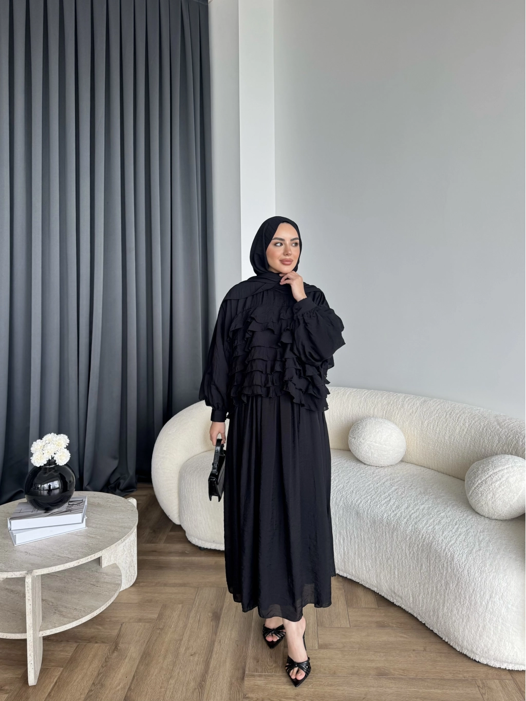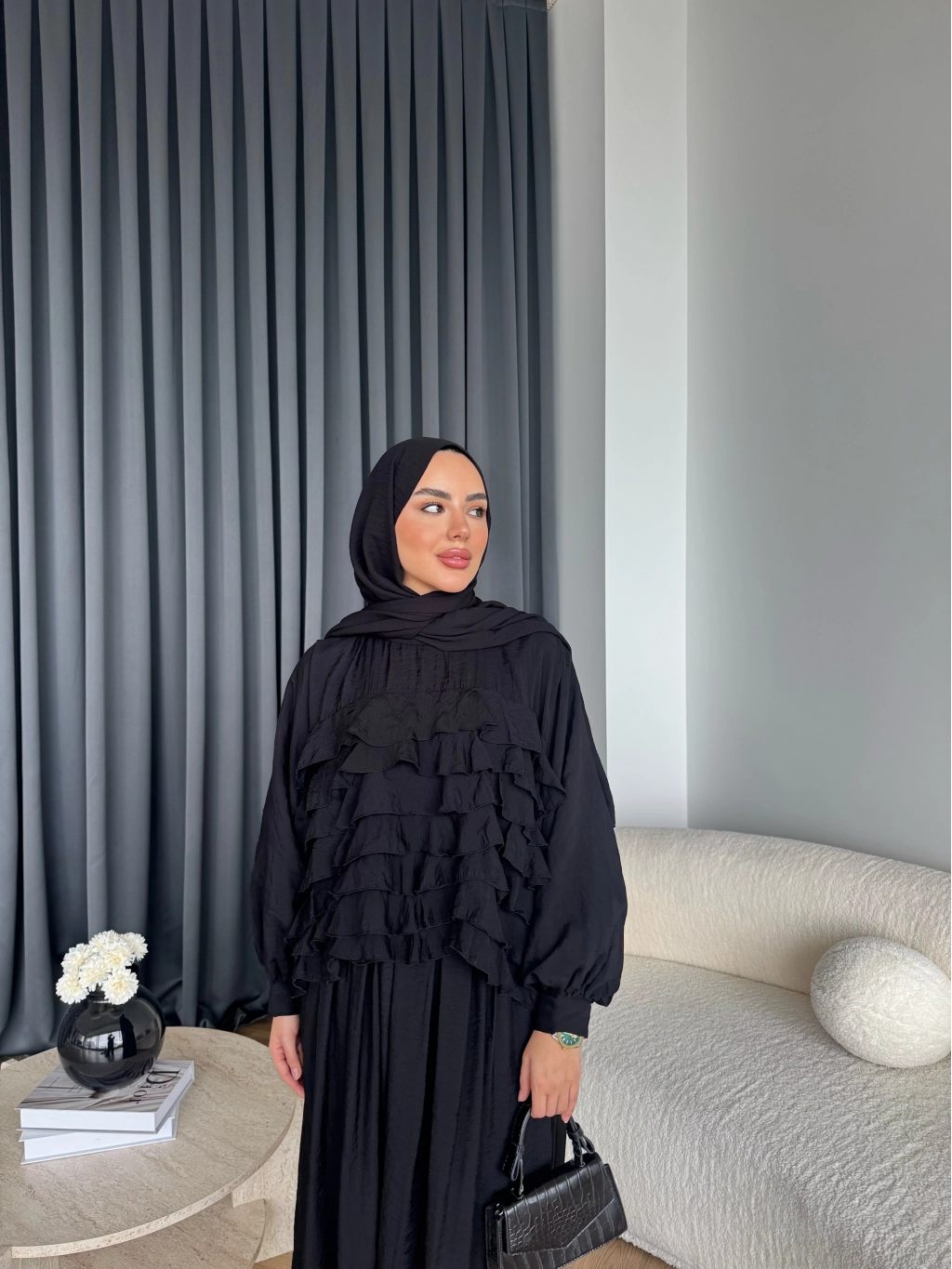 Ng - Kave Fırfırlı Etekli Takım - Siyah