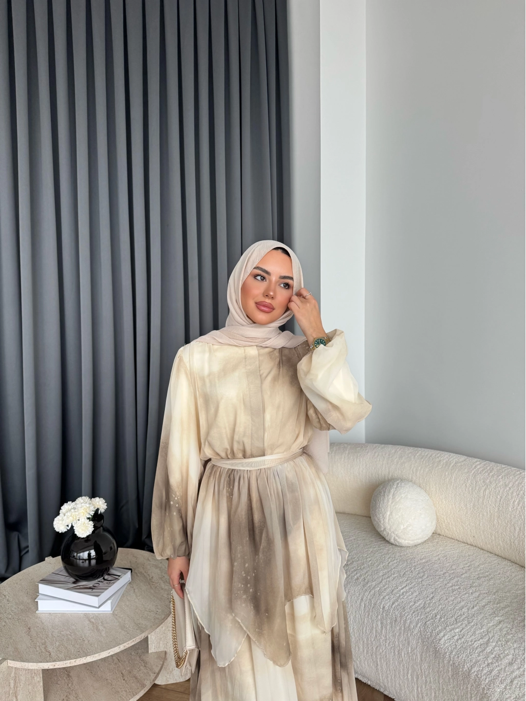 Hen - Luzy Şifon Elbise - Kahve