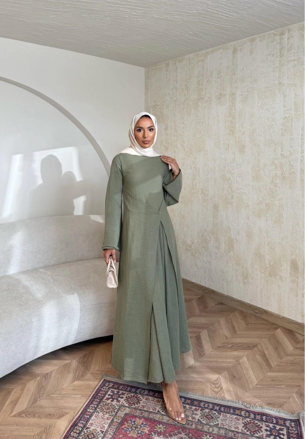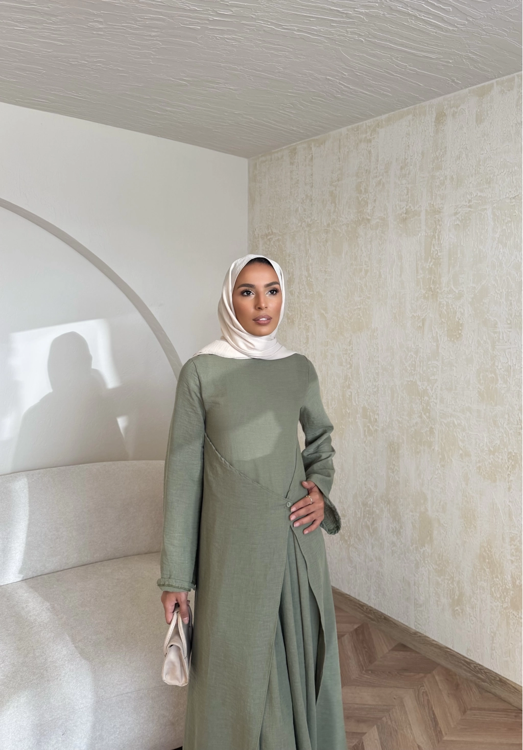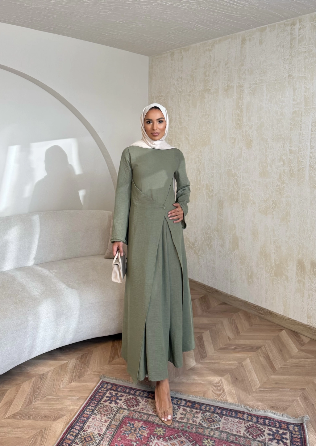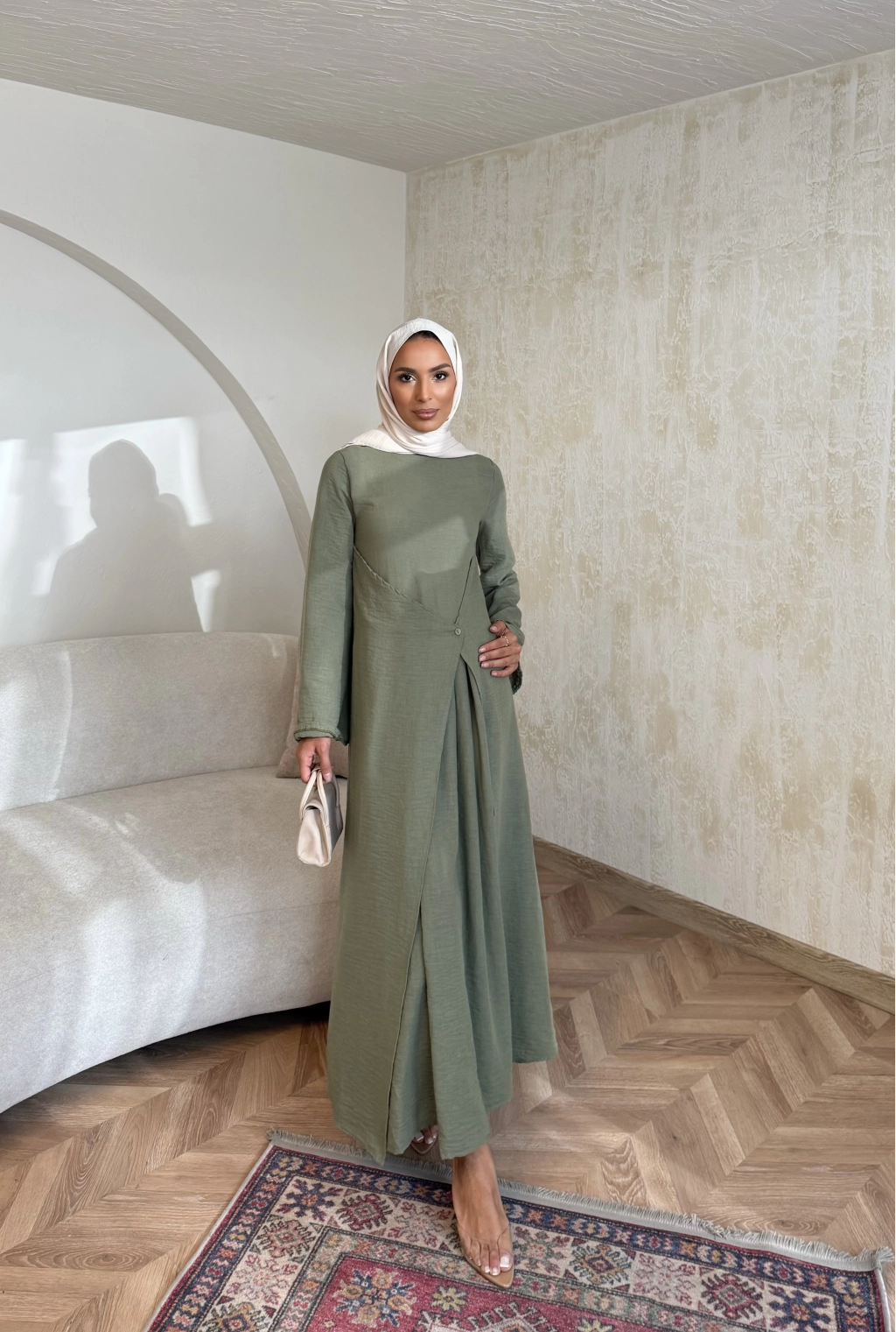 Noir Keten Elbise - Haki