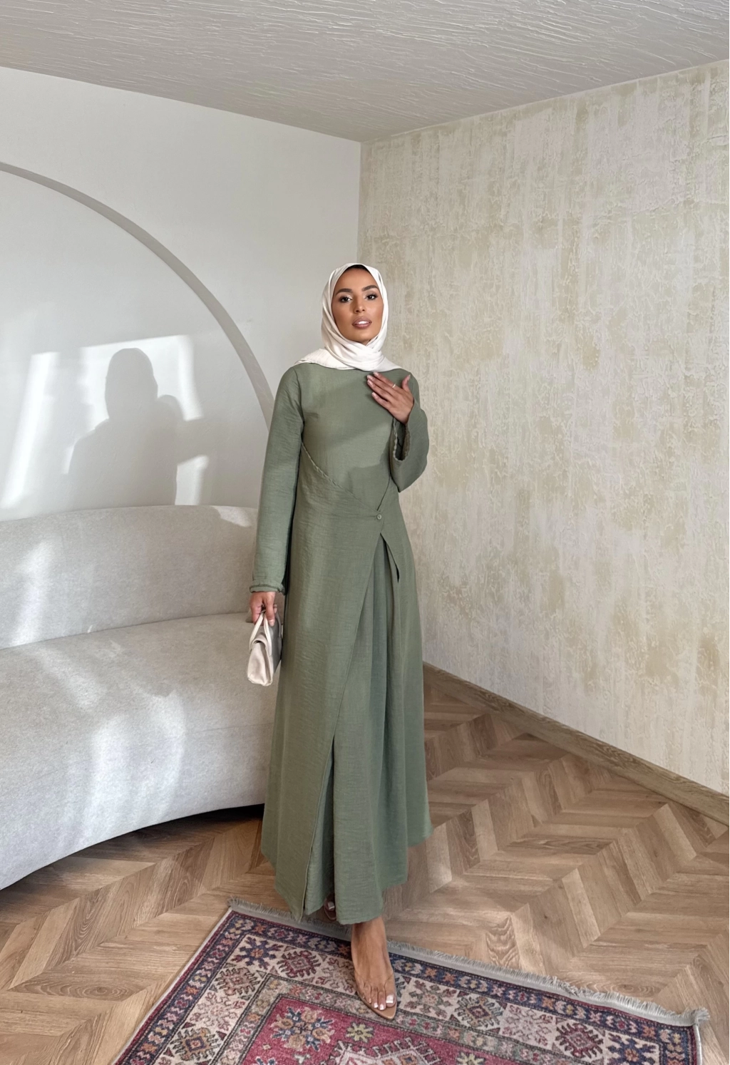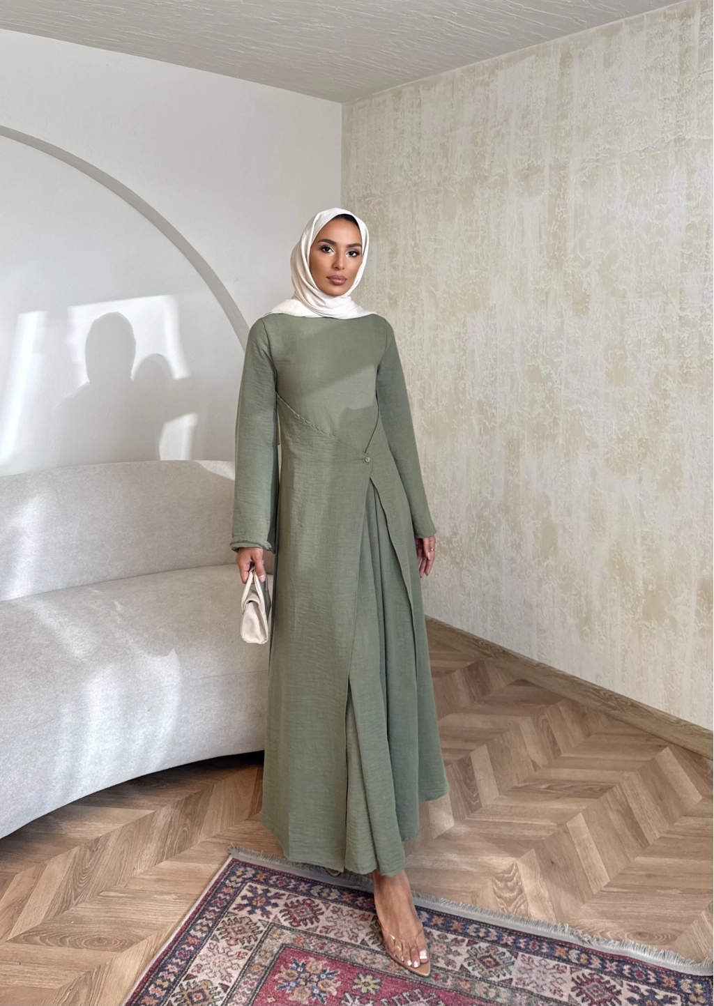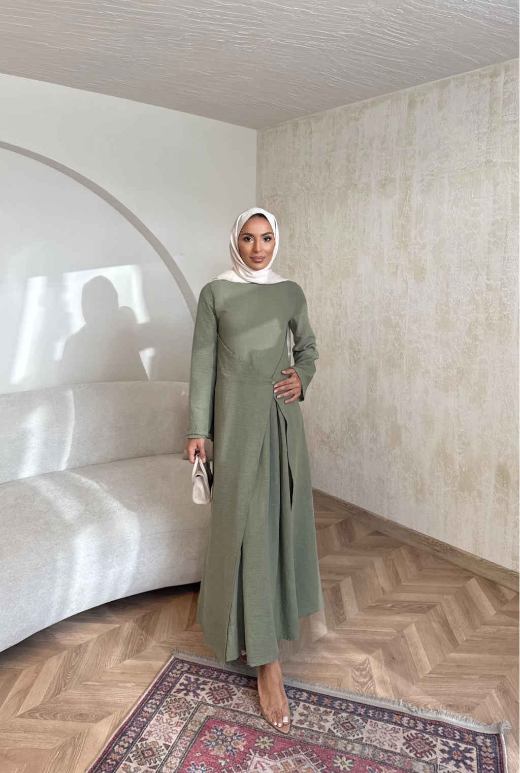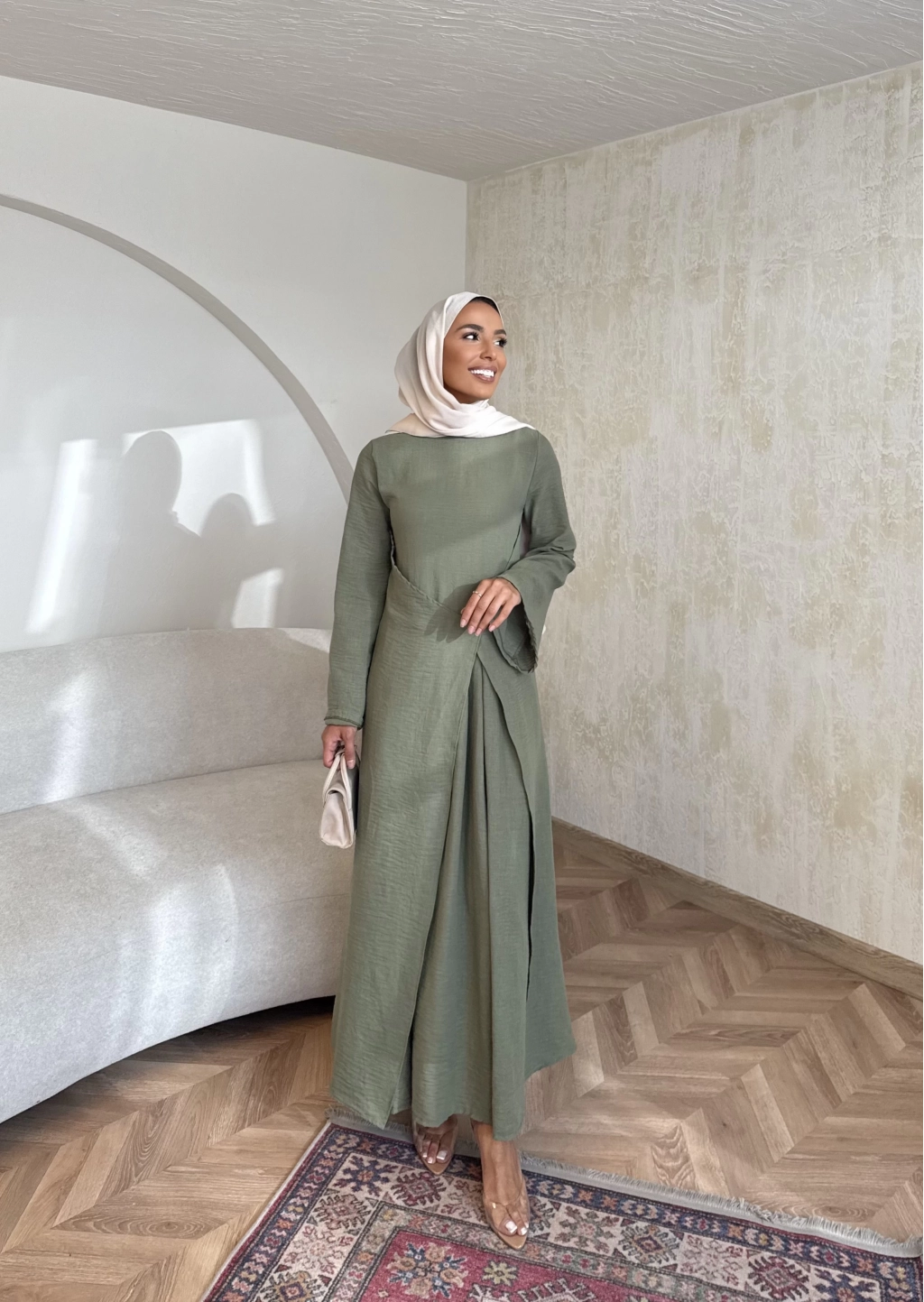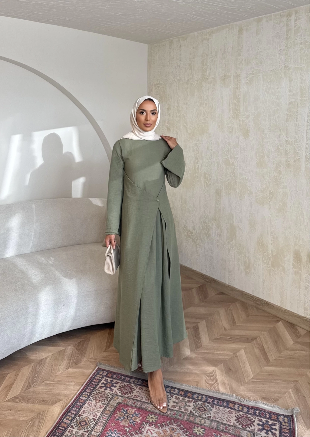 Noir Keten Elbise - Haki