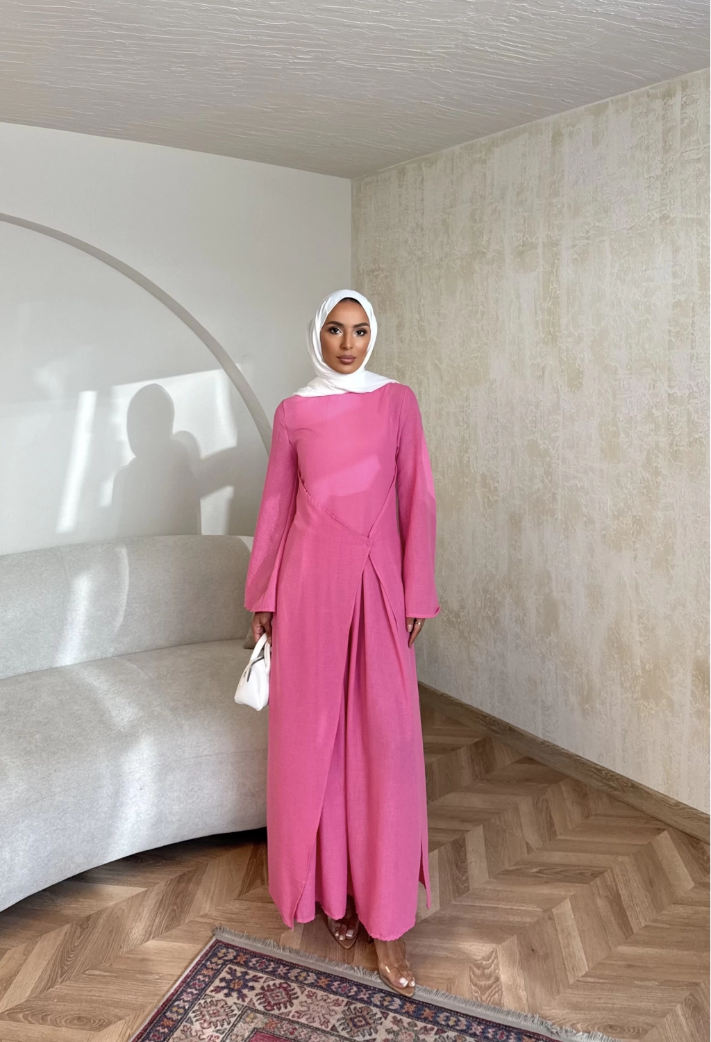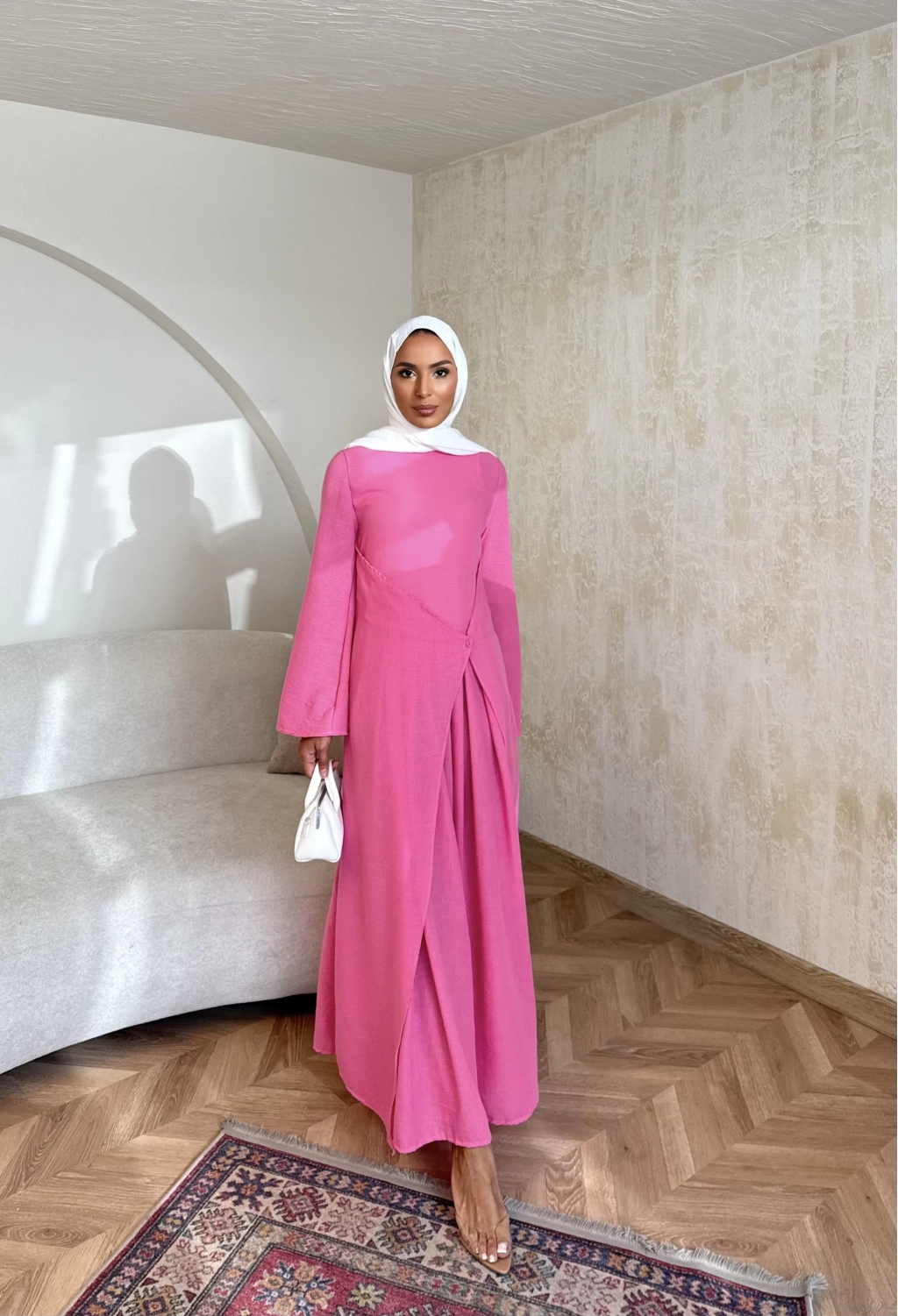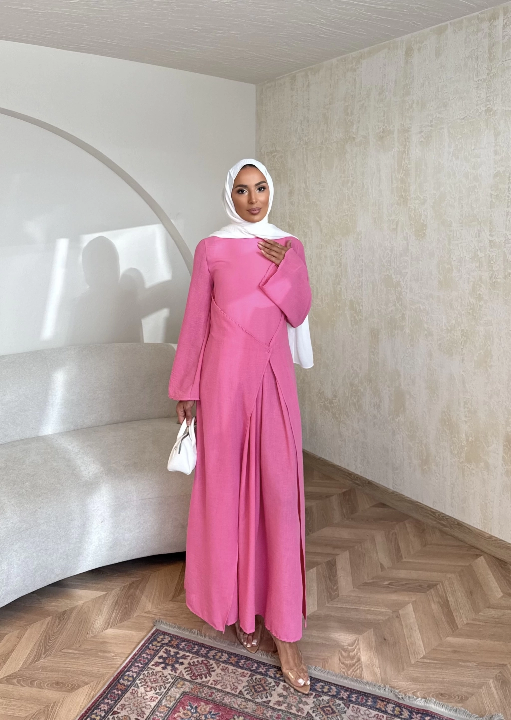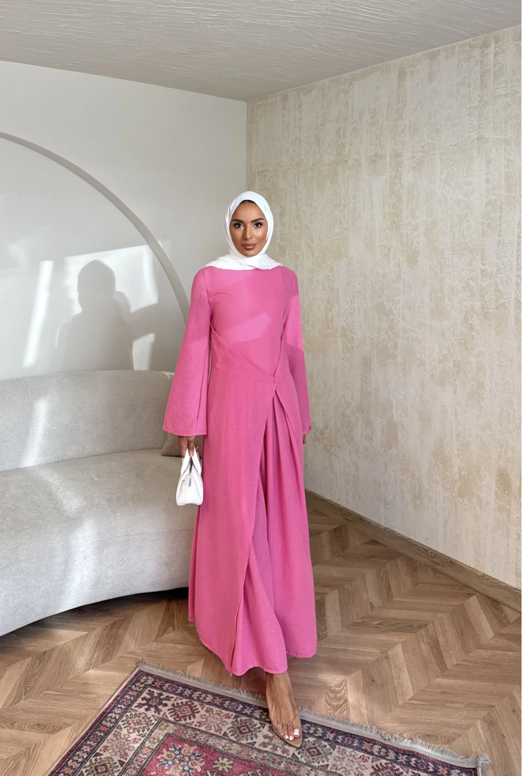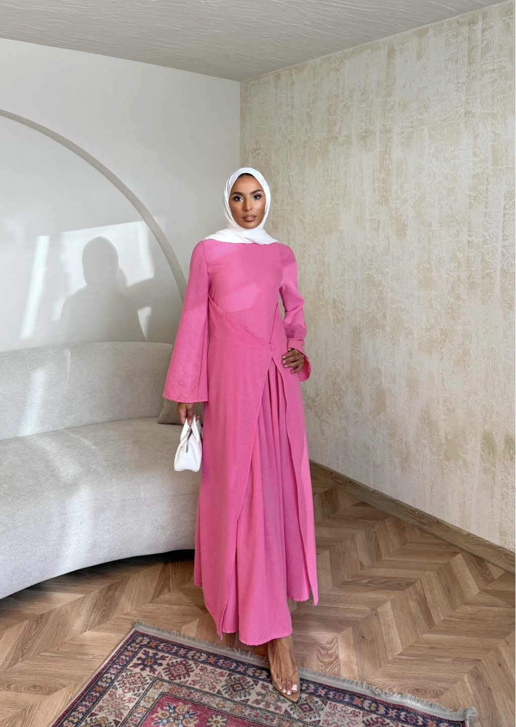 Noir Keten Elbise - Pembe