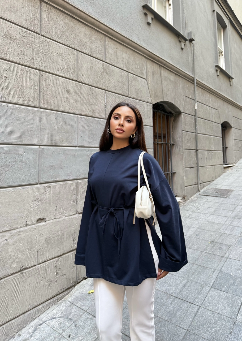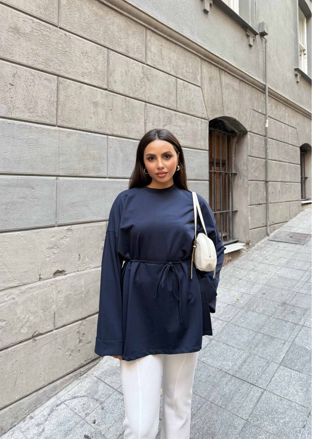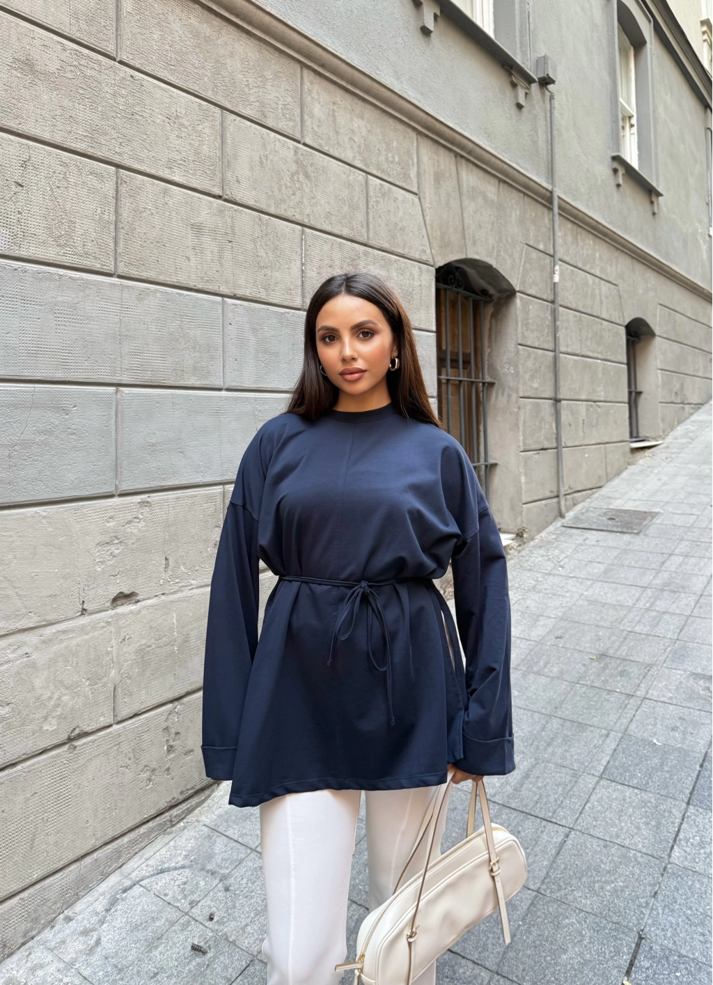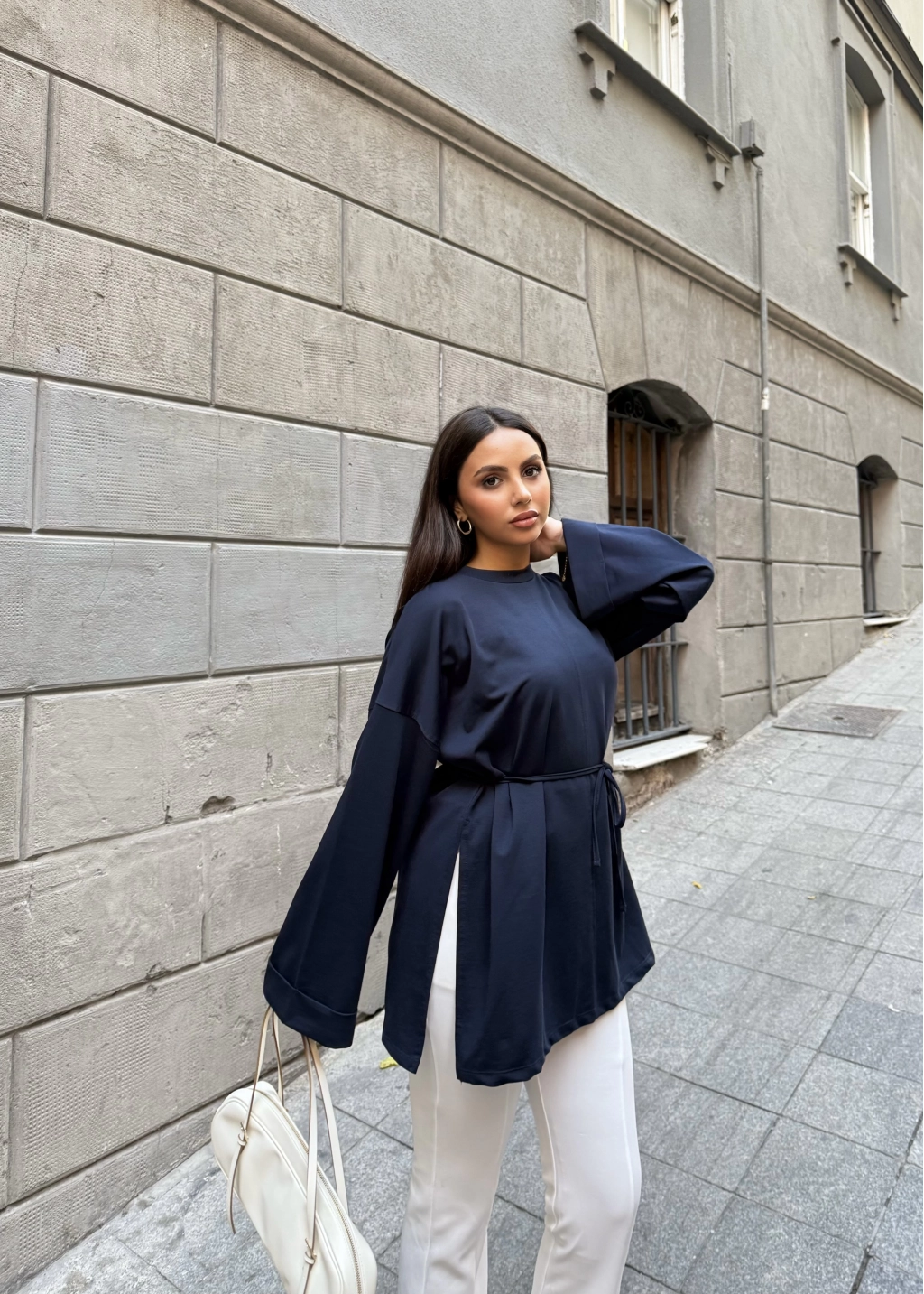 Nüha Yırtmaçlı Sweatshırt - Lacivert