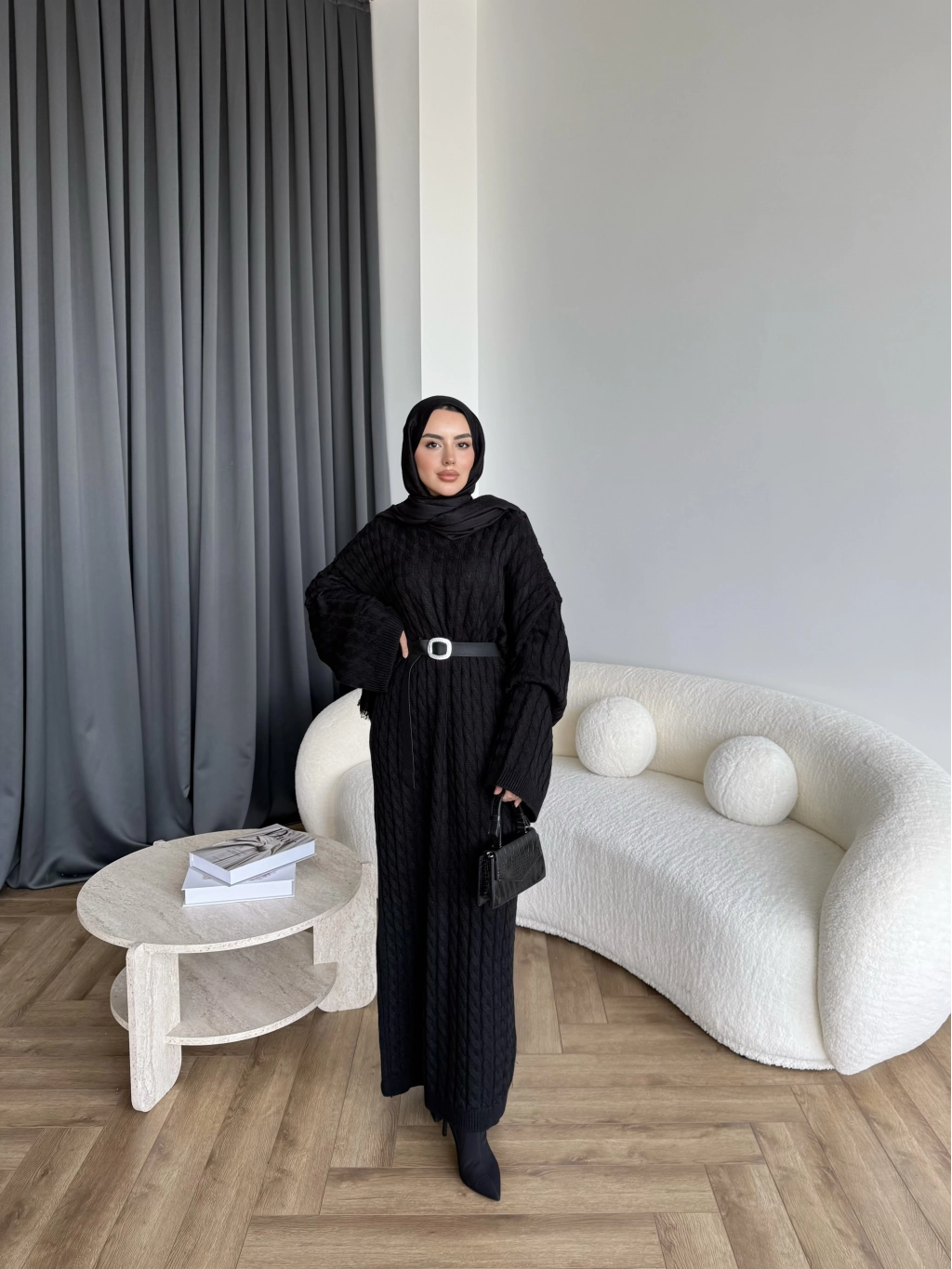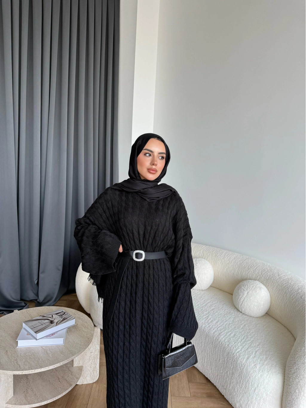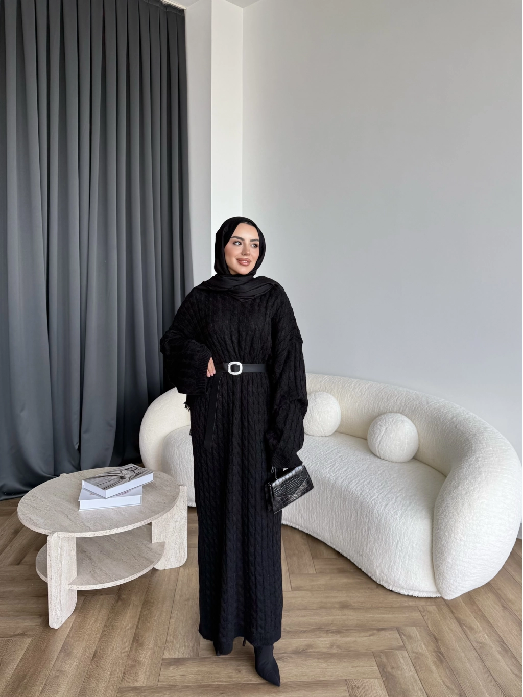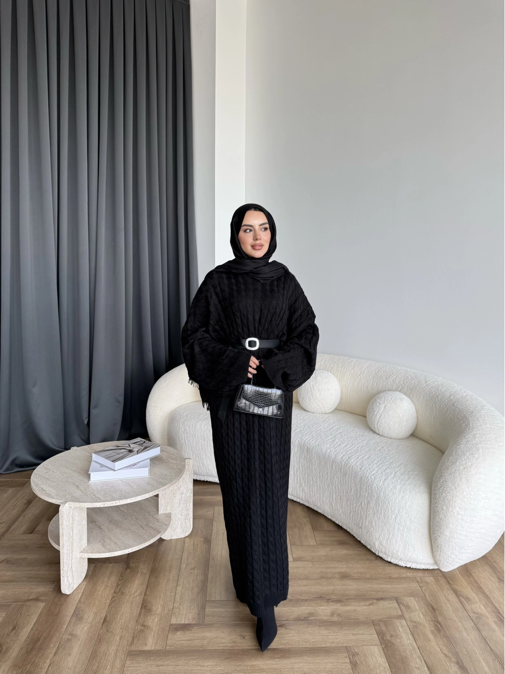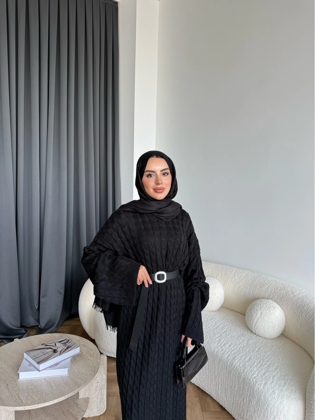 Nurs Örgü Detaylı Elbise - Siyah