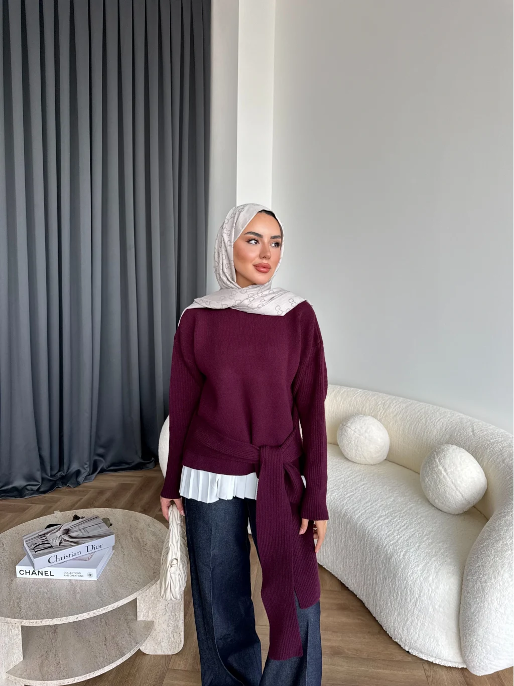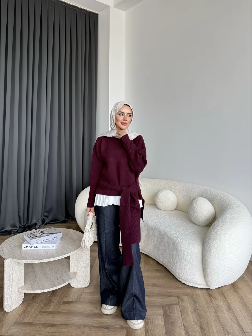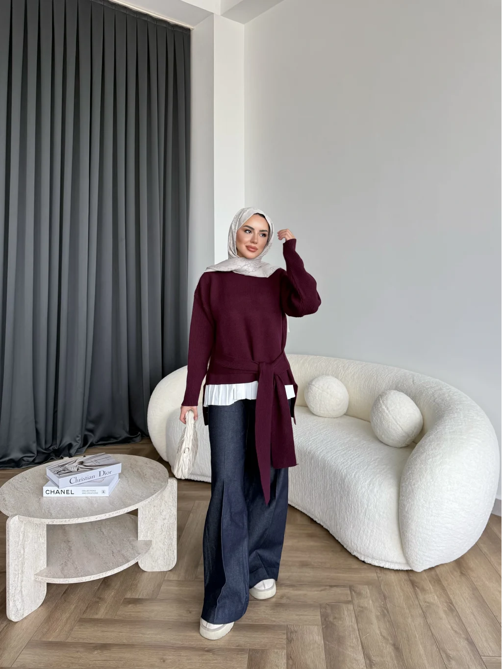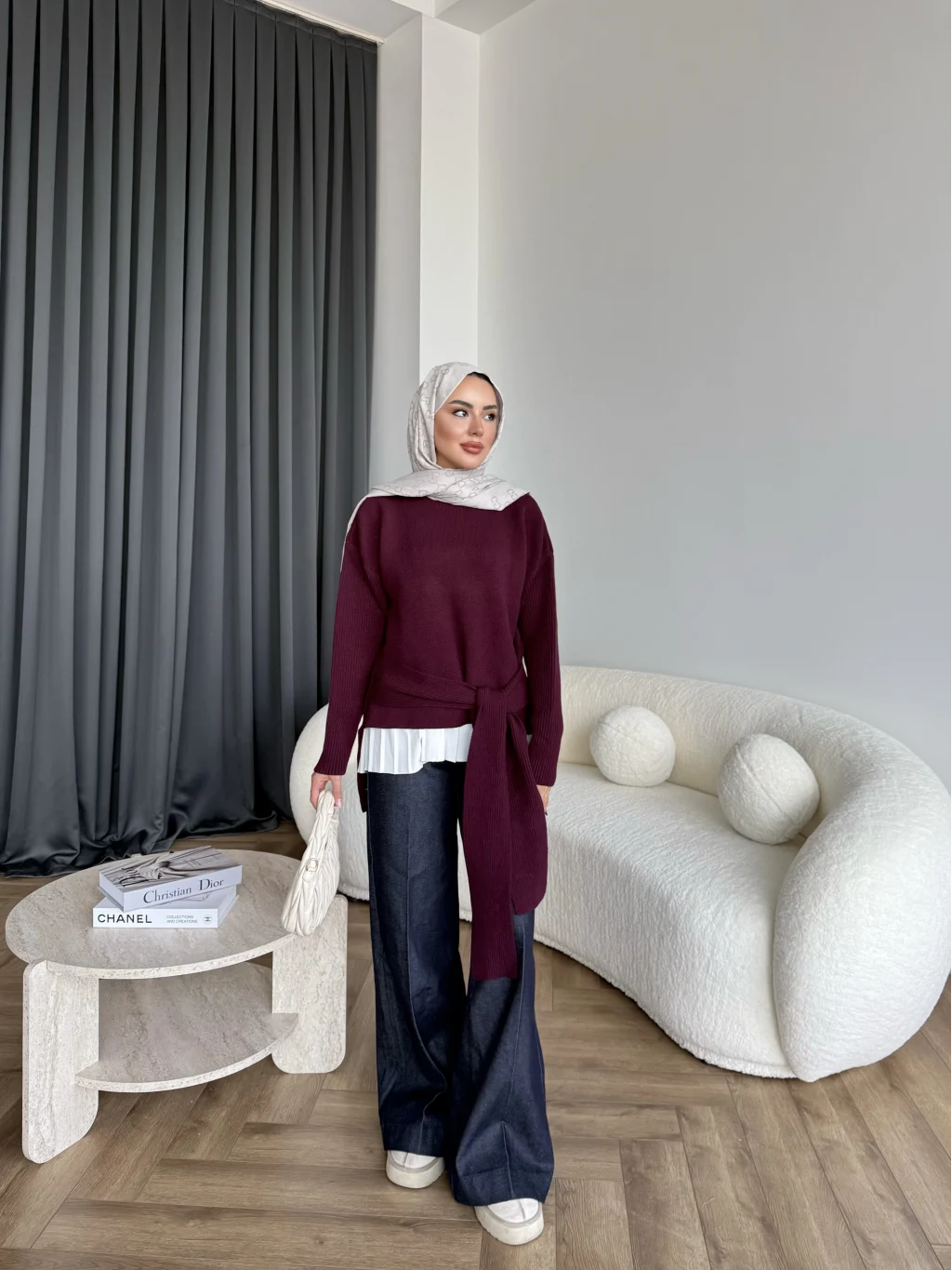 Ön Bağlamalı Triko Kazak - Bordo