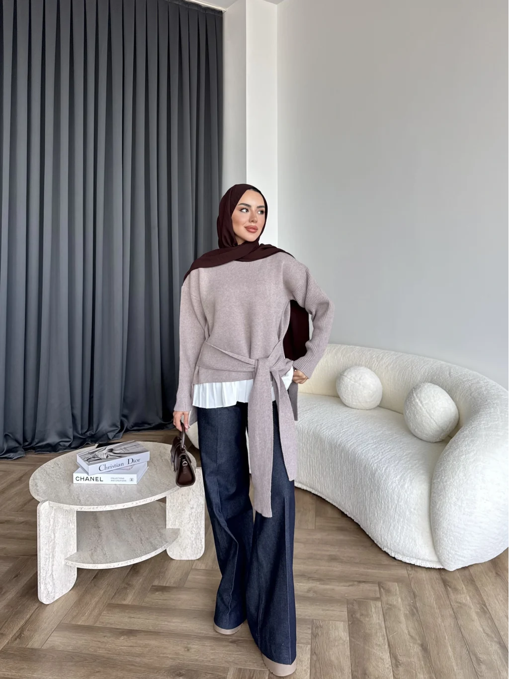 Polo Yaka Örgü Triko Takım - Acı Kahve