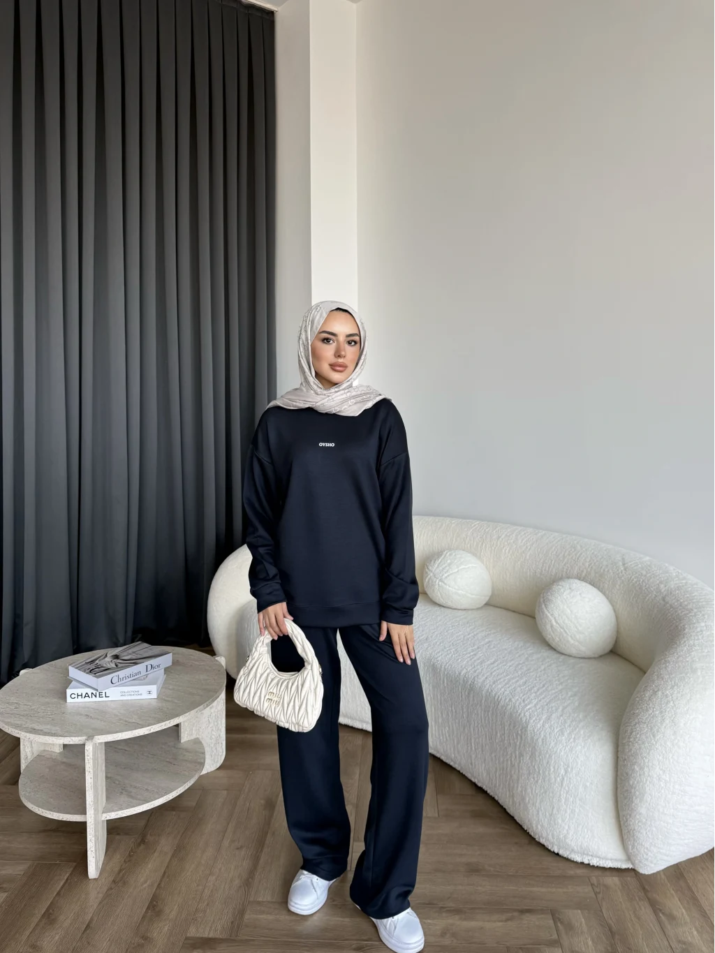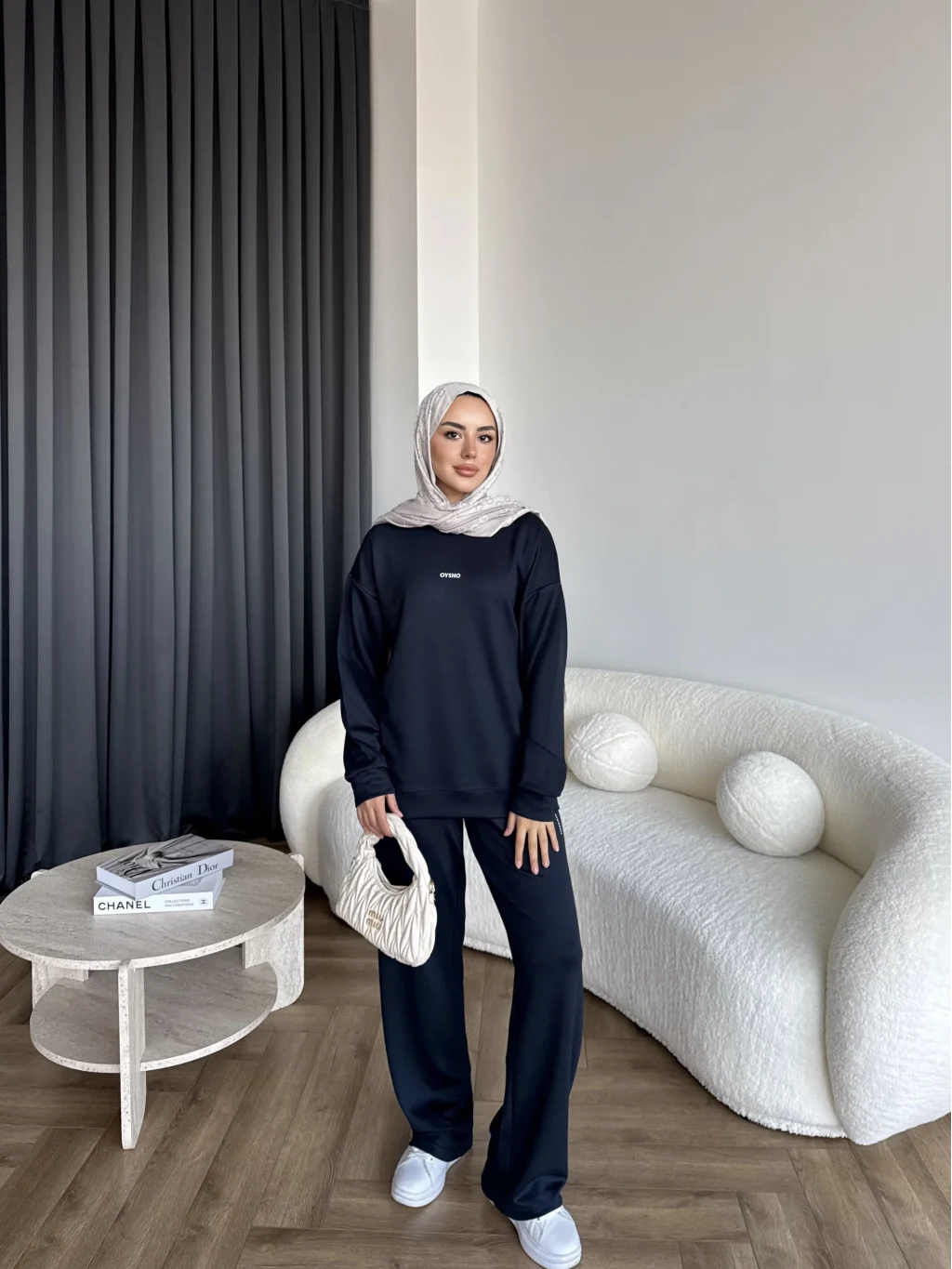 Yanı Kesik Paça Scuba Pantolon - Lacivert