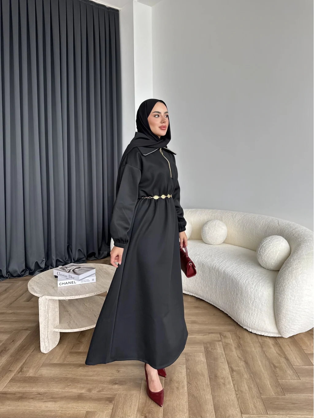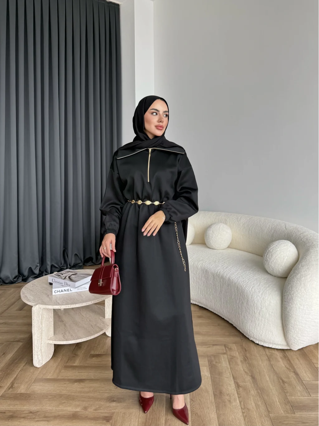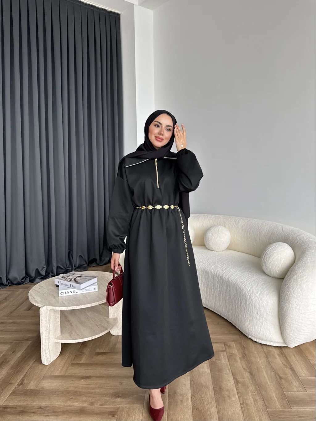 Özder Ön Fermuarlı Scuba Elbise - Siyah
