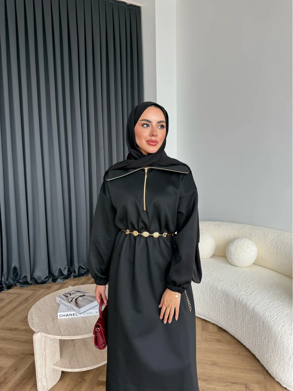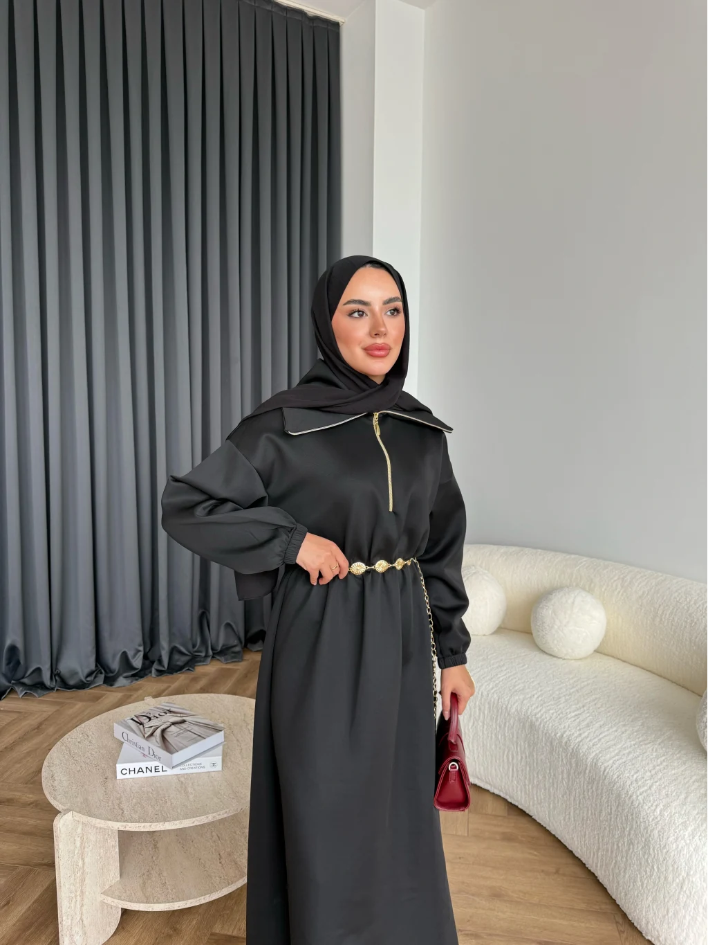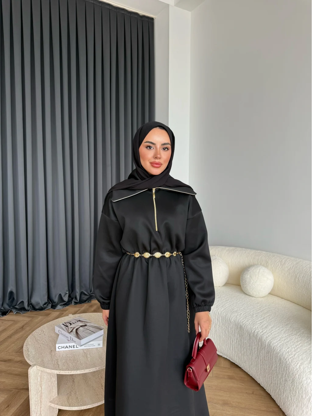 Özder Ön Fermuarlı Scuba Elbise - Siyah