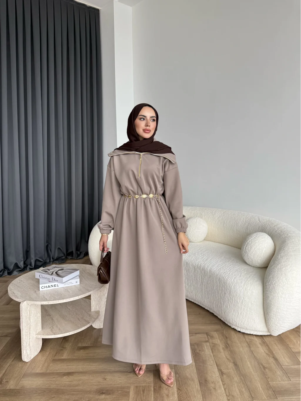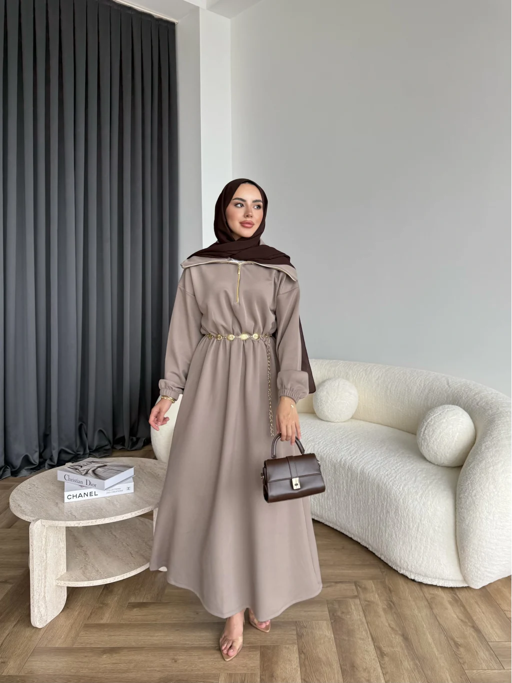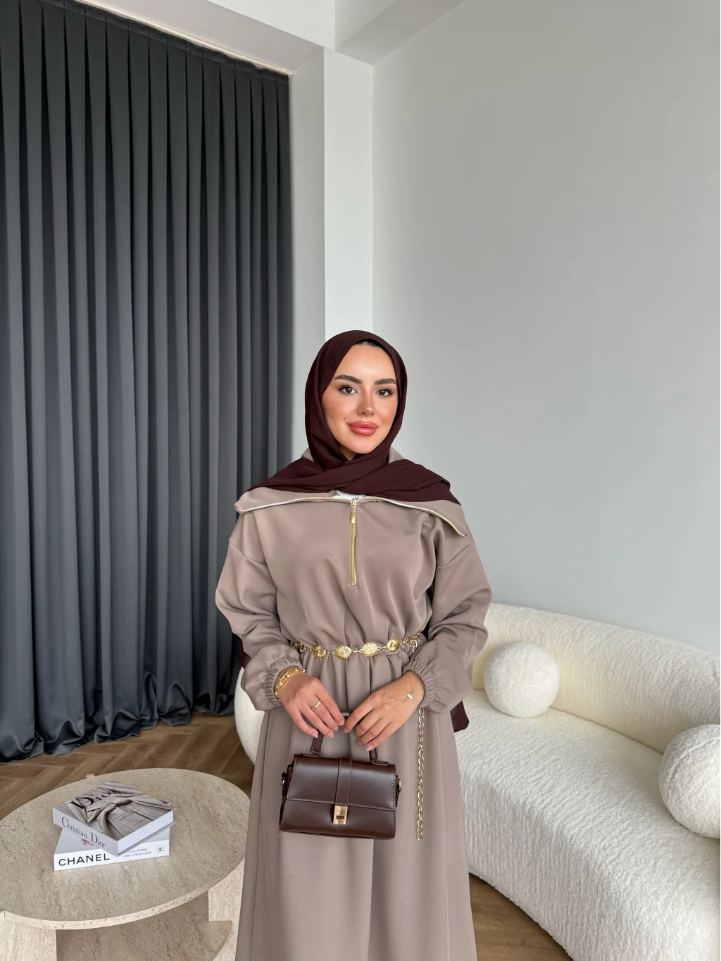 Özder Ön Fermuarlı Scuba Elbise - Sütlü Kahve
