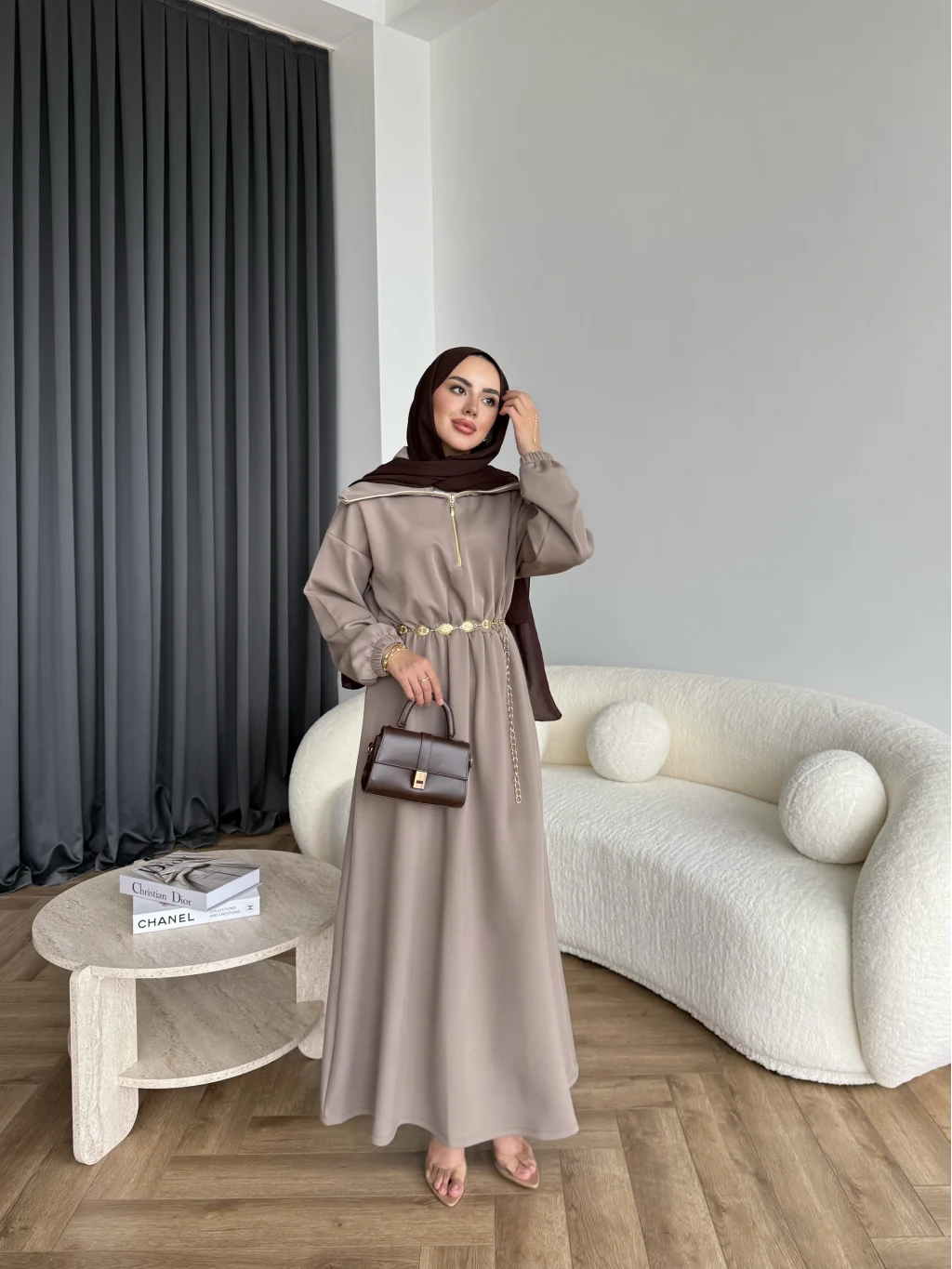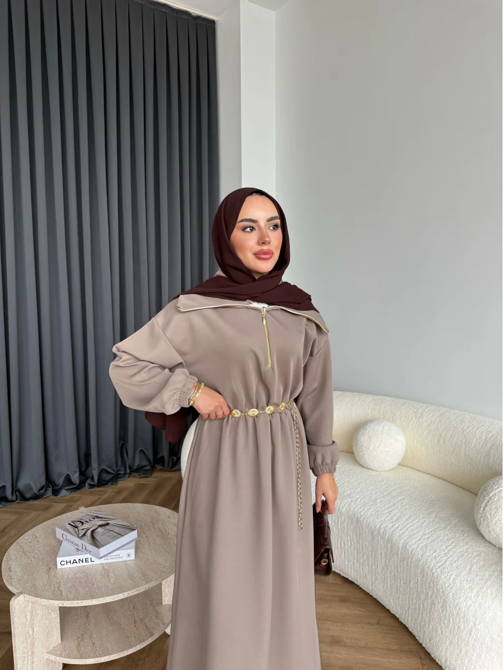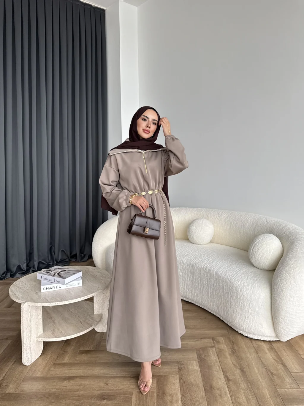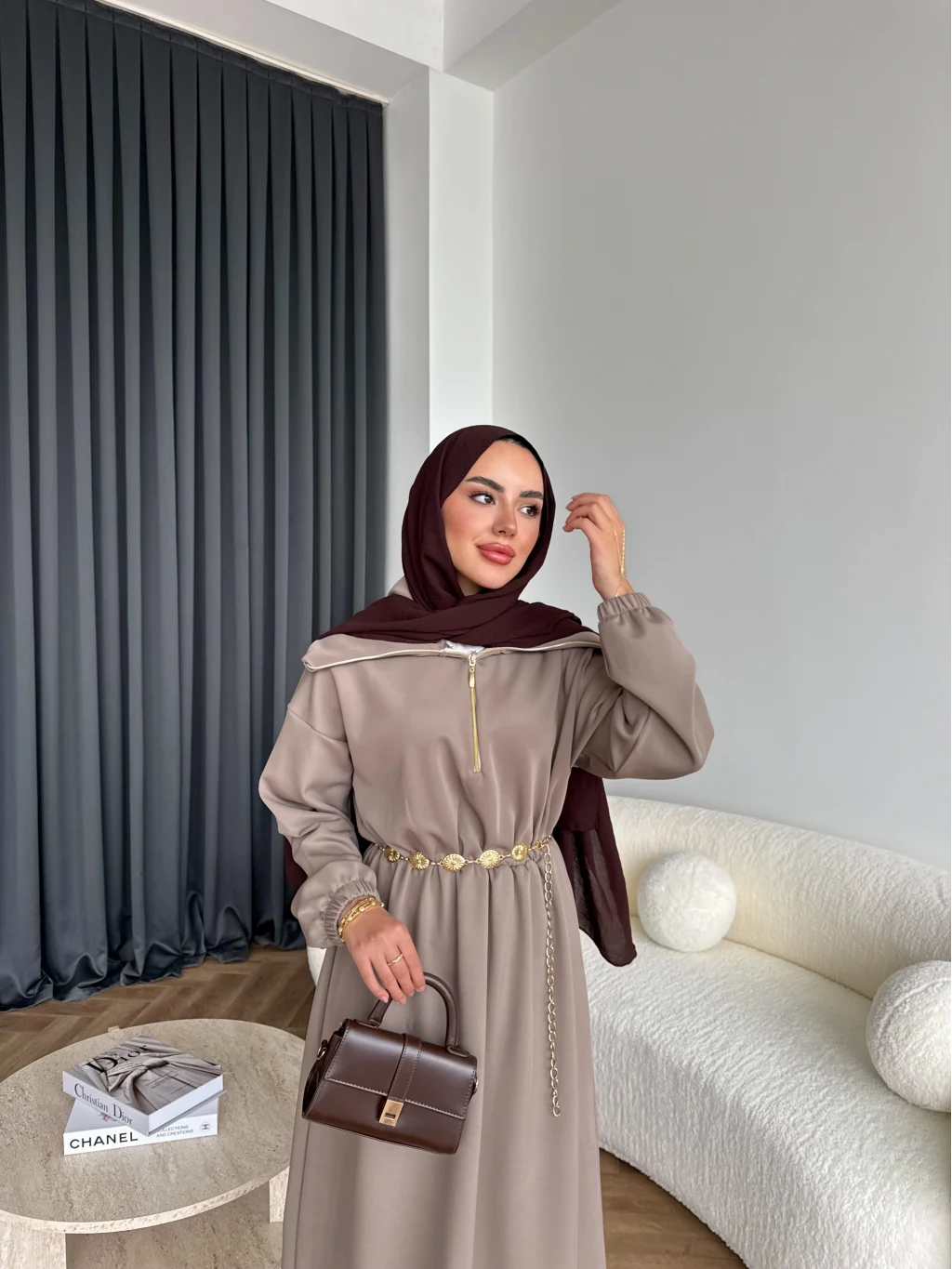 Özder Ön Fermuarlı Scuba Elbise - Sütlü Kahve