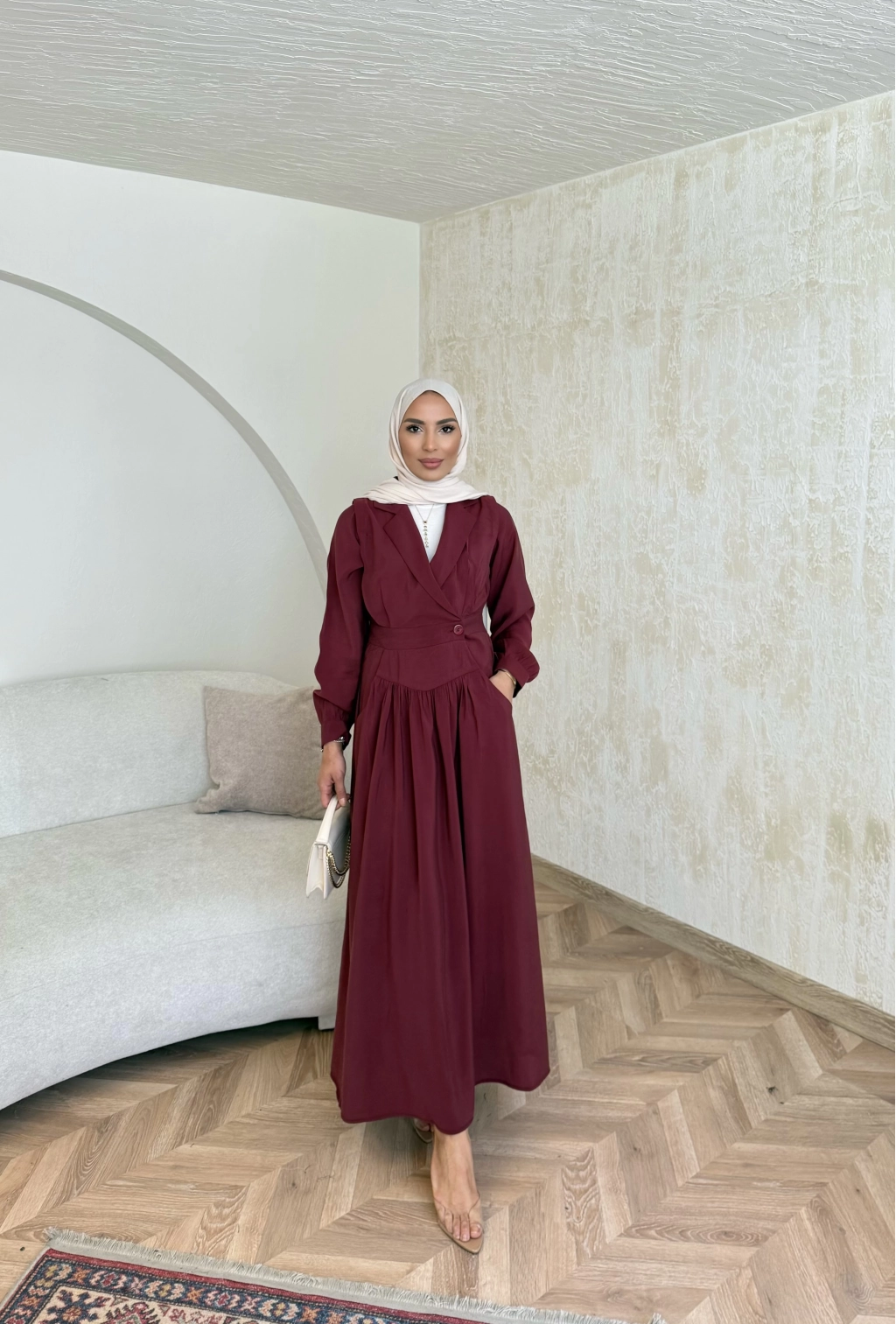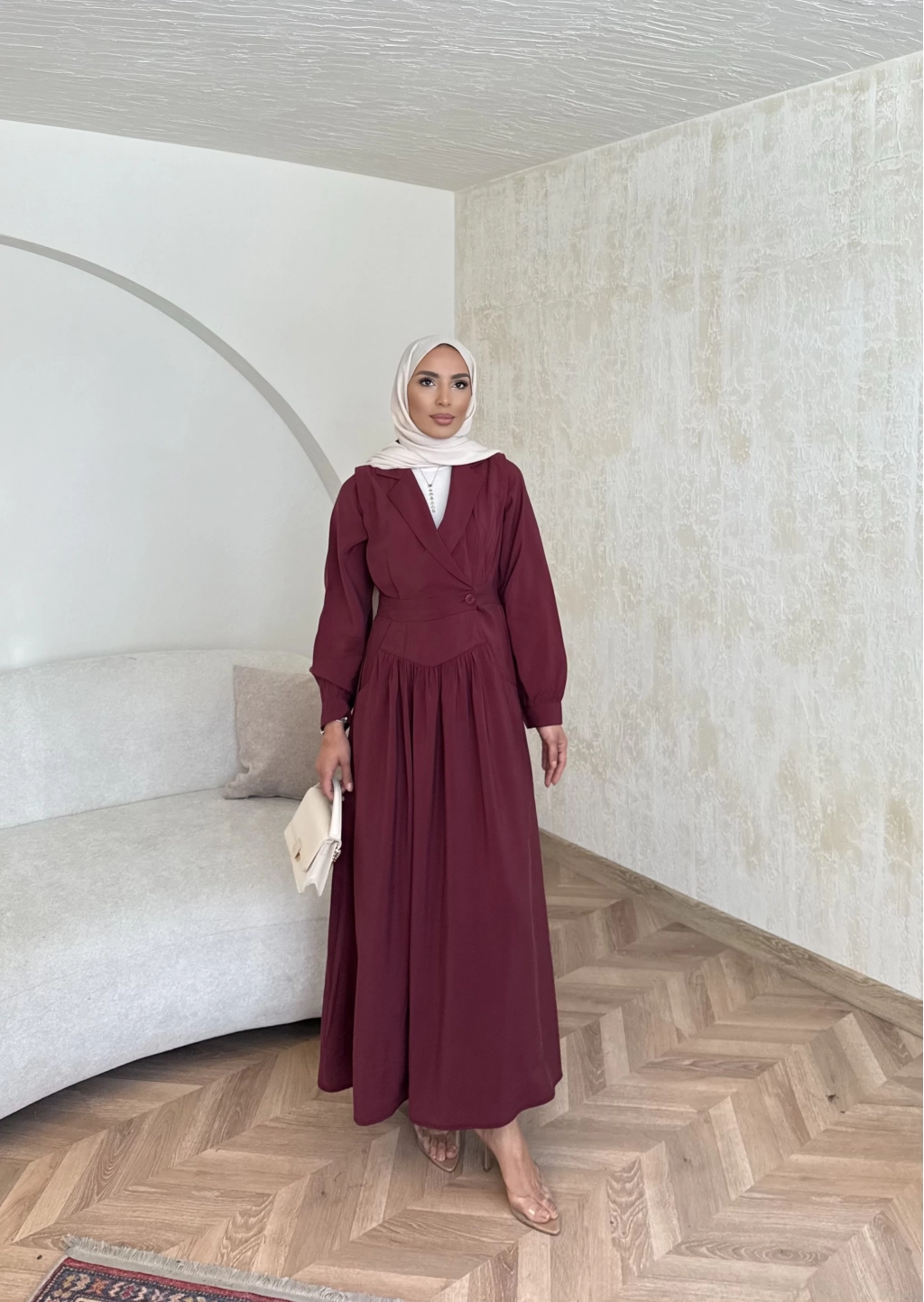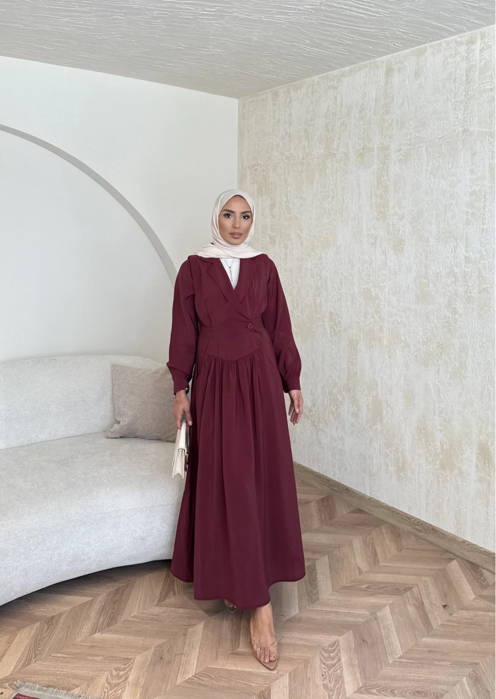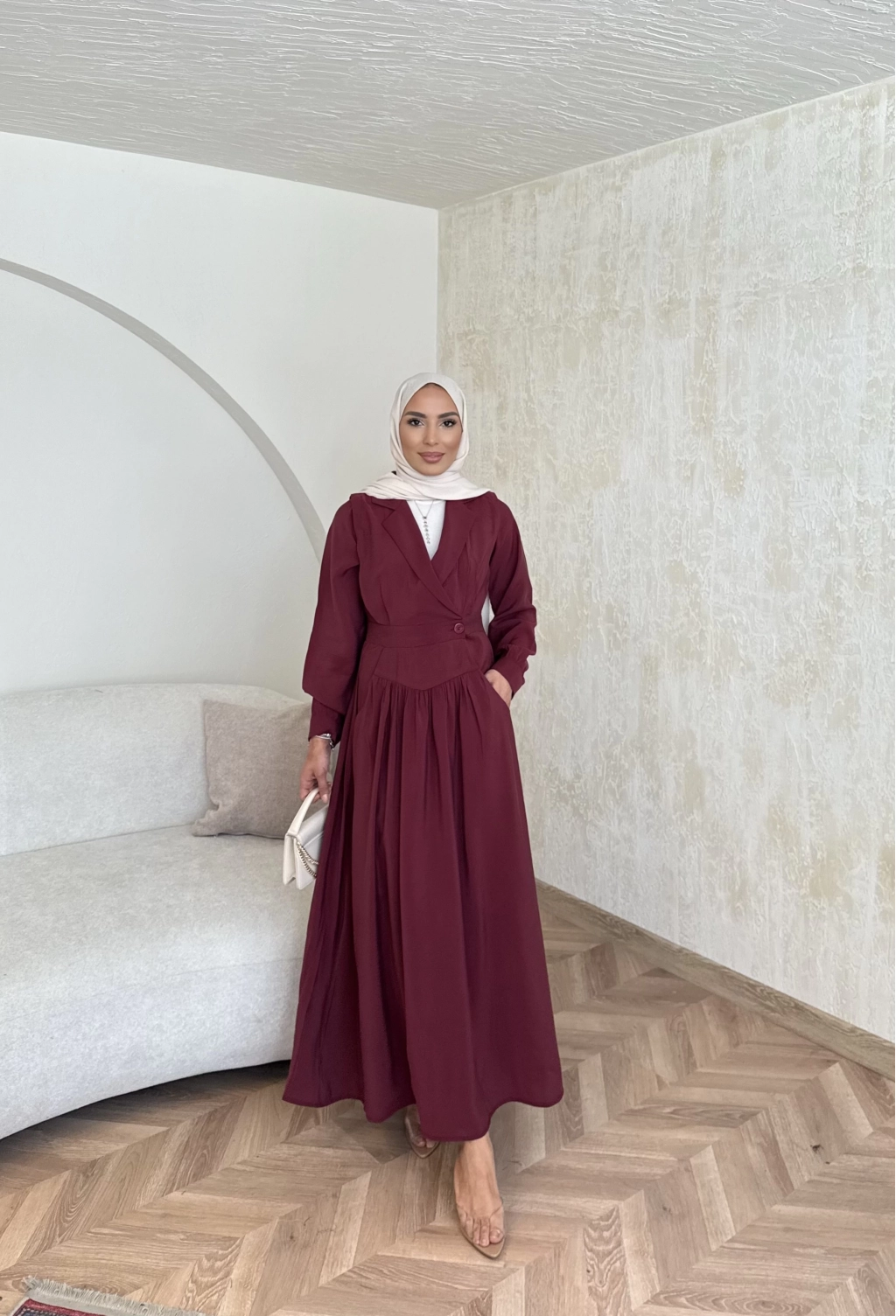 Pera Detaylı Elbise - Bordo