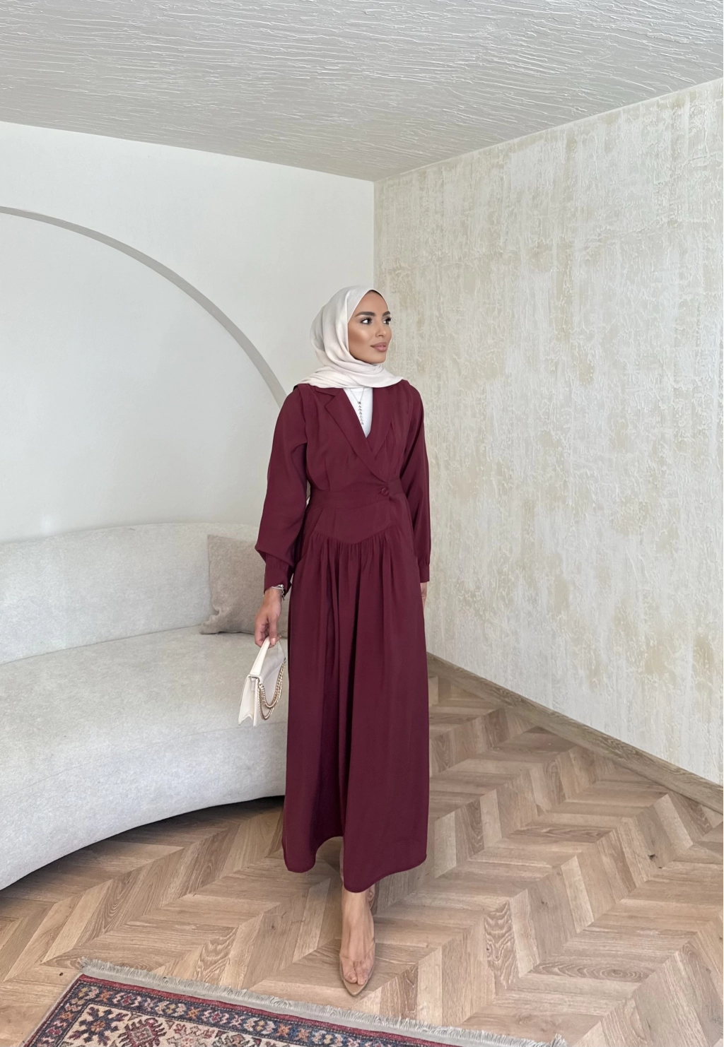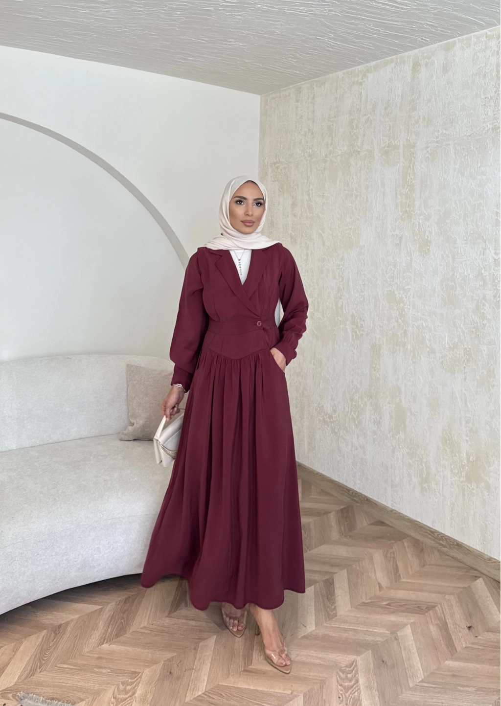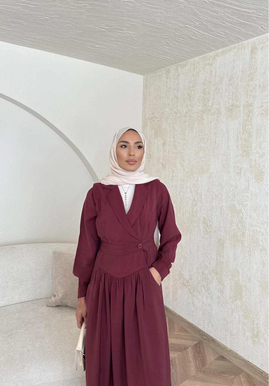 Pera Detaylı Elbise - Bordo