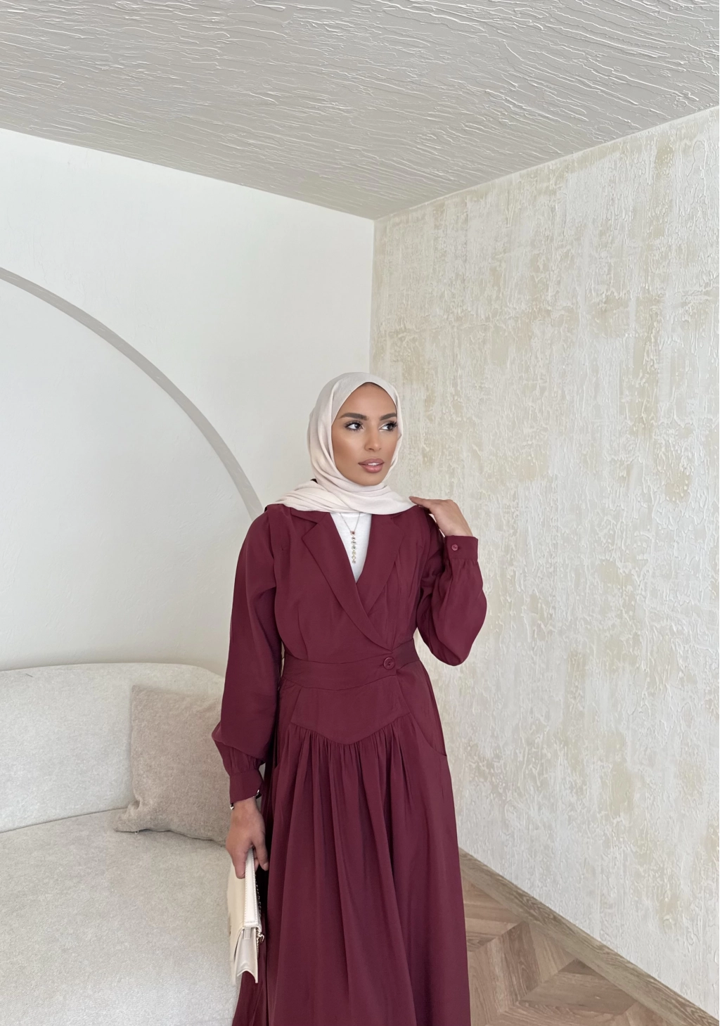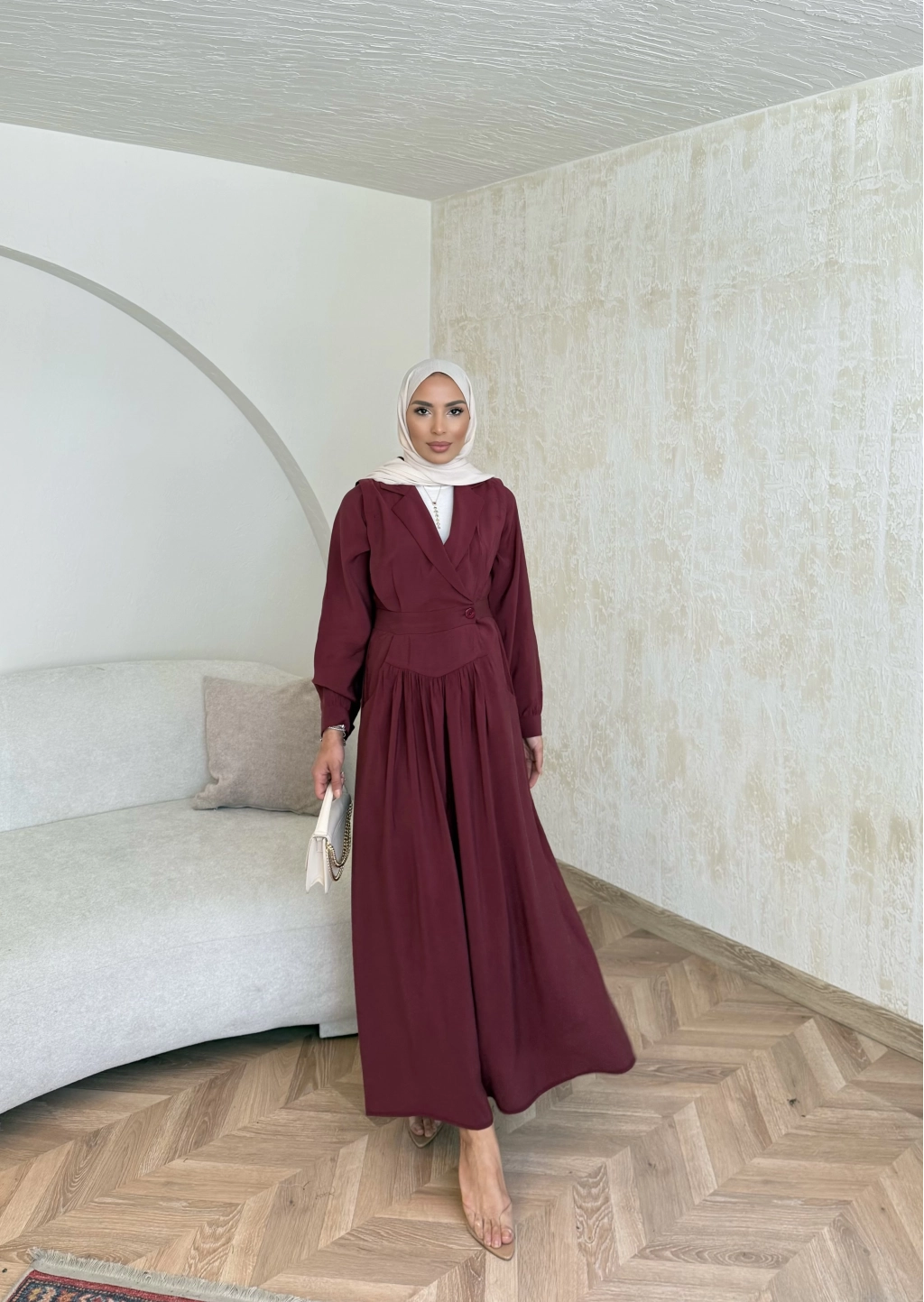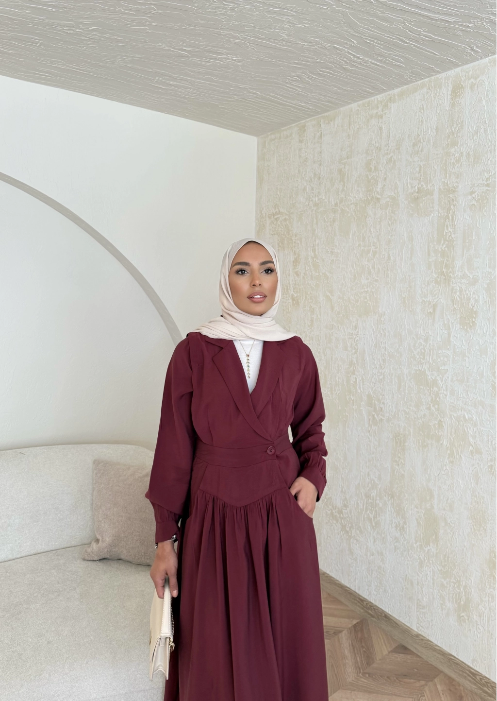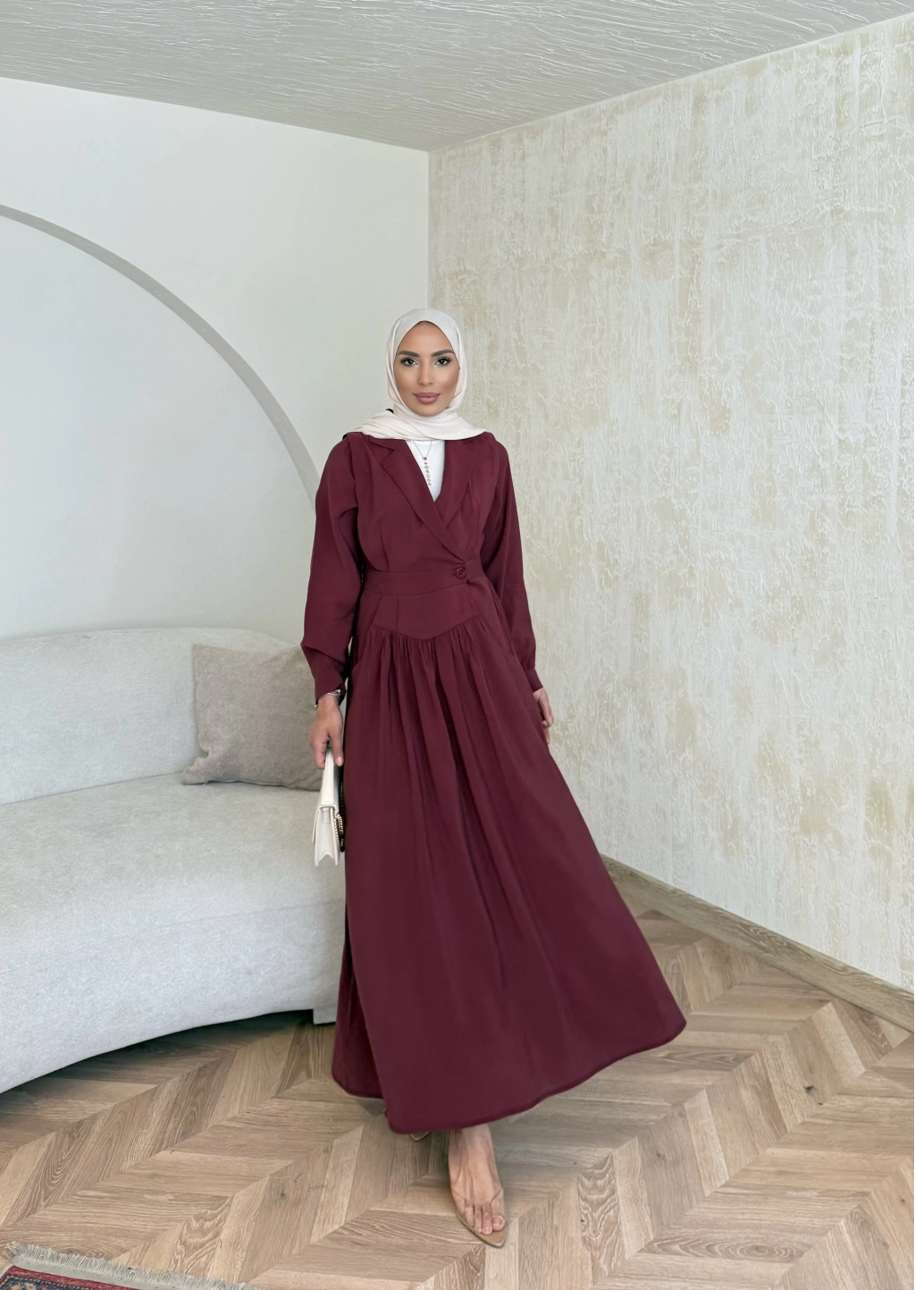 Pera Detaylı Elbise - Bordo