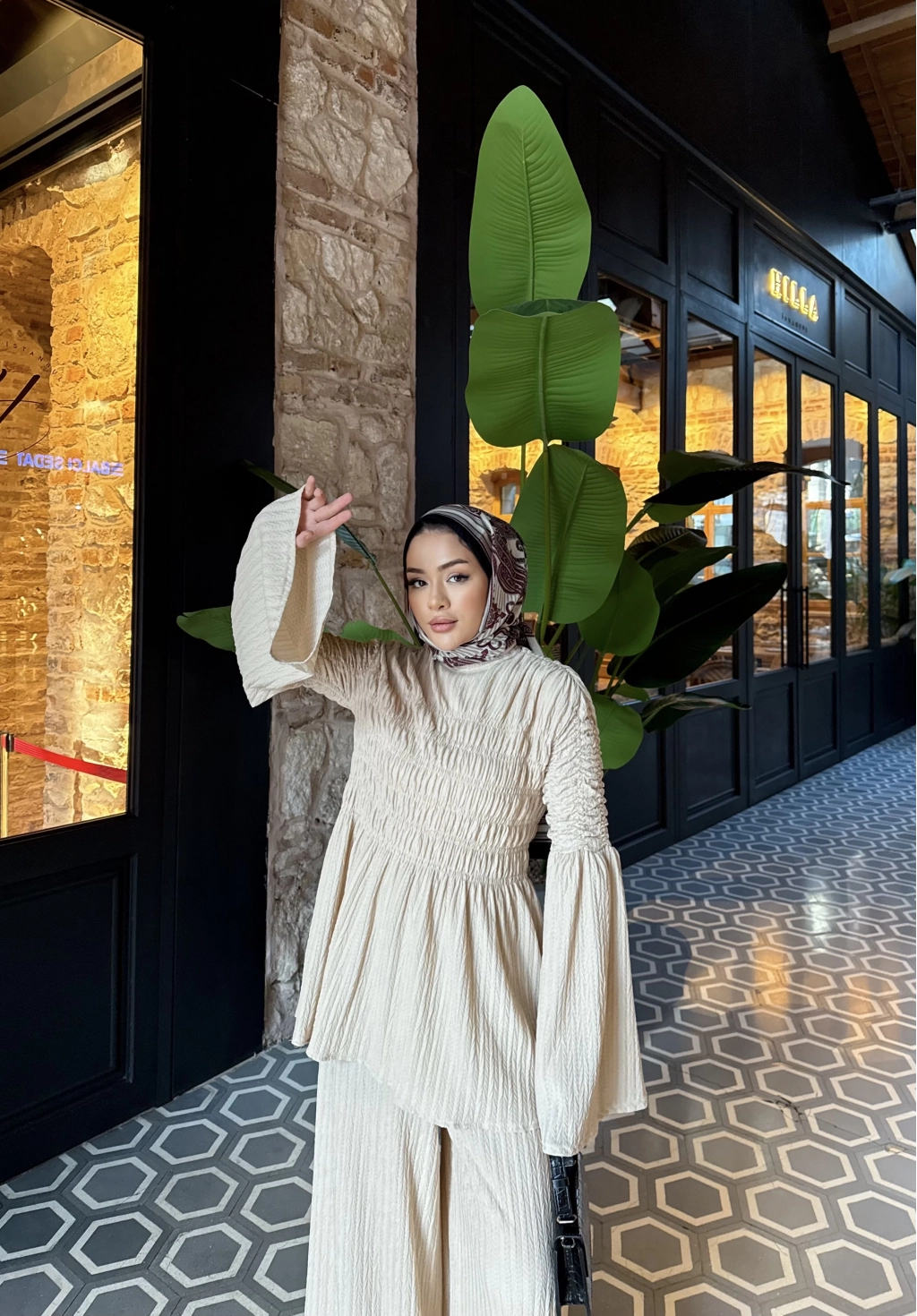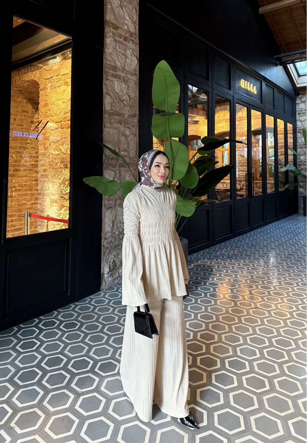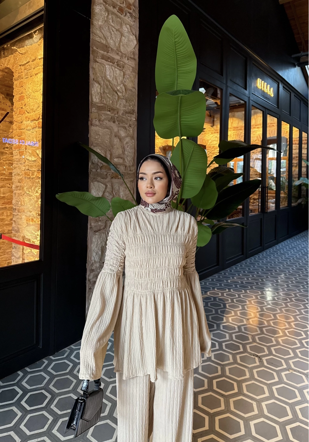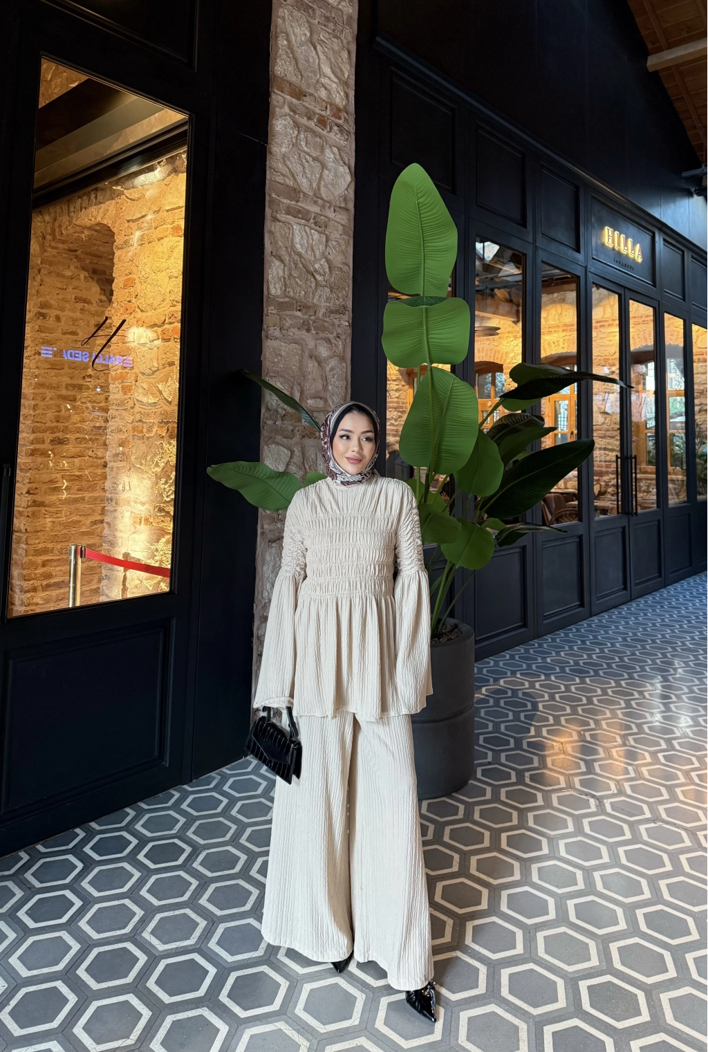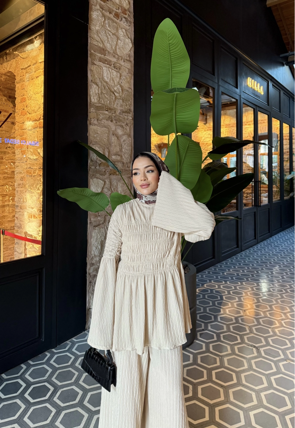 Piliseli Lastik Detay Takım - Bej