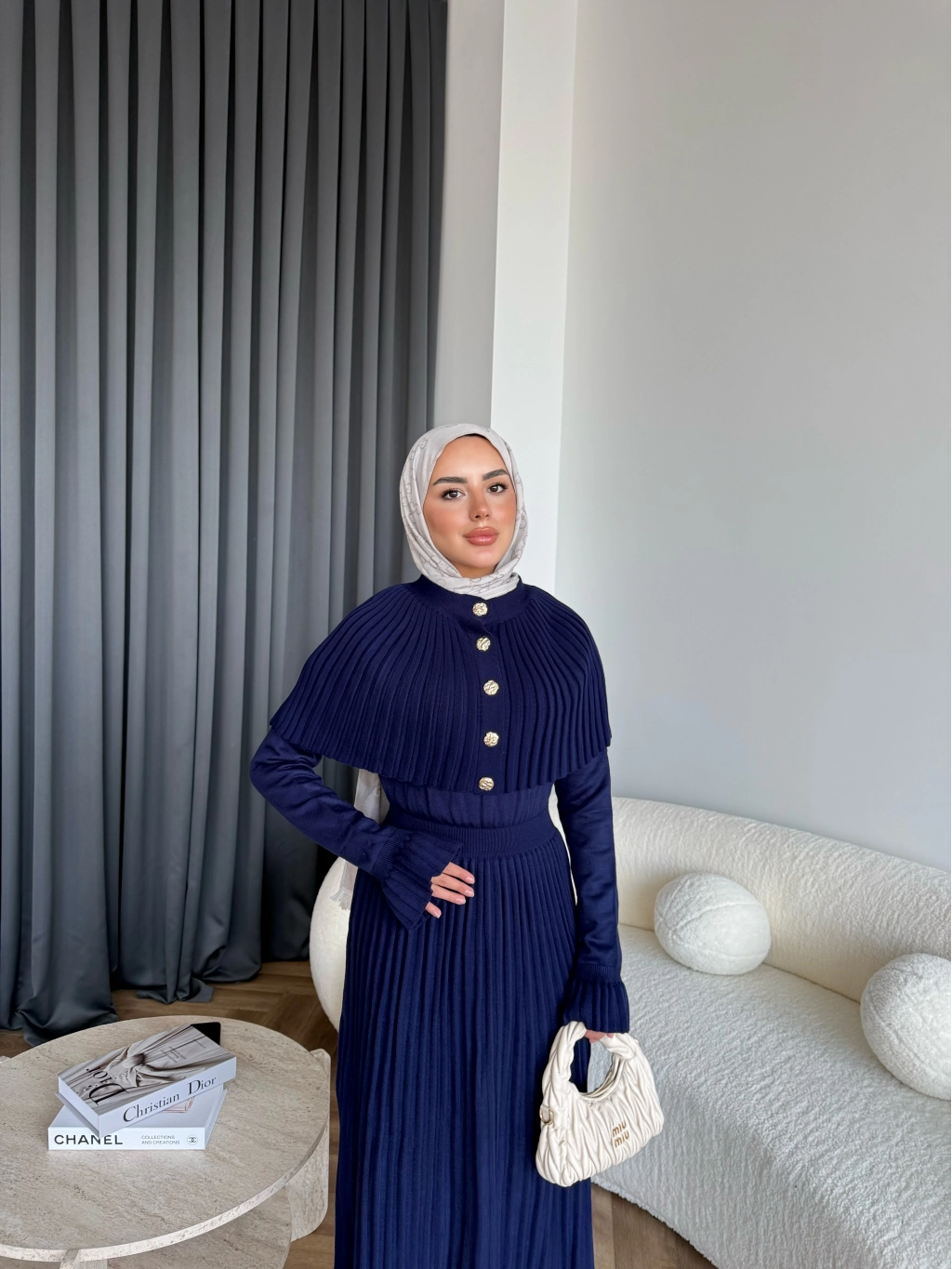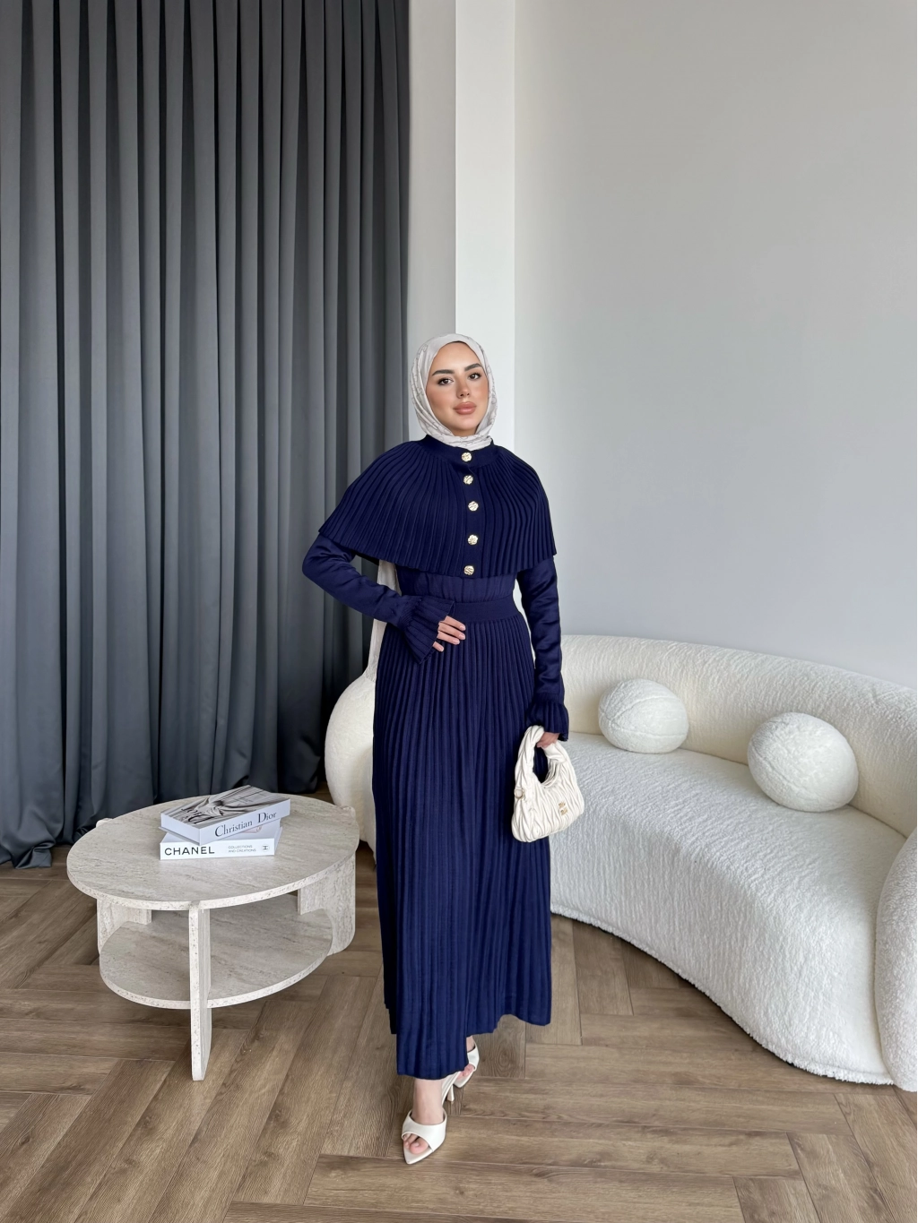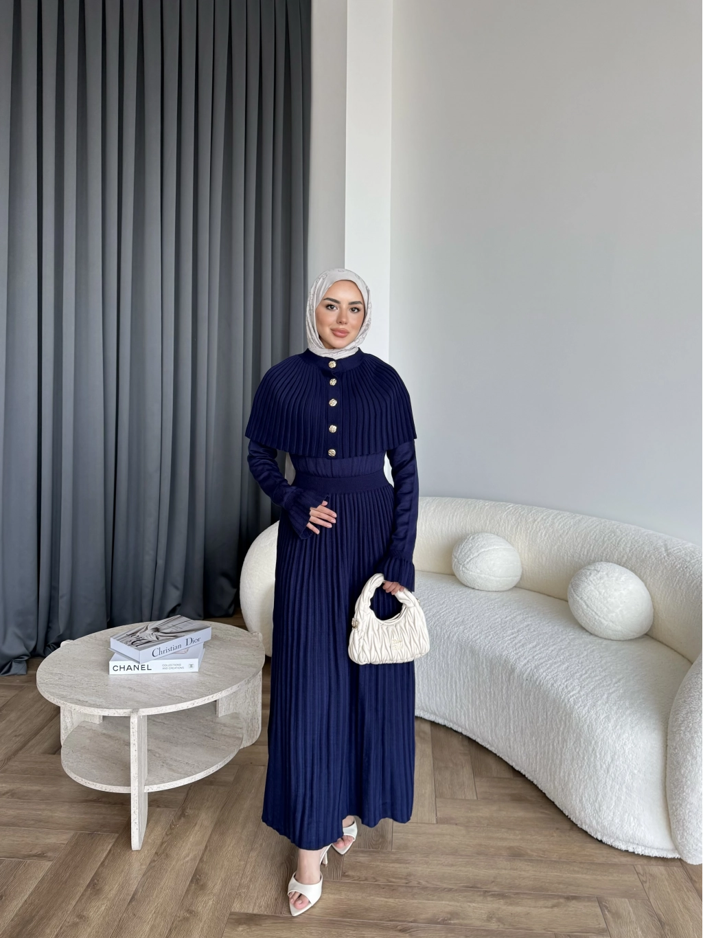 Piliseli Triko Elbise - Lacivert