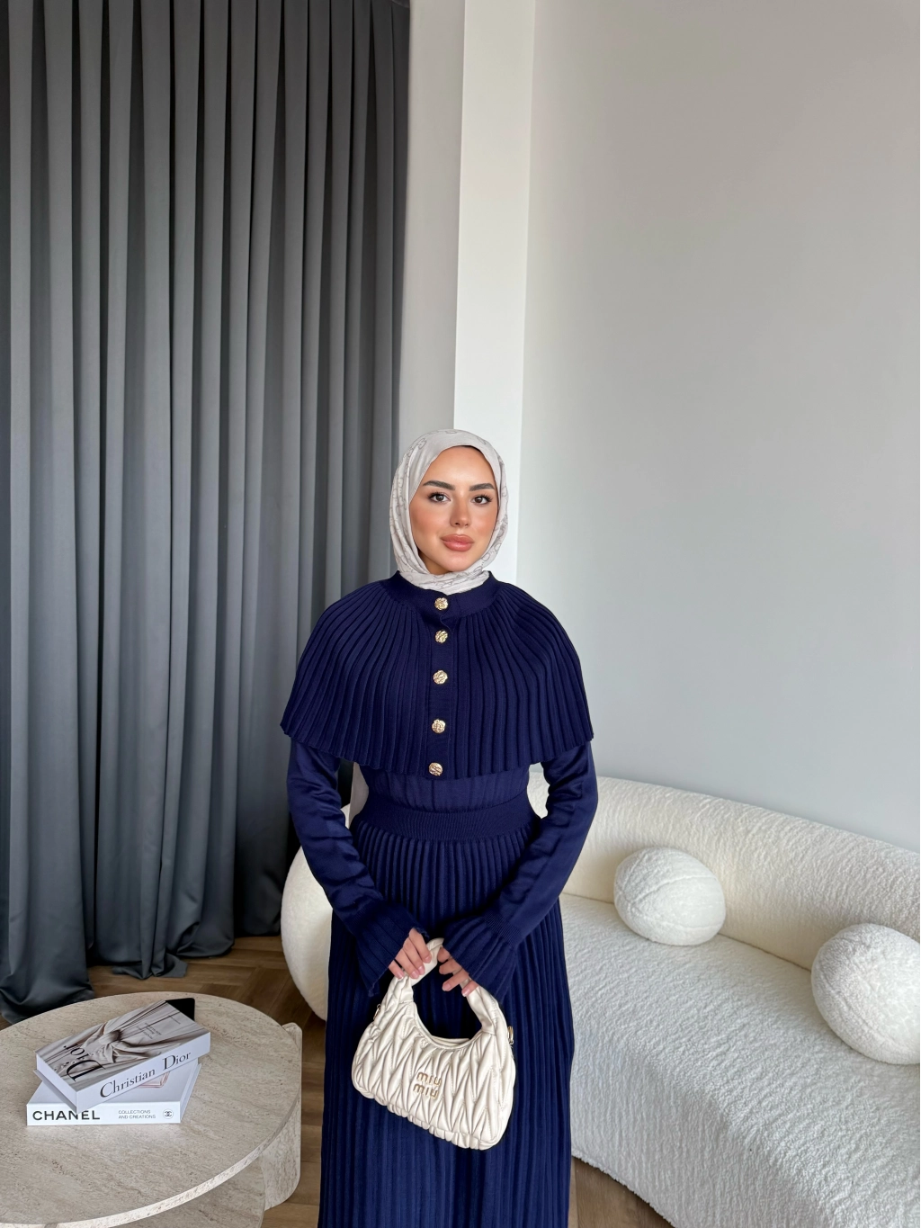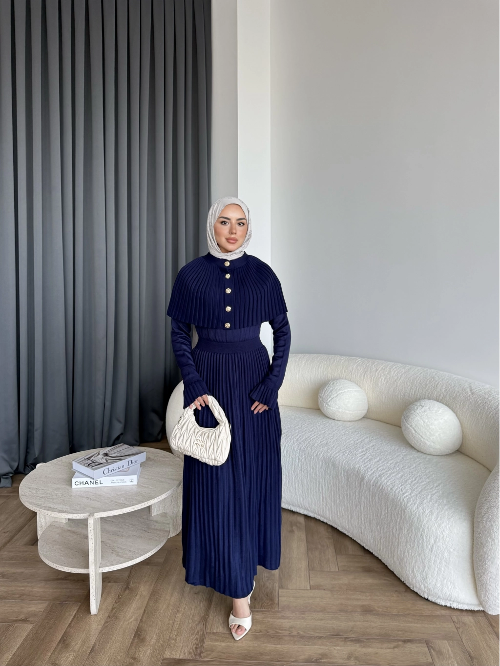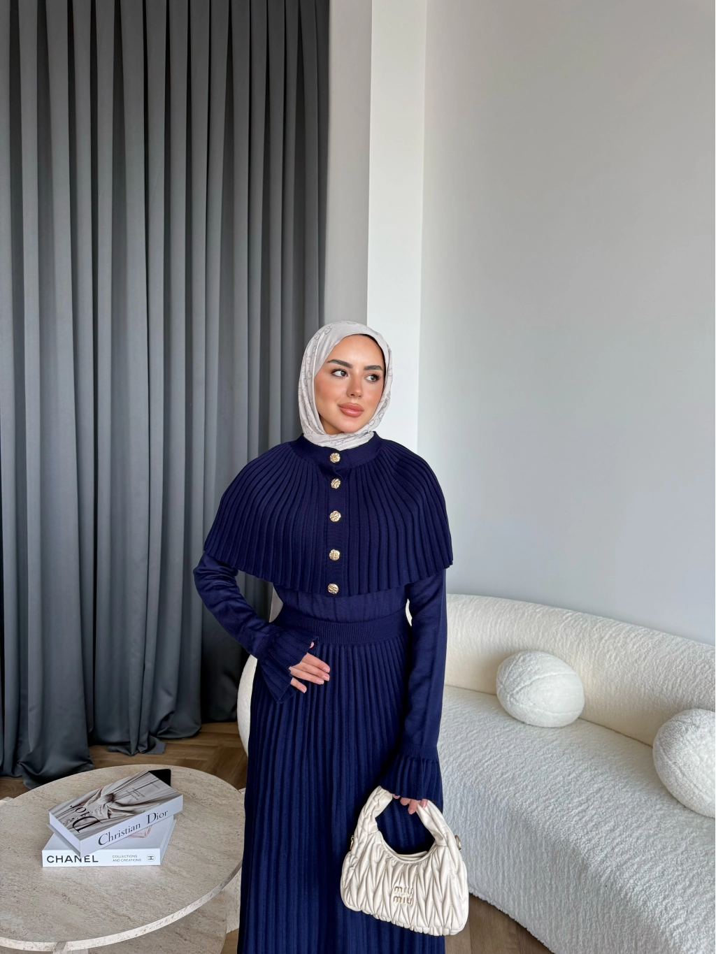 Piliseli Triko Elbise - Lacivert