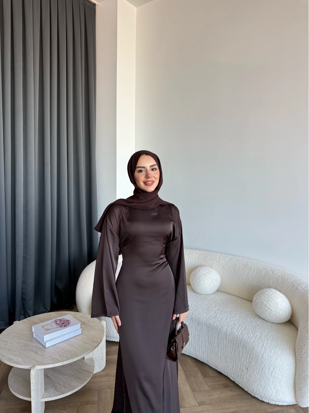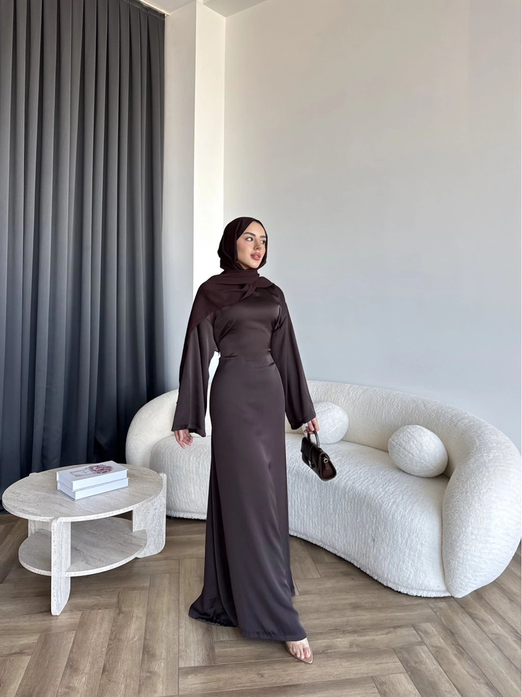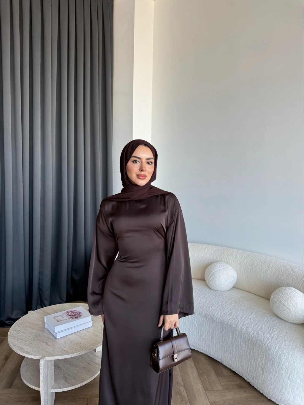 Pln- Aslıhan Saten Elbise - Acı Kahve