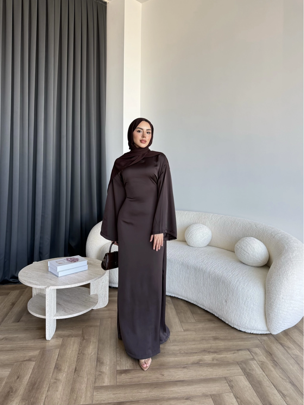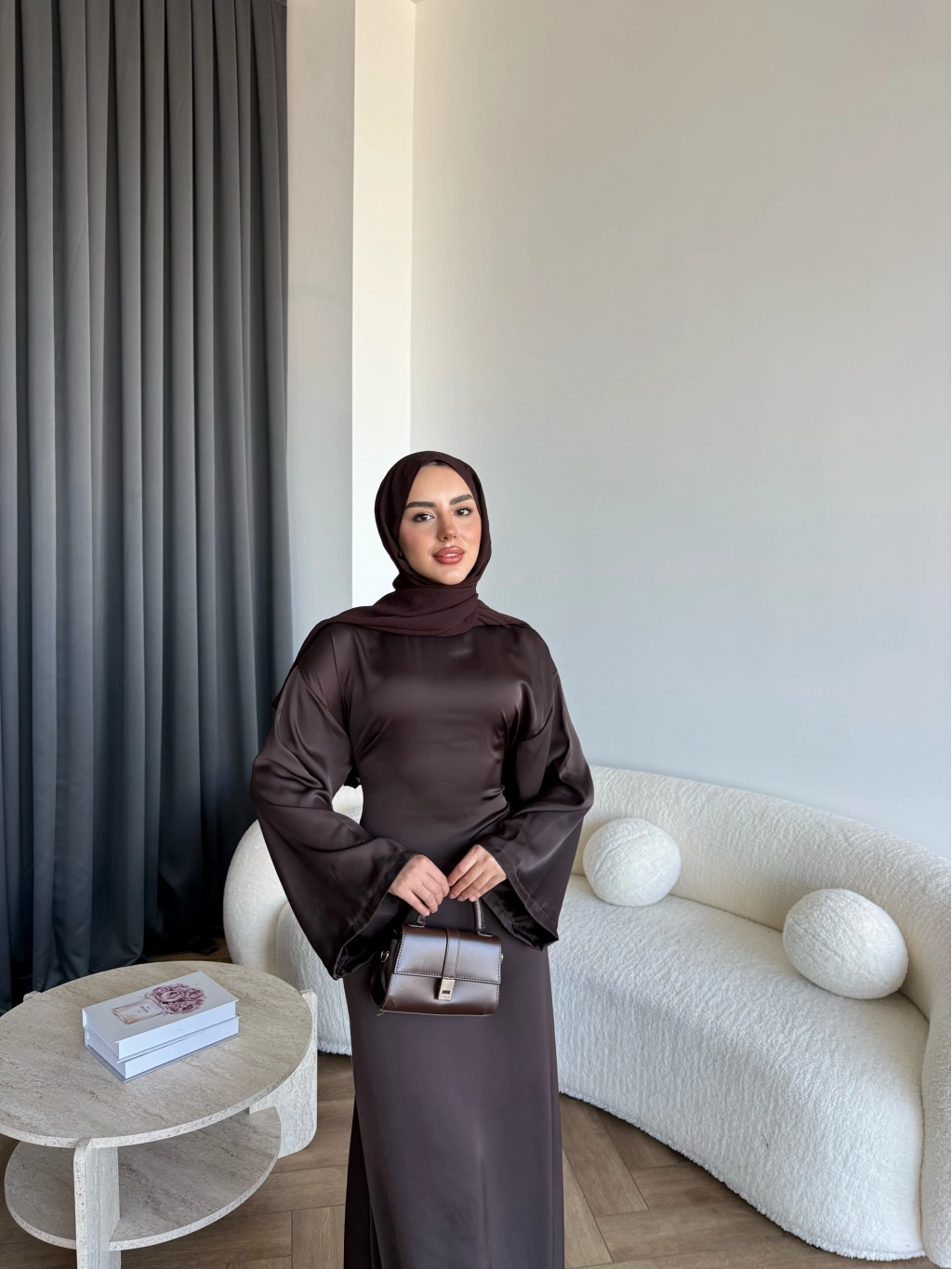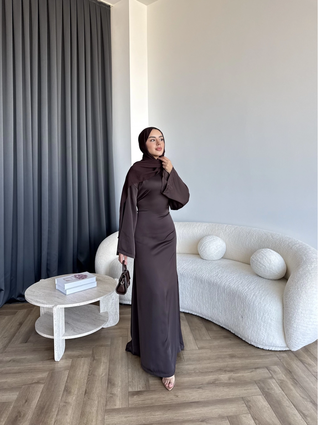 Pln- Aslıhan Saten Elbise - Acı Kahve