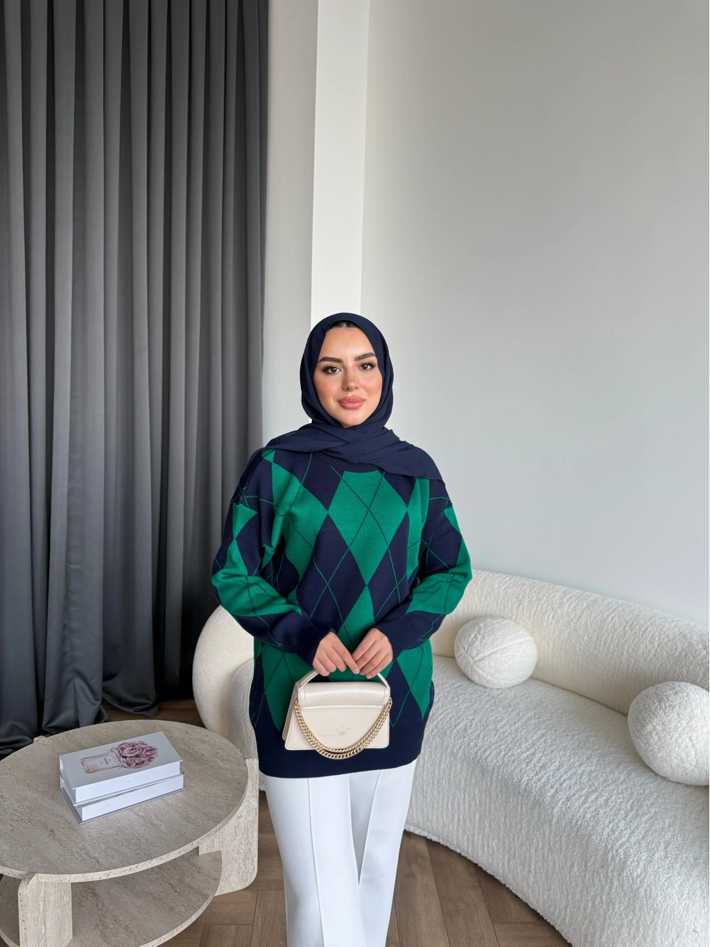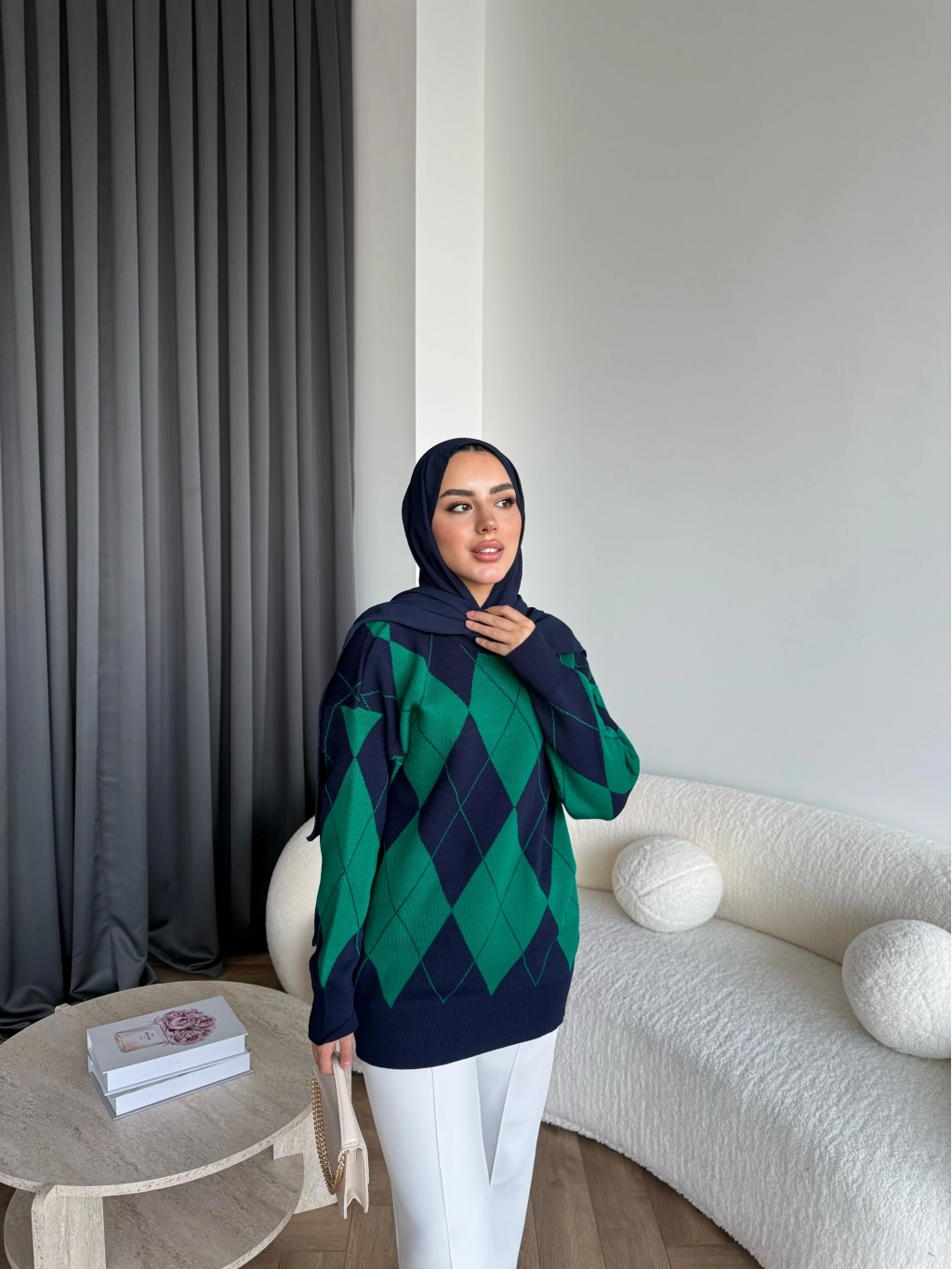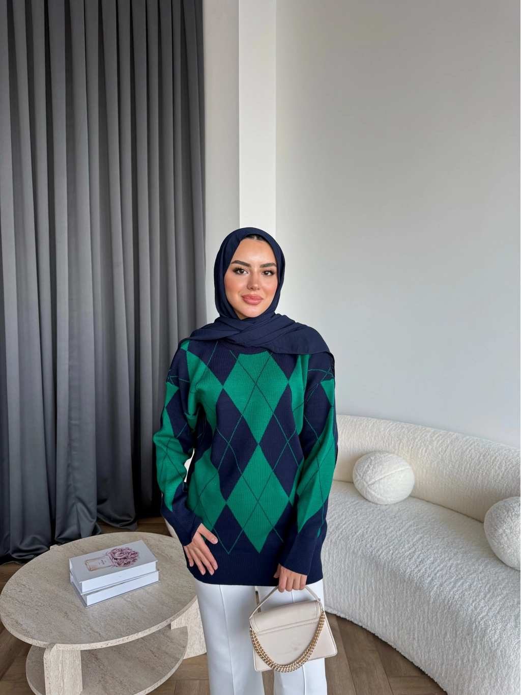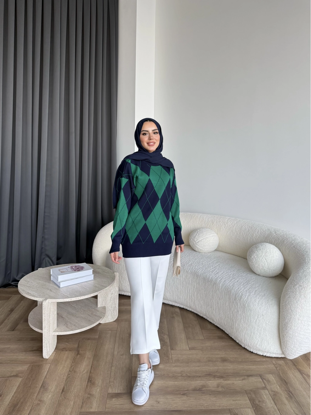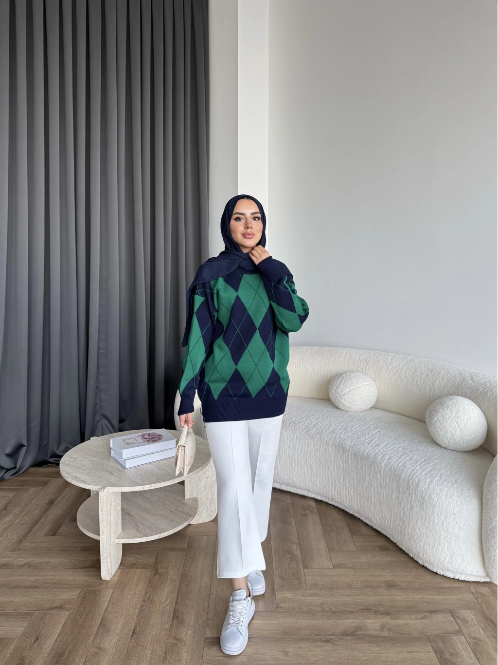 Pls-Baklava Desen Triko Kazak - Yeşil