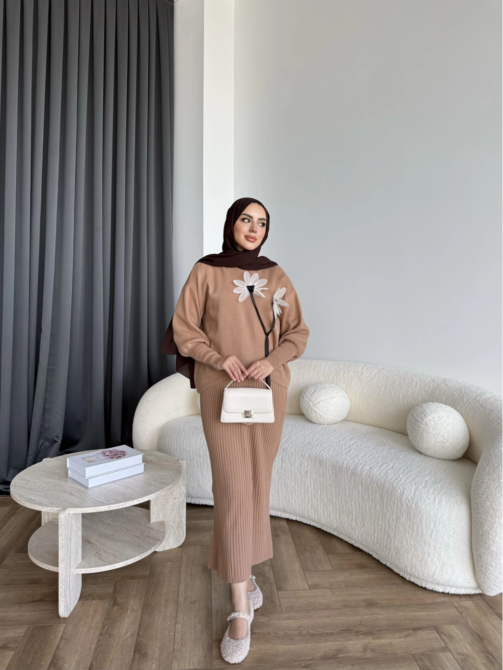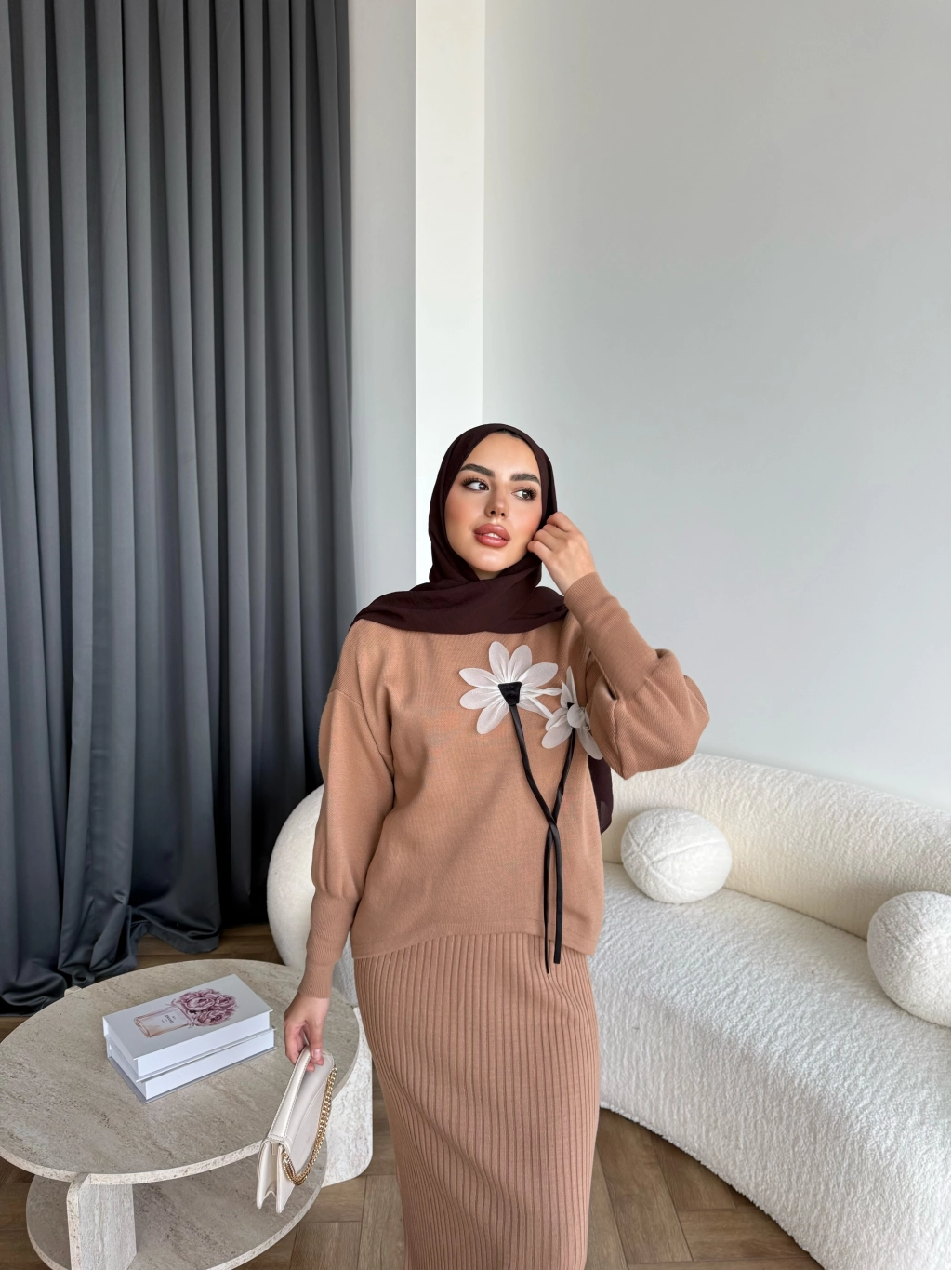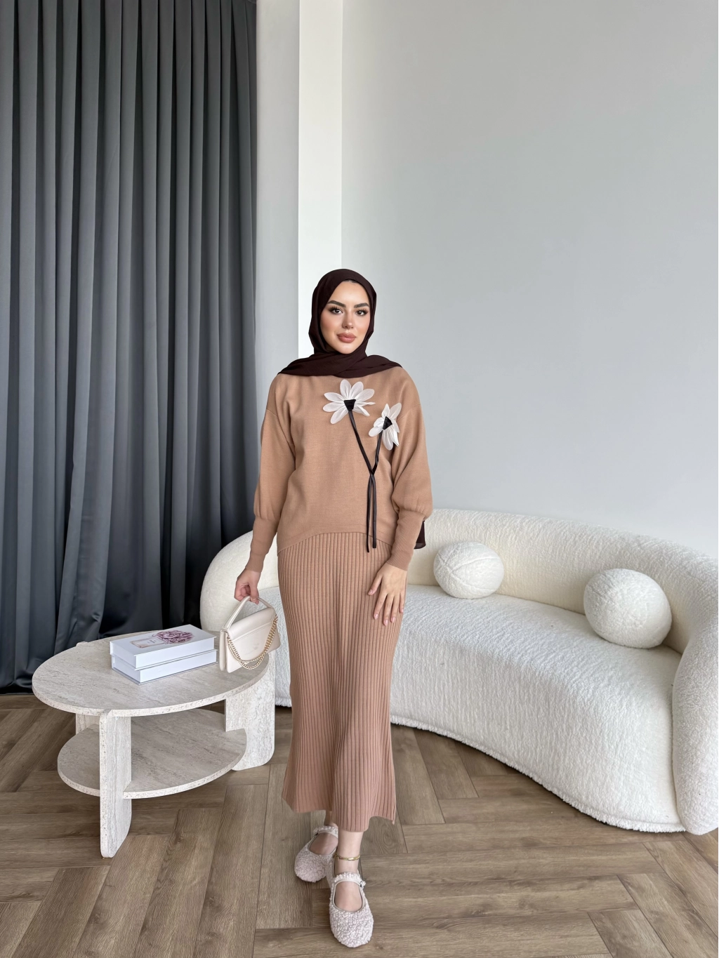 Pls-Çiçek Detay Jile Elbise - Camel