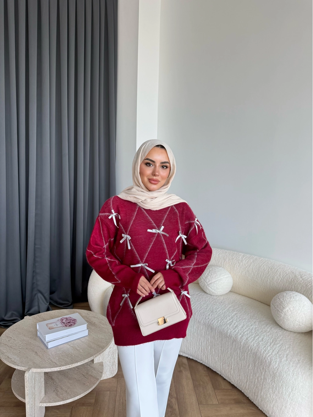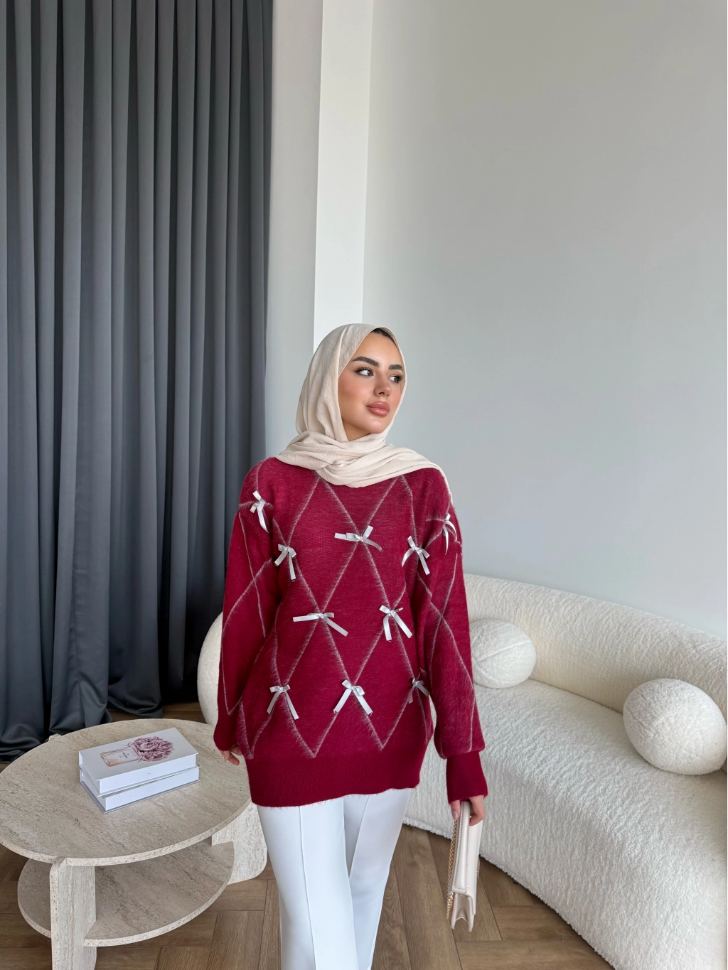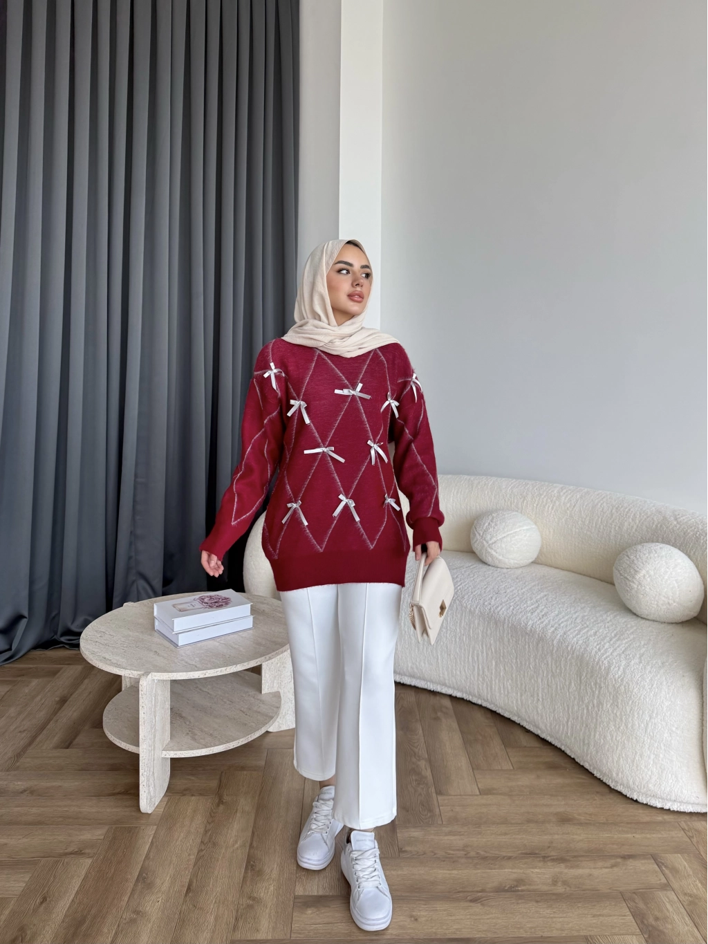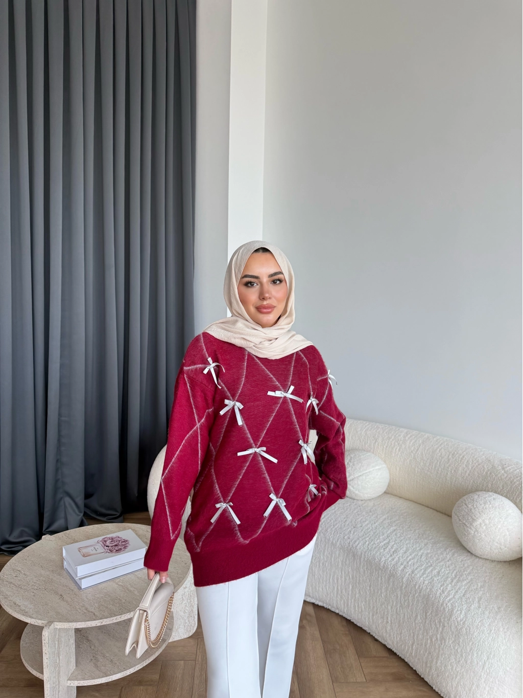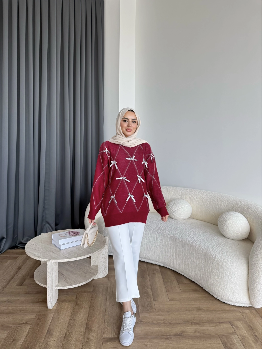 Pls-Kurdele Detay Triko Kazak - Bordo