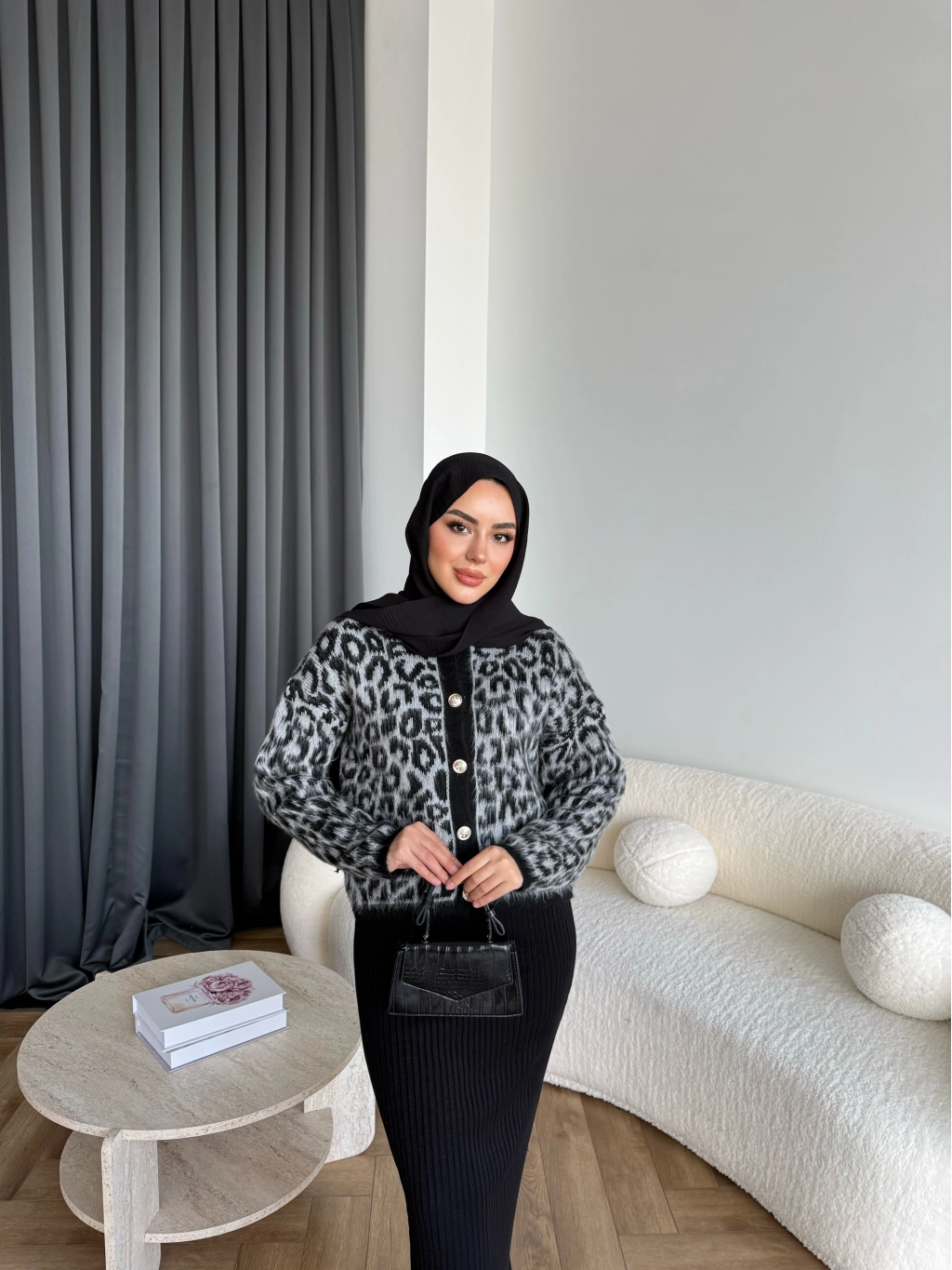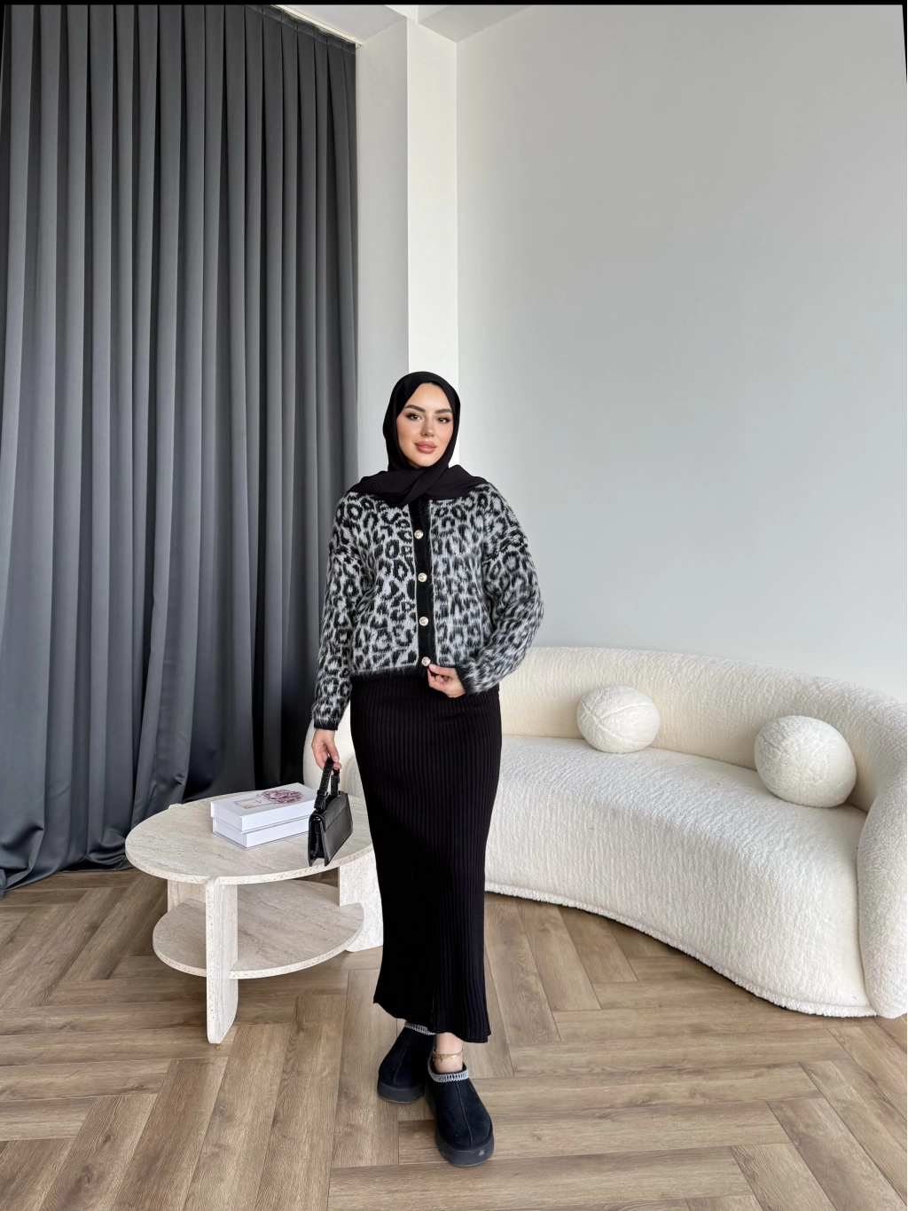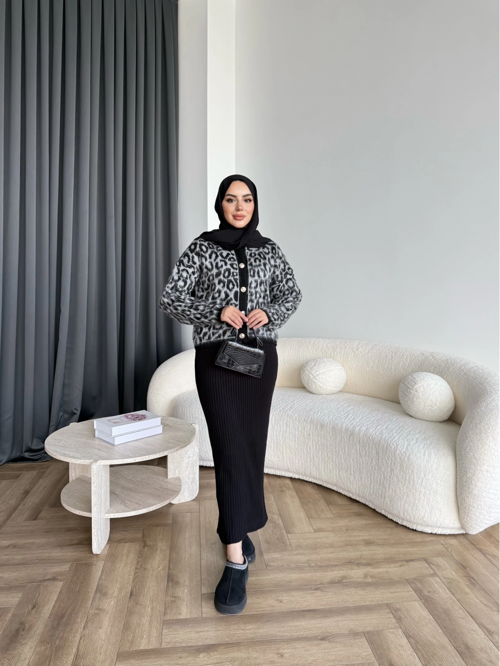 Pls-Leopar Jile Elbise - Gri