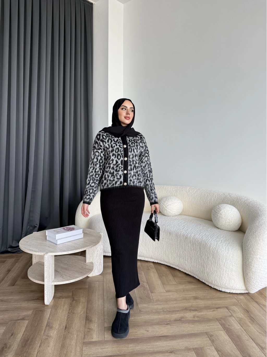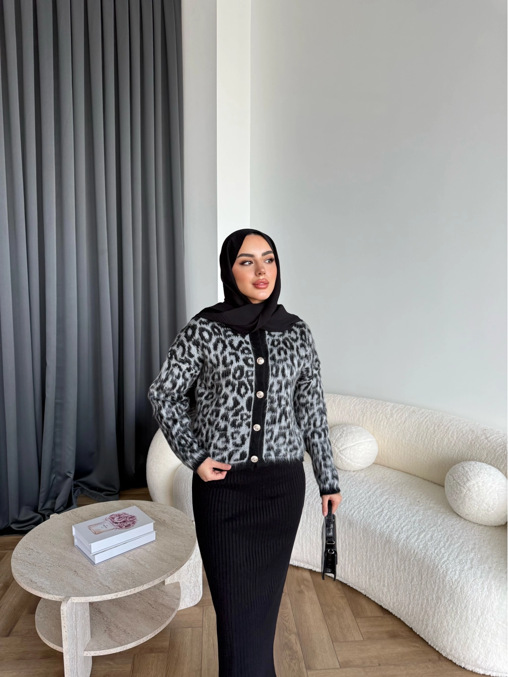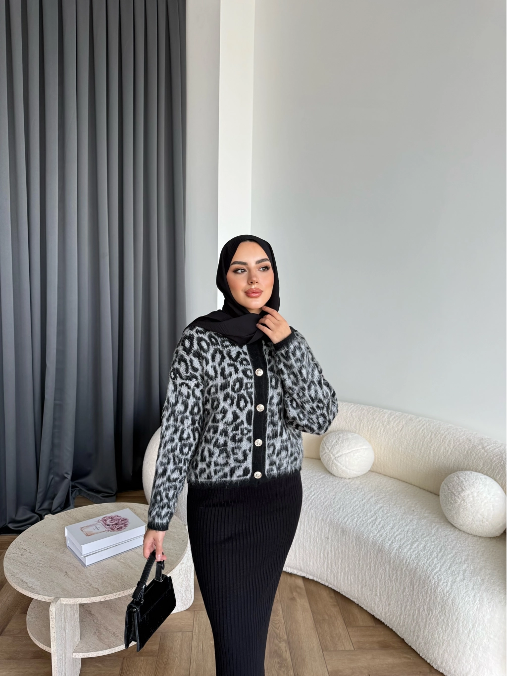 Pls-Leopar Jile Elbise - Gri