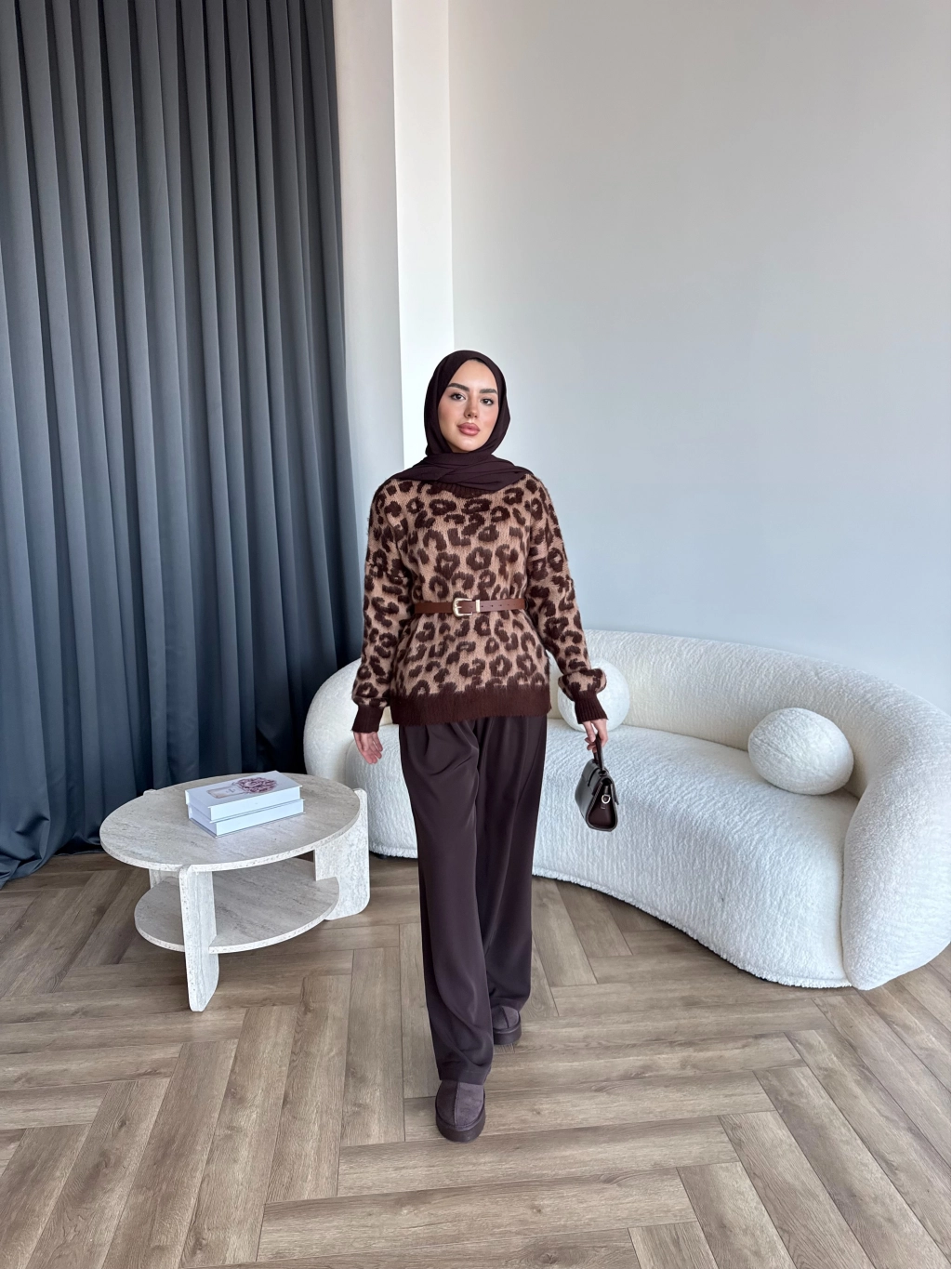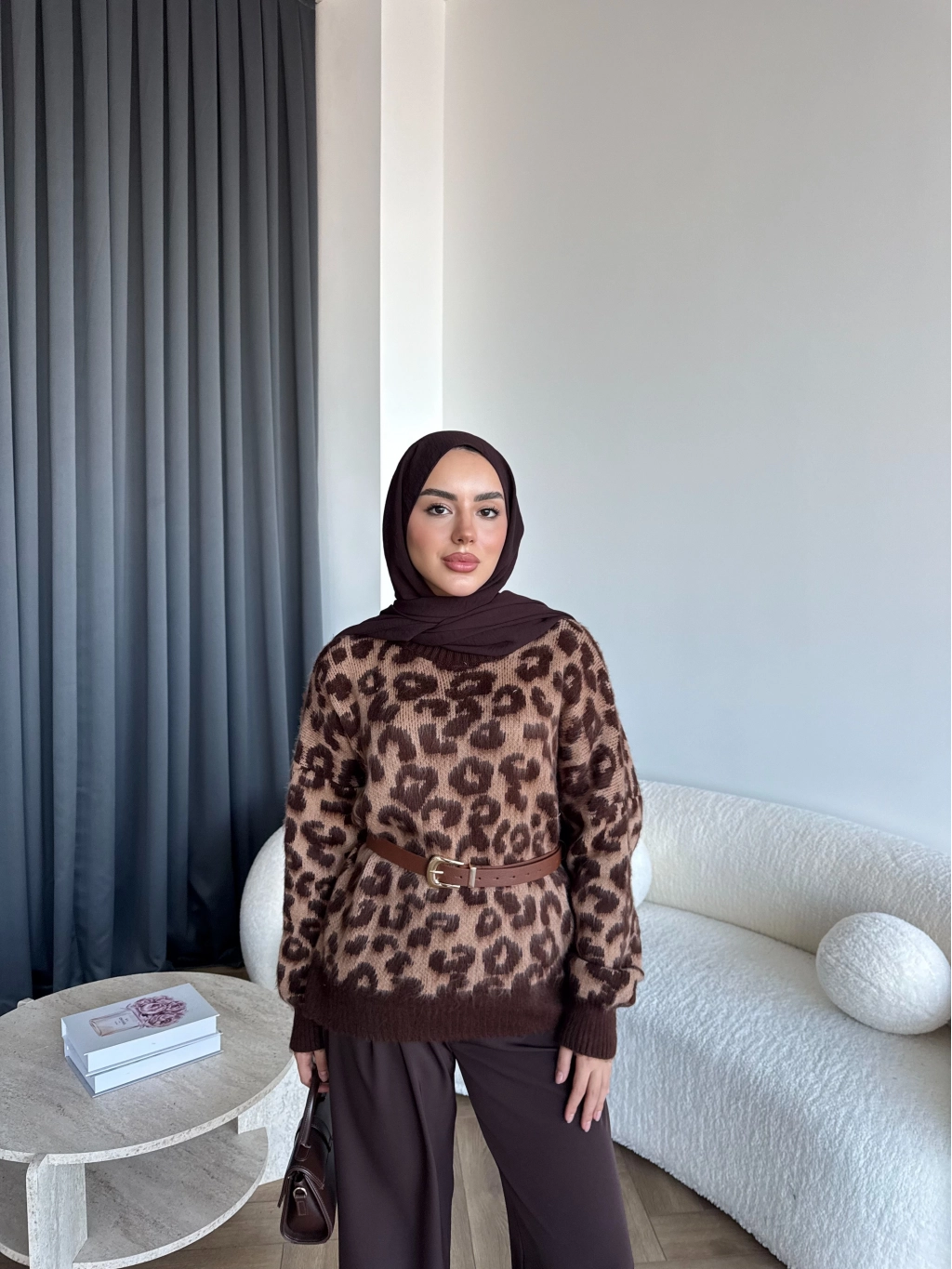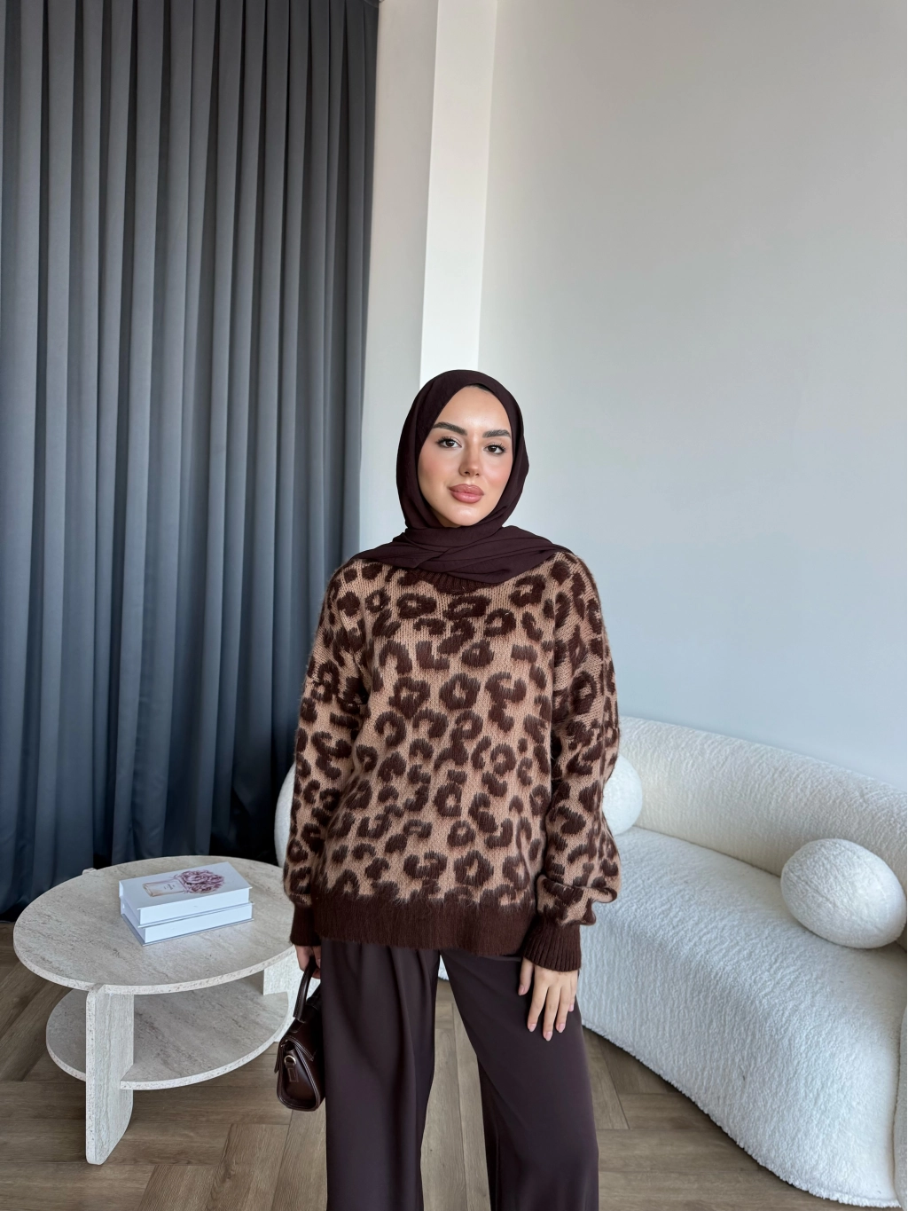 Pls-Leopar Desen Triko Kazak - Açık