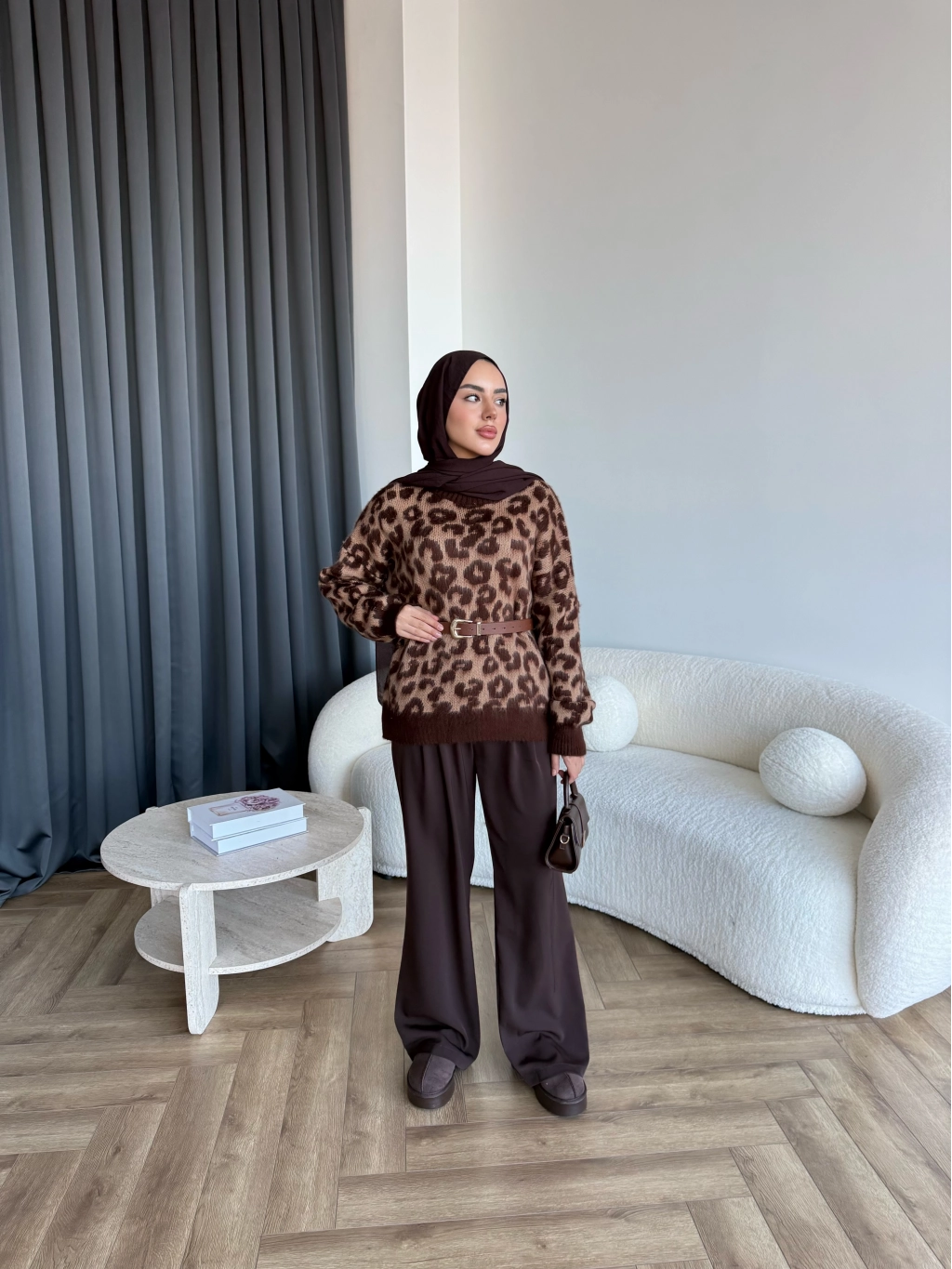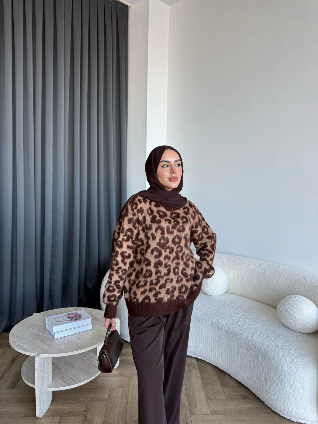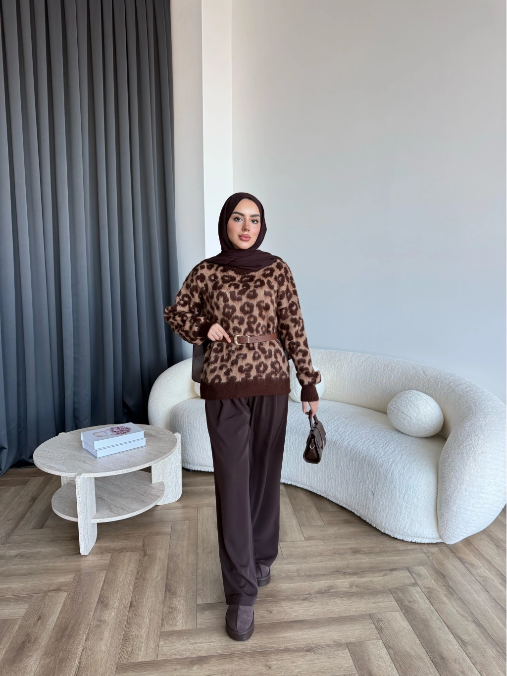 Pls-Leopar Desen Triko Kazak - Açık