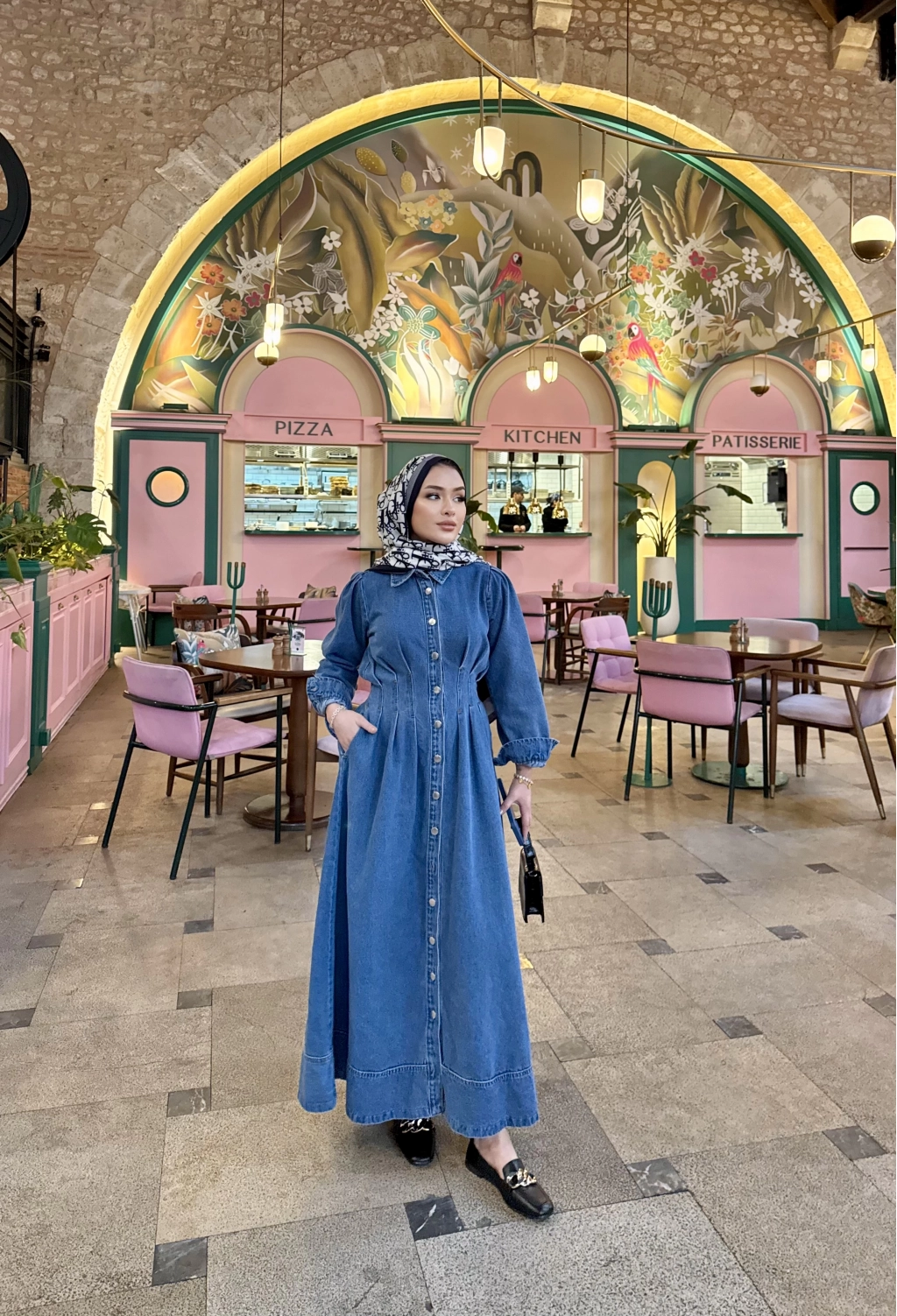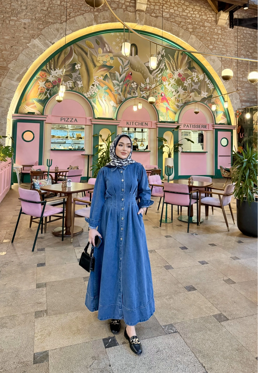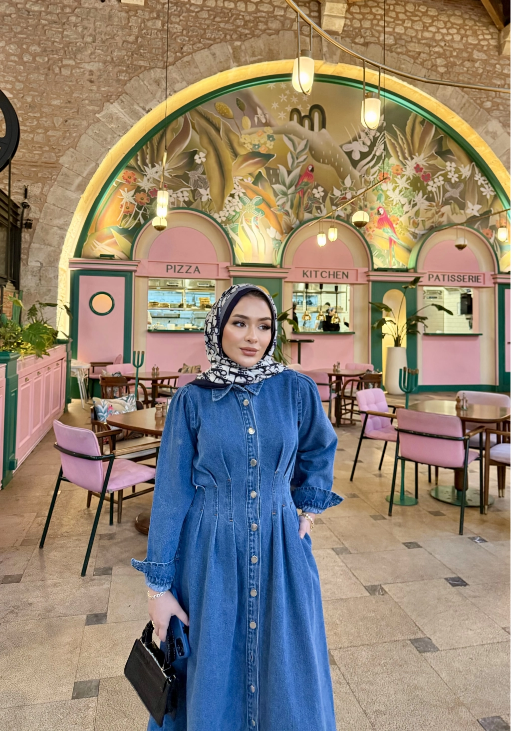 Polins Düğmeli Kot Elbise - Açık Mavi