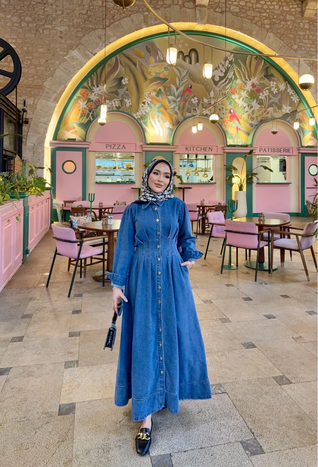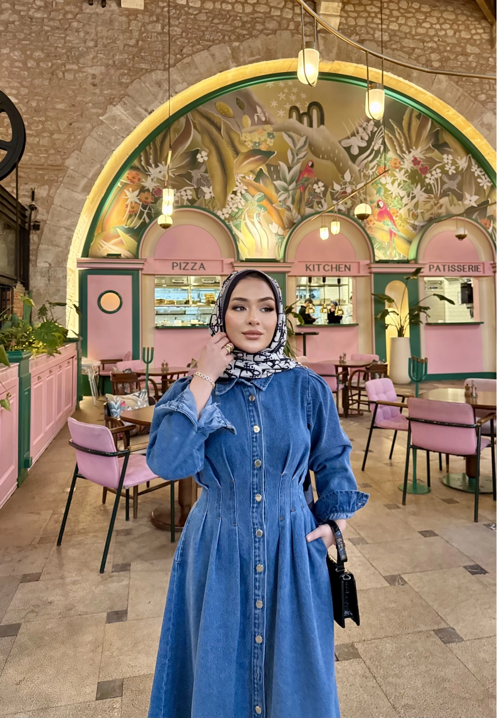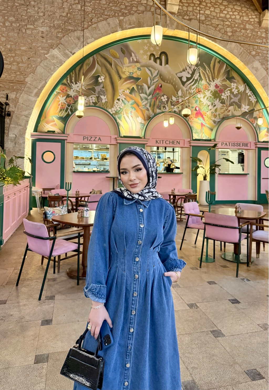 Polins Düğmeli Kot Elbise - Açık Mavi