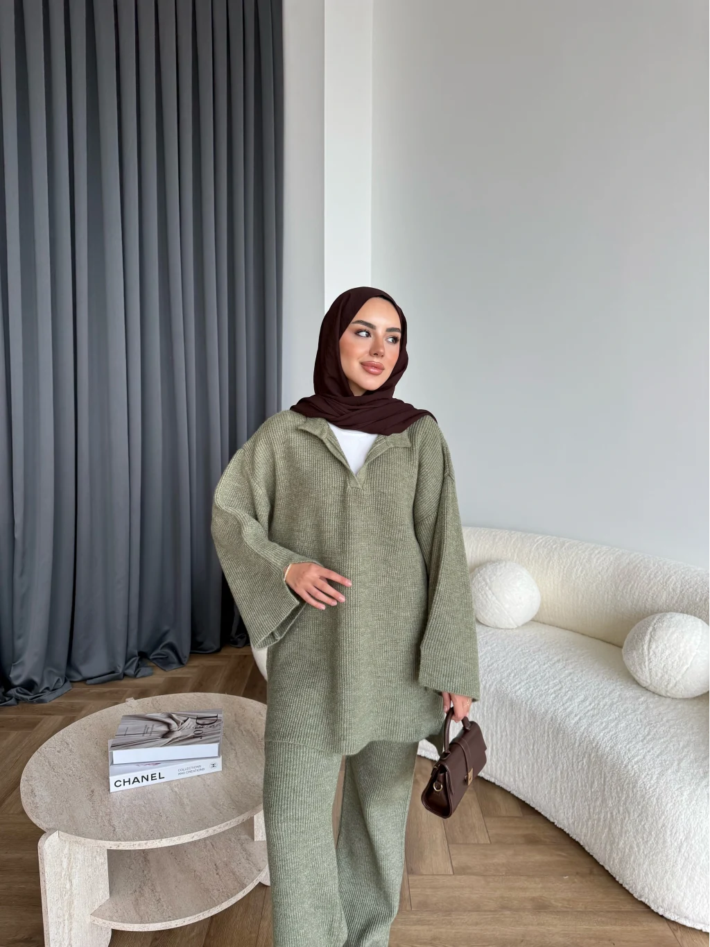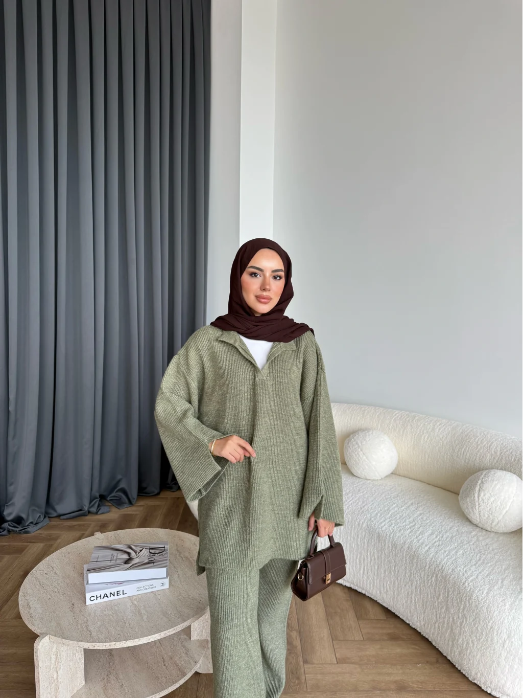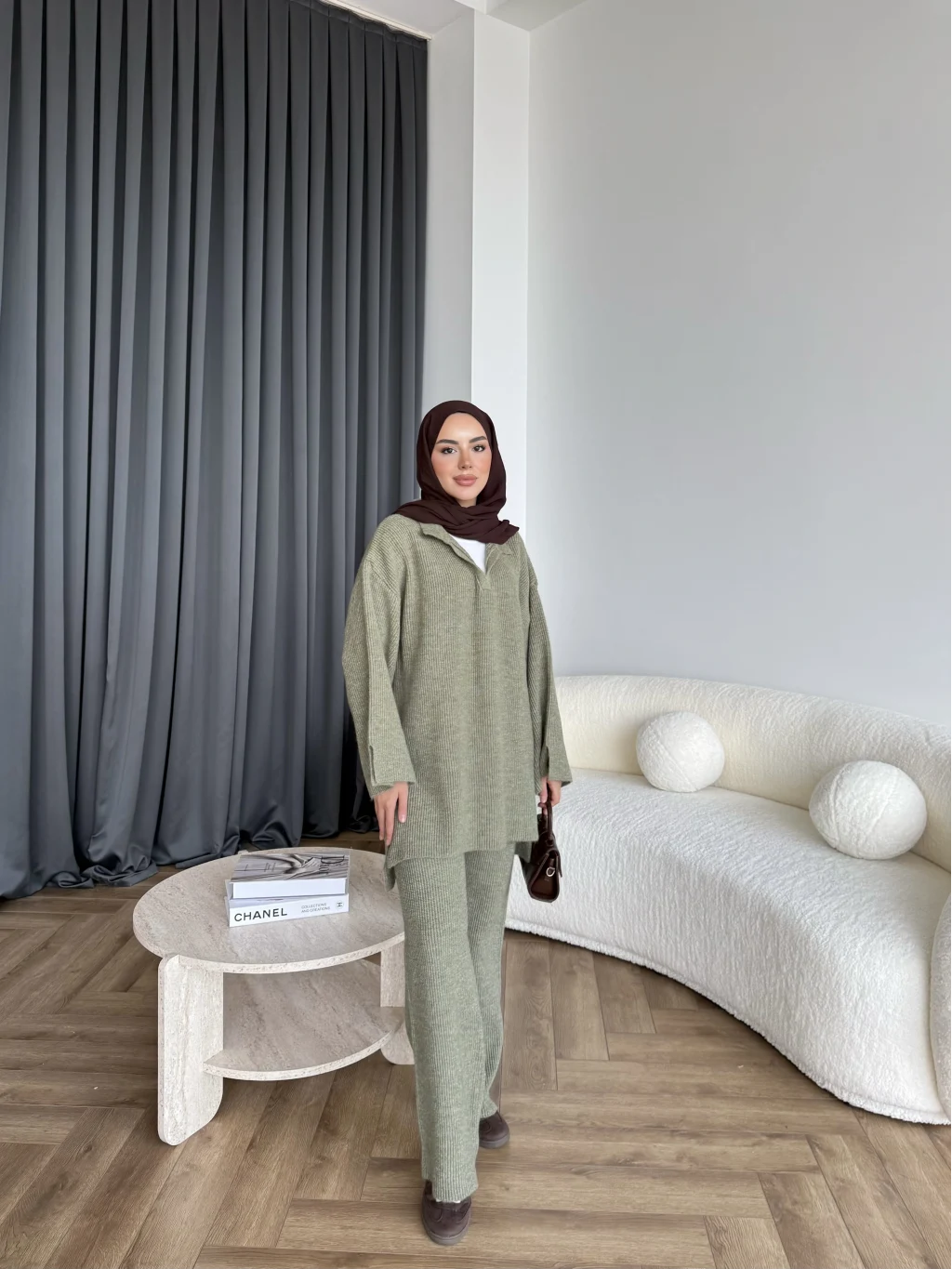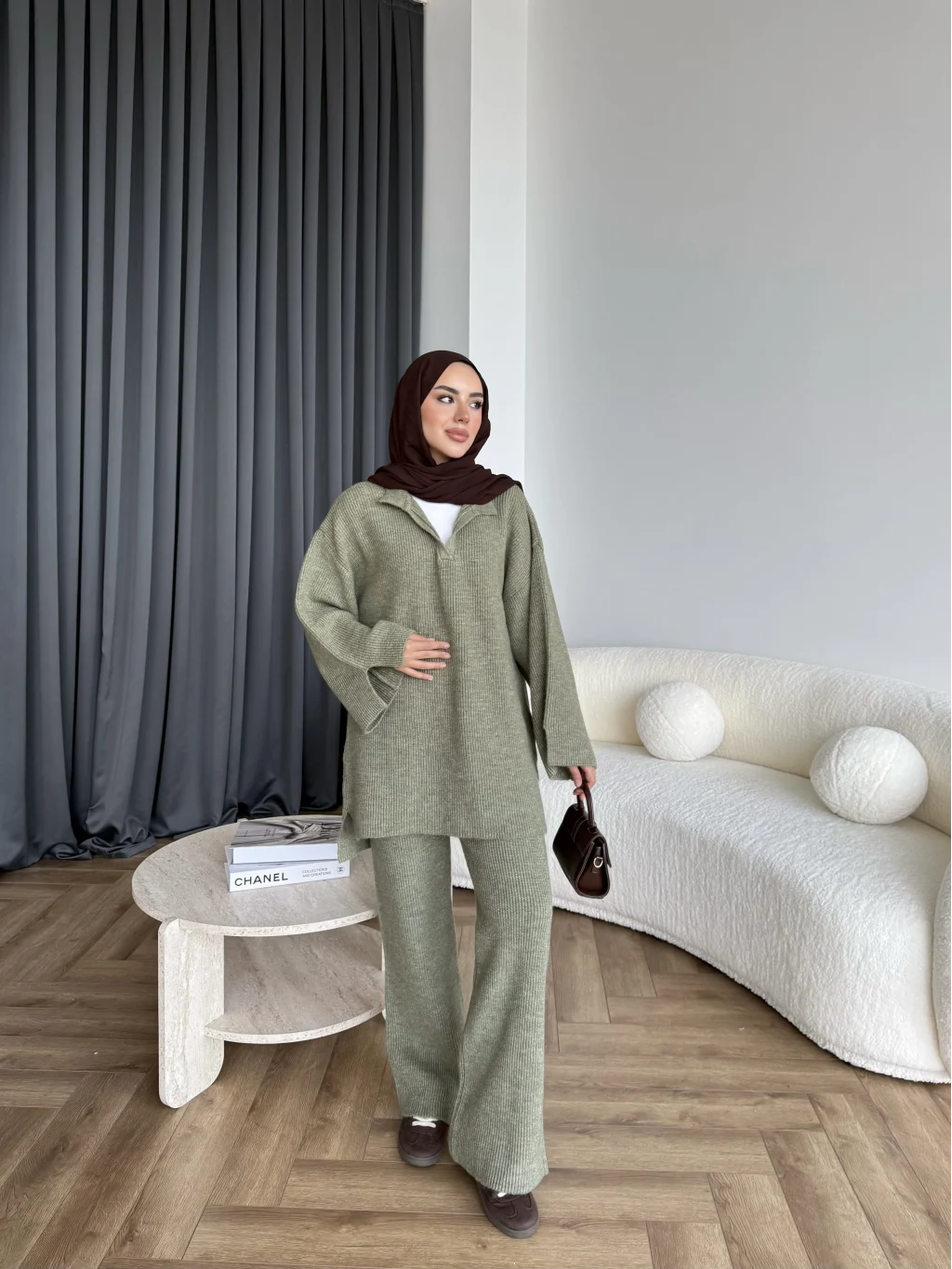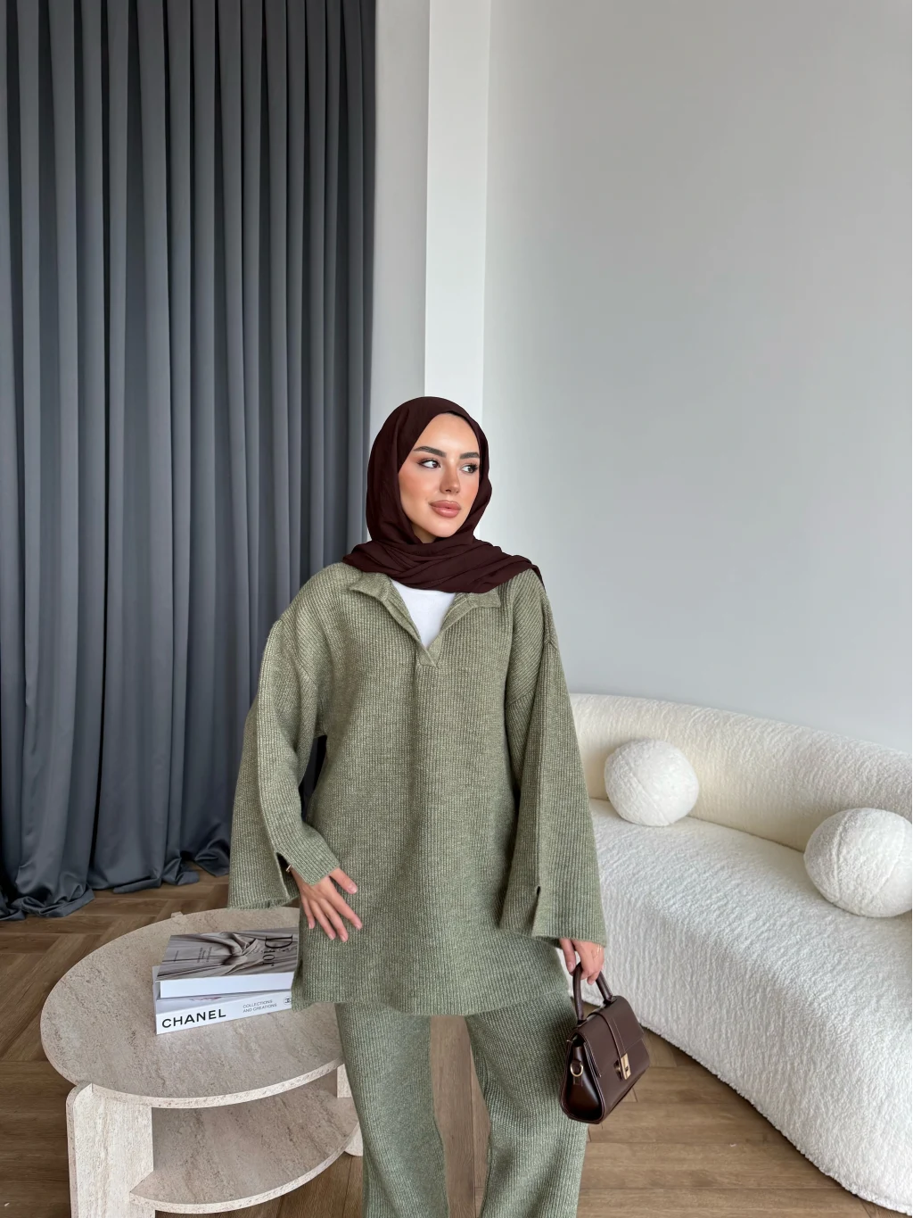 Polo Yaka Örgü Triko Takım - Acı Kahve