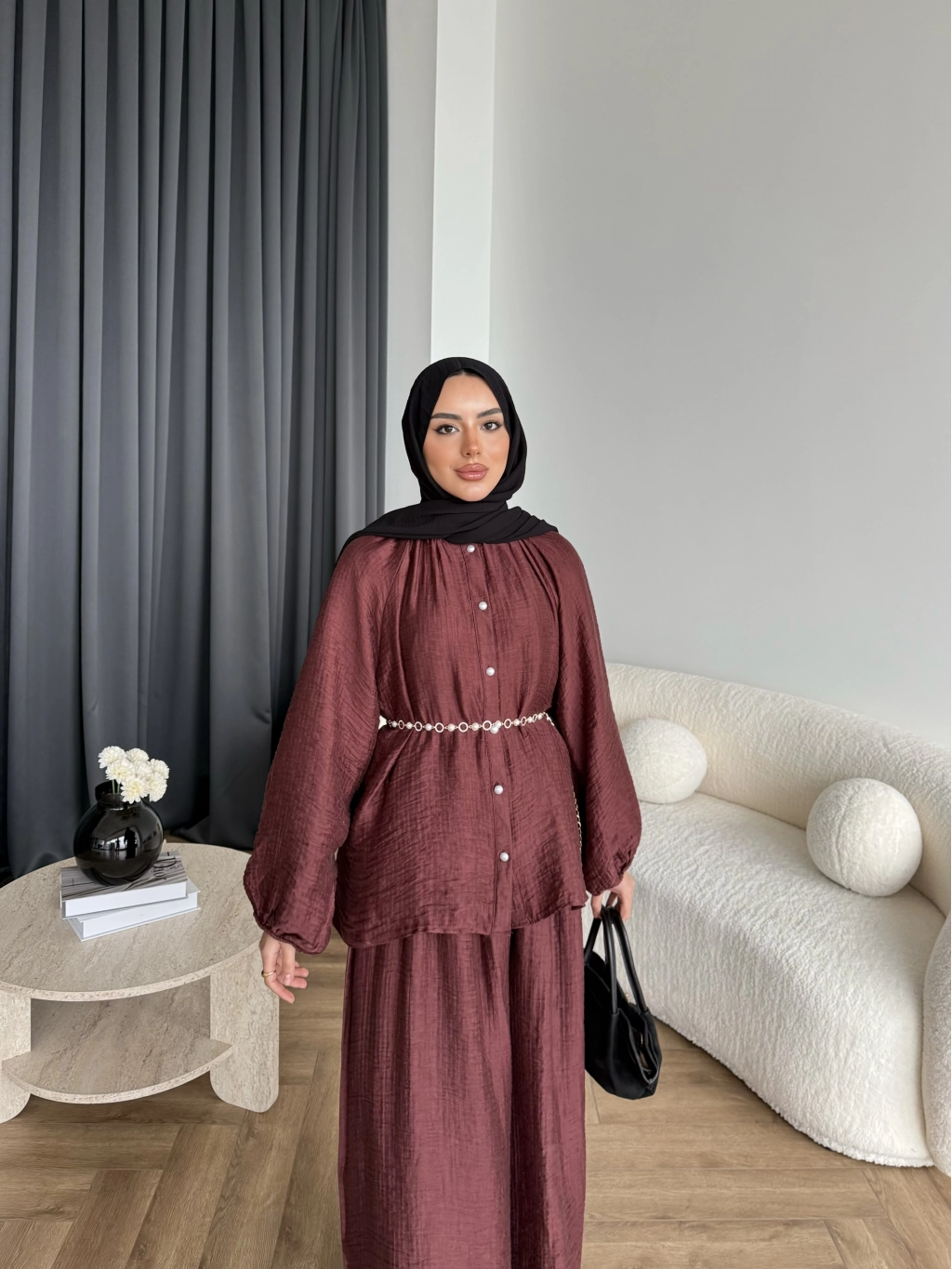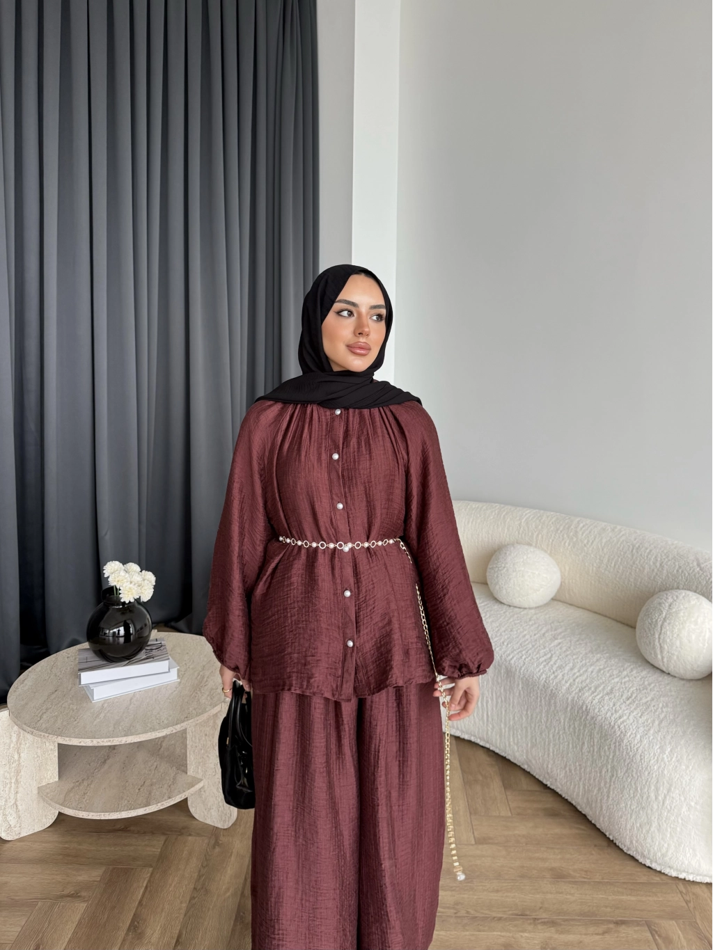 Hen - Sehaa Gül Detay Gömlek - Bordo