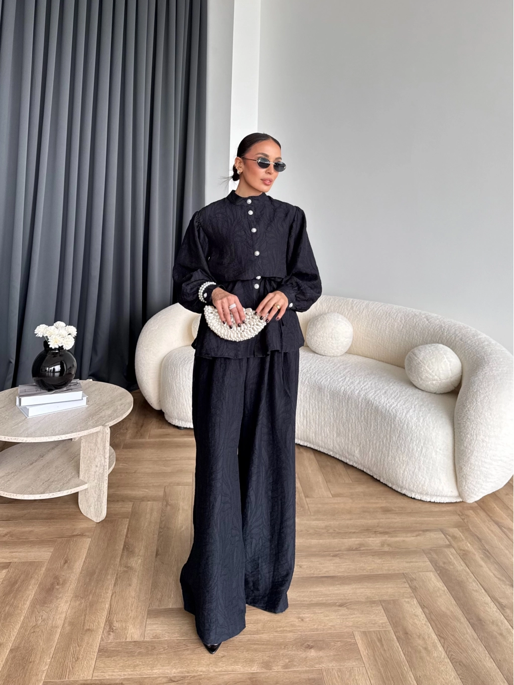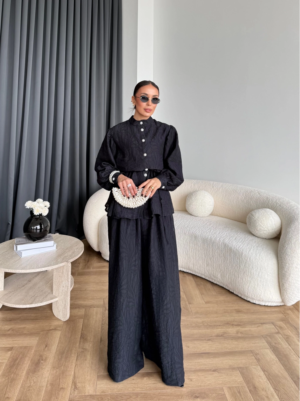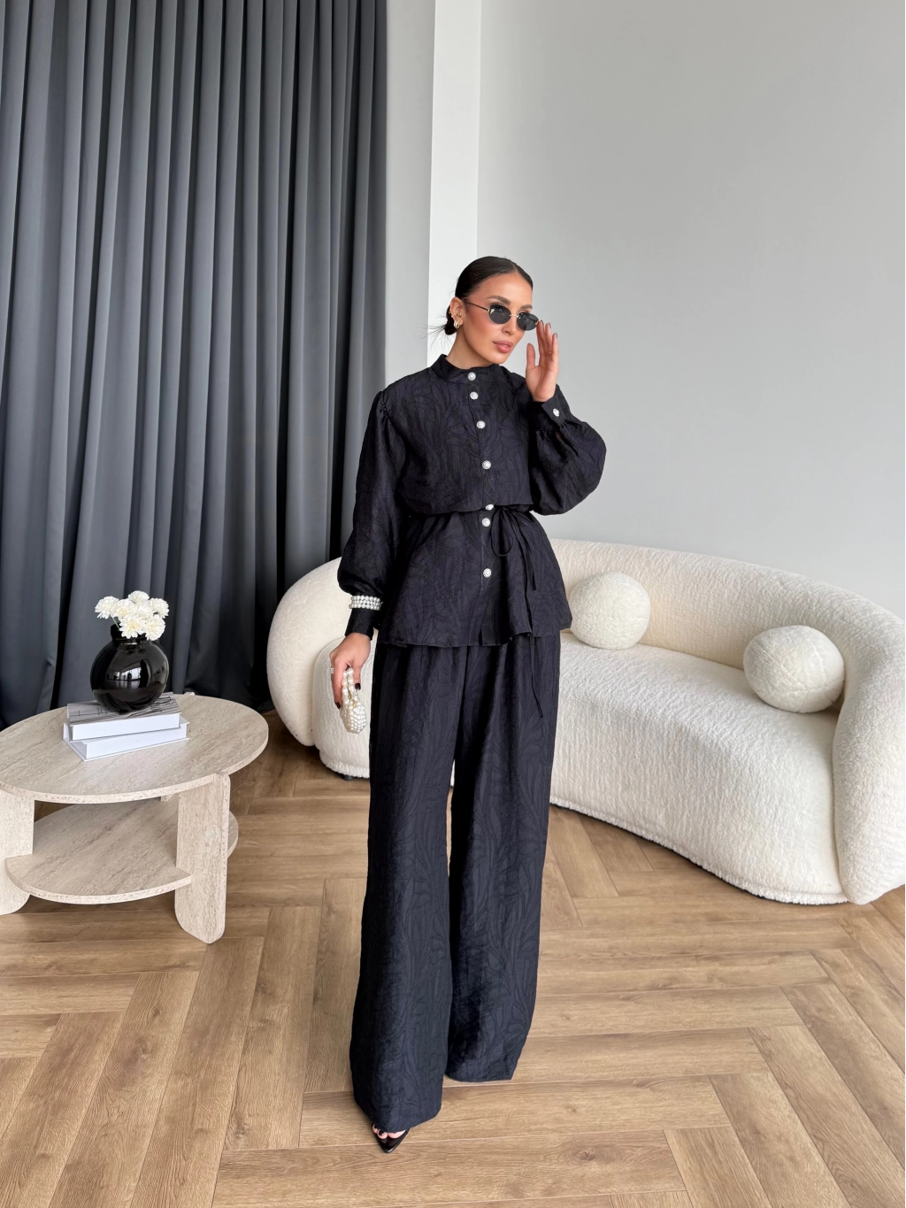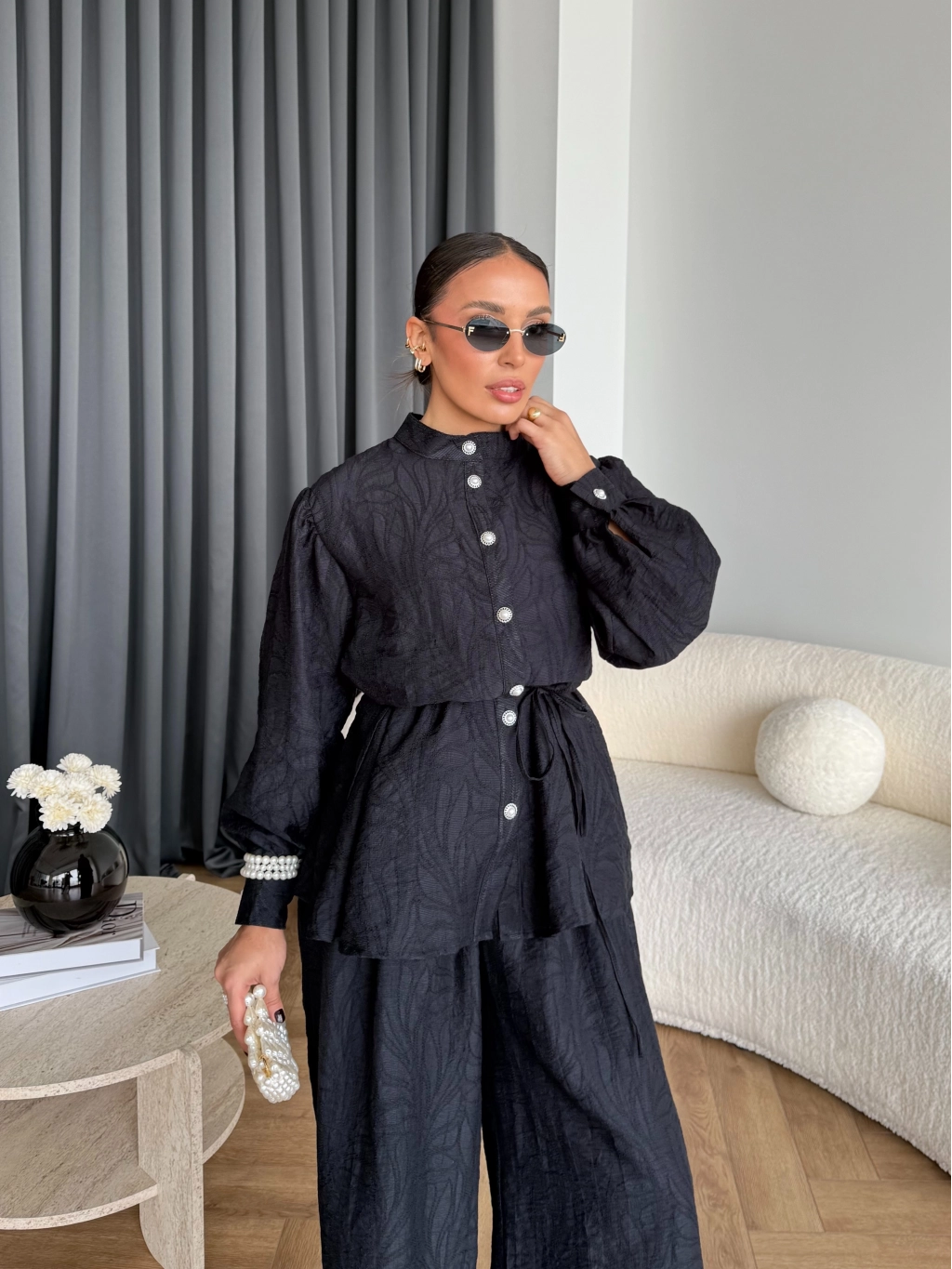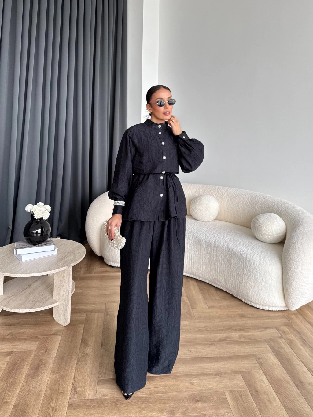 Pwn - Sashe Yaprak Desen Takım - Siyah