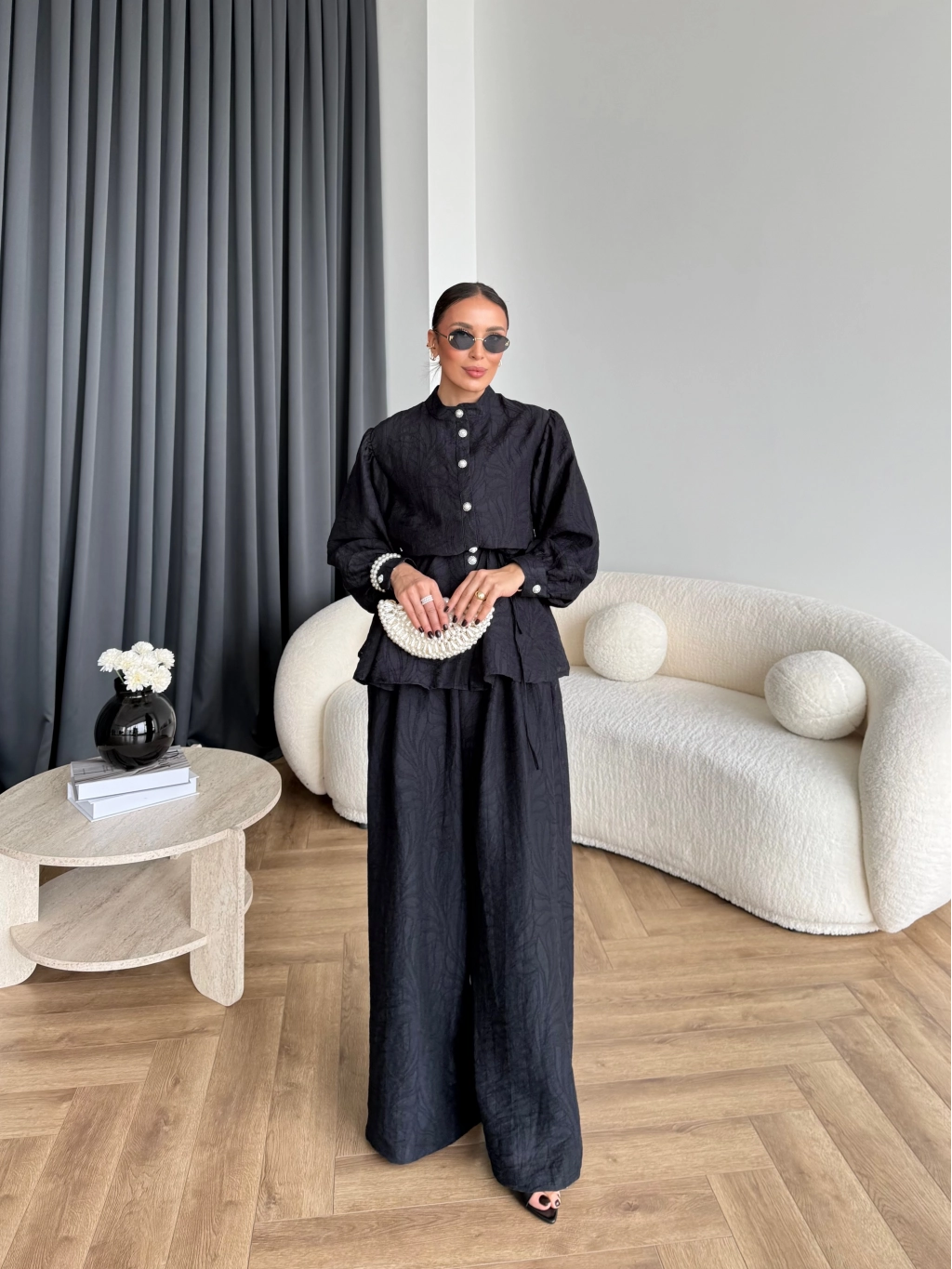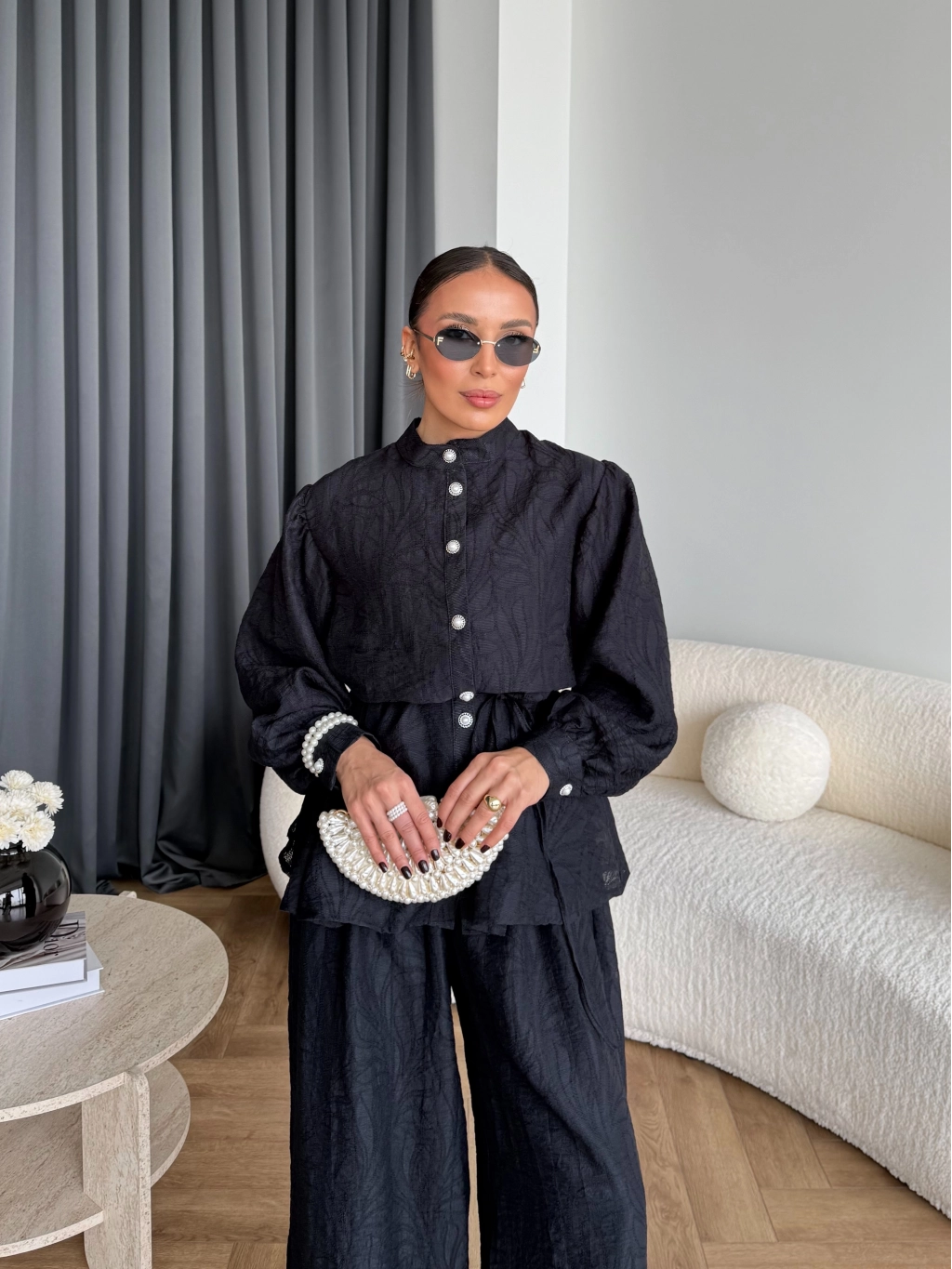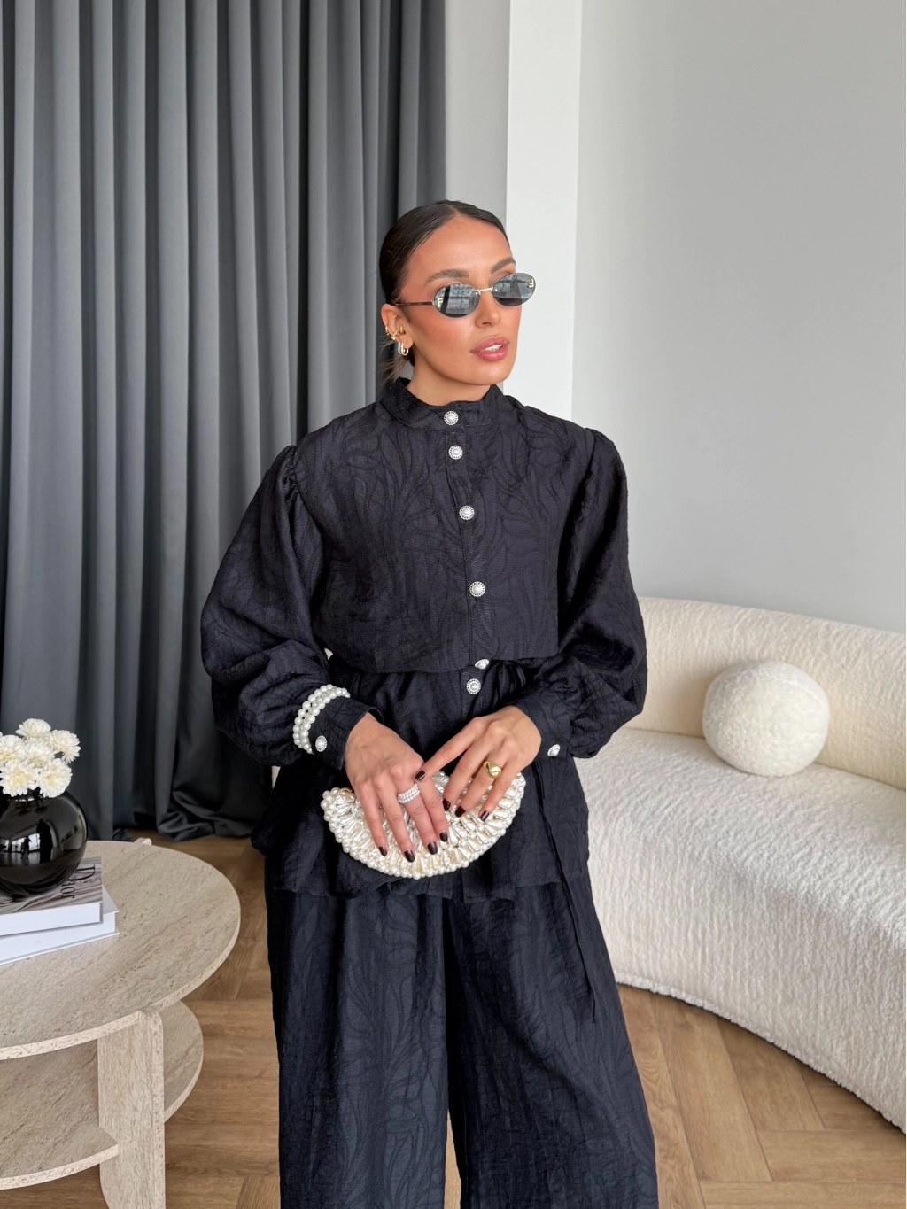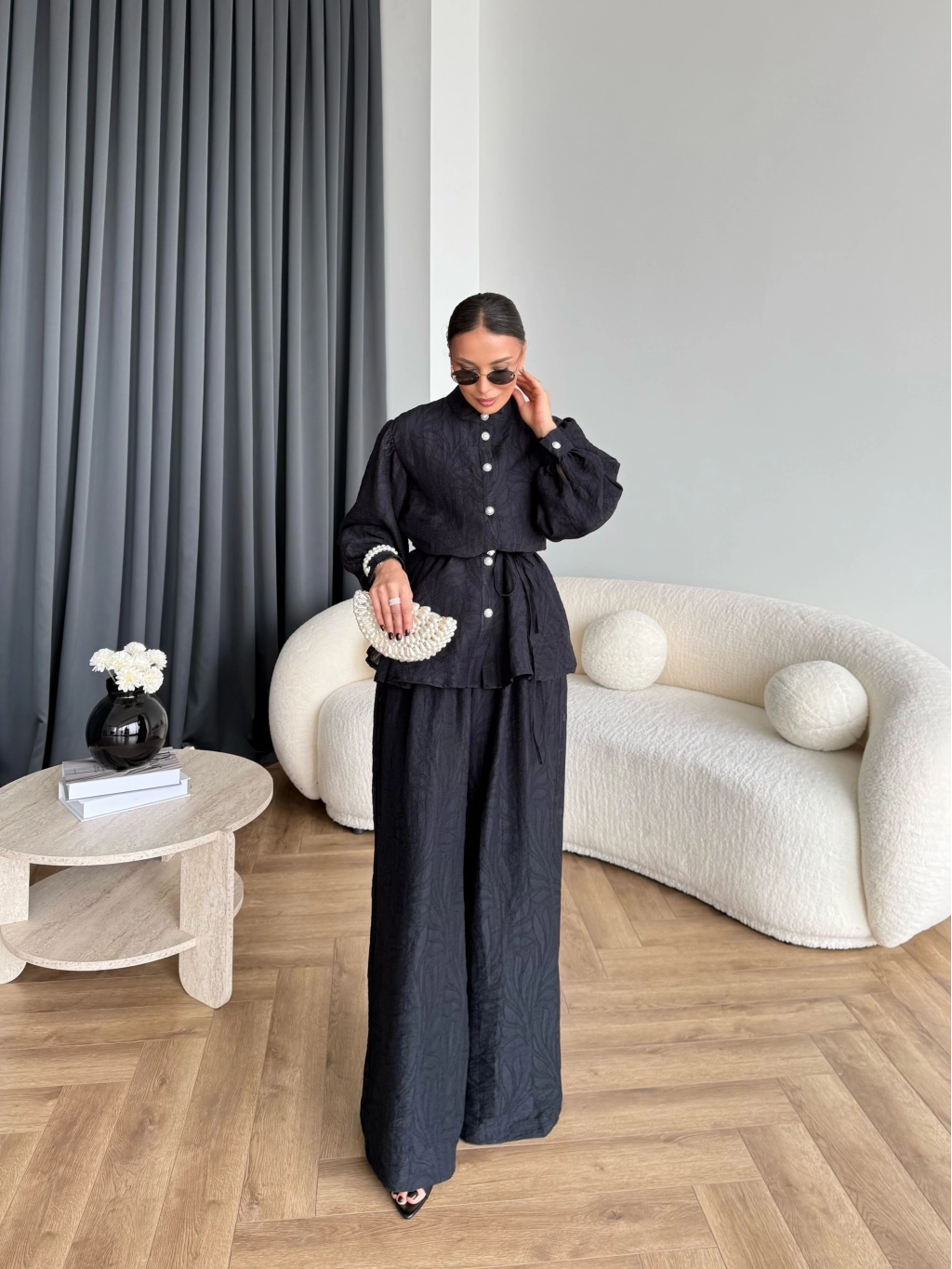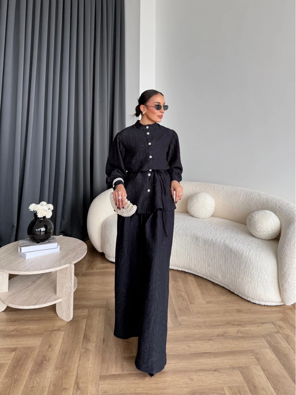 Pwn - Sashe Yaprak Desen Takım - Siyah
